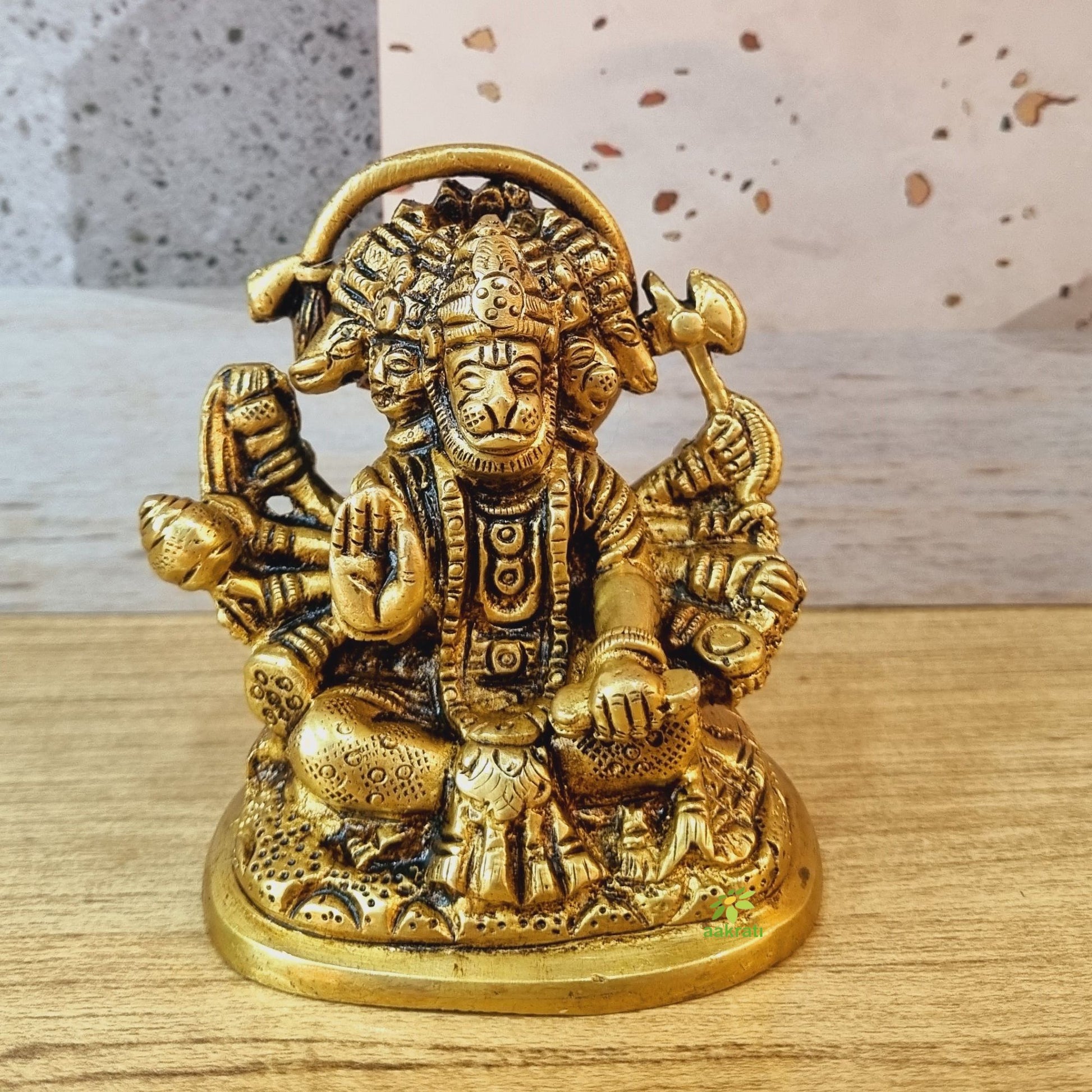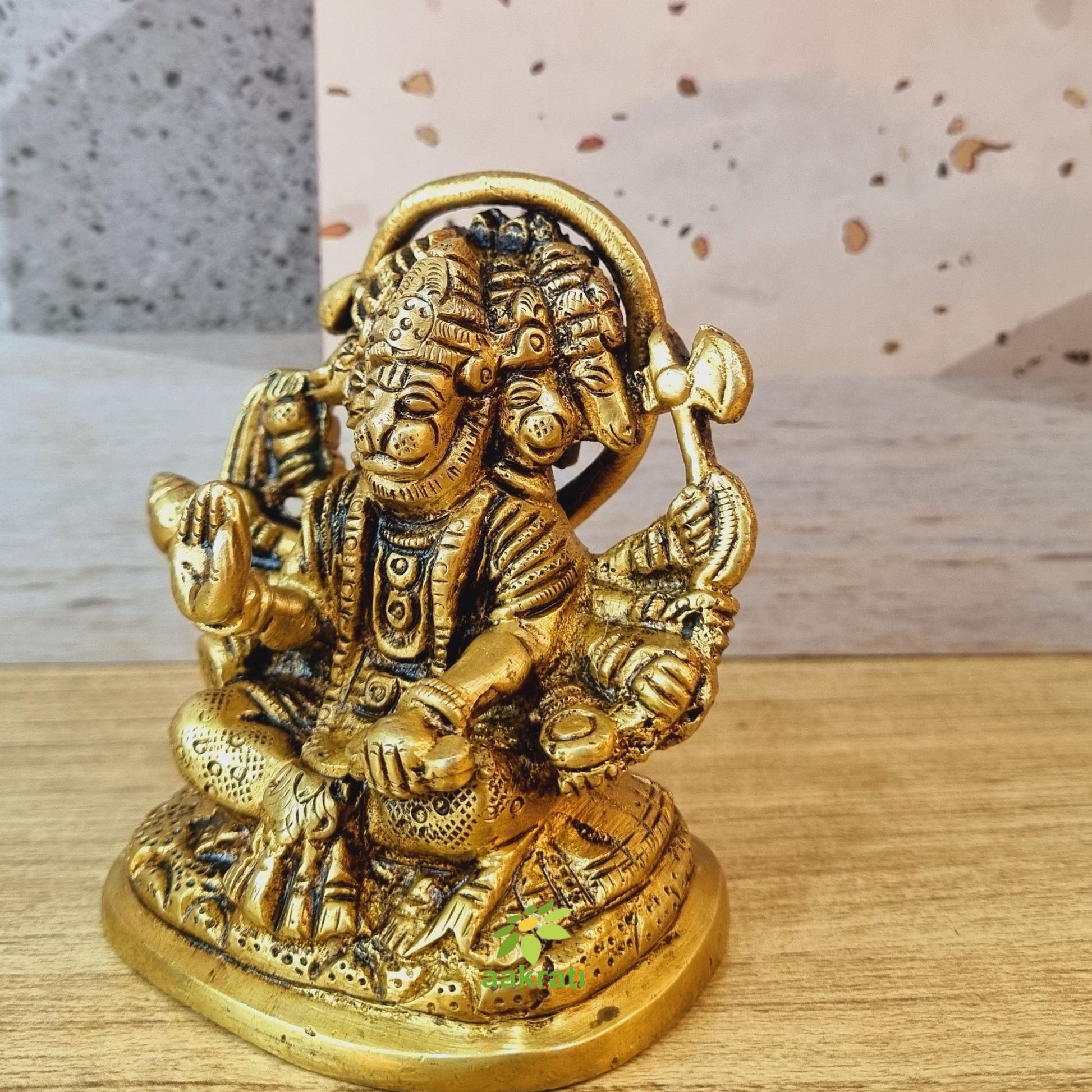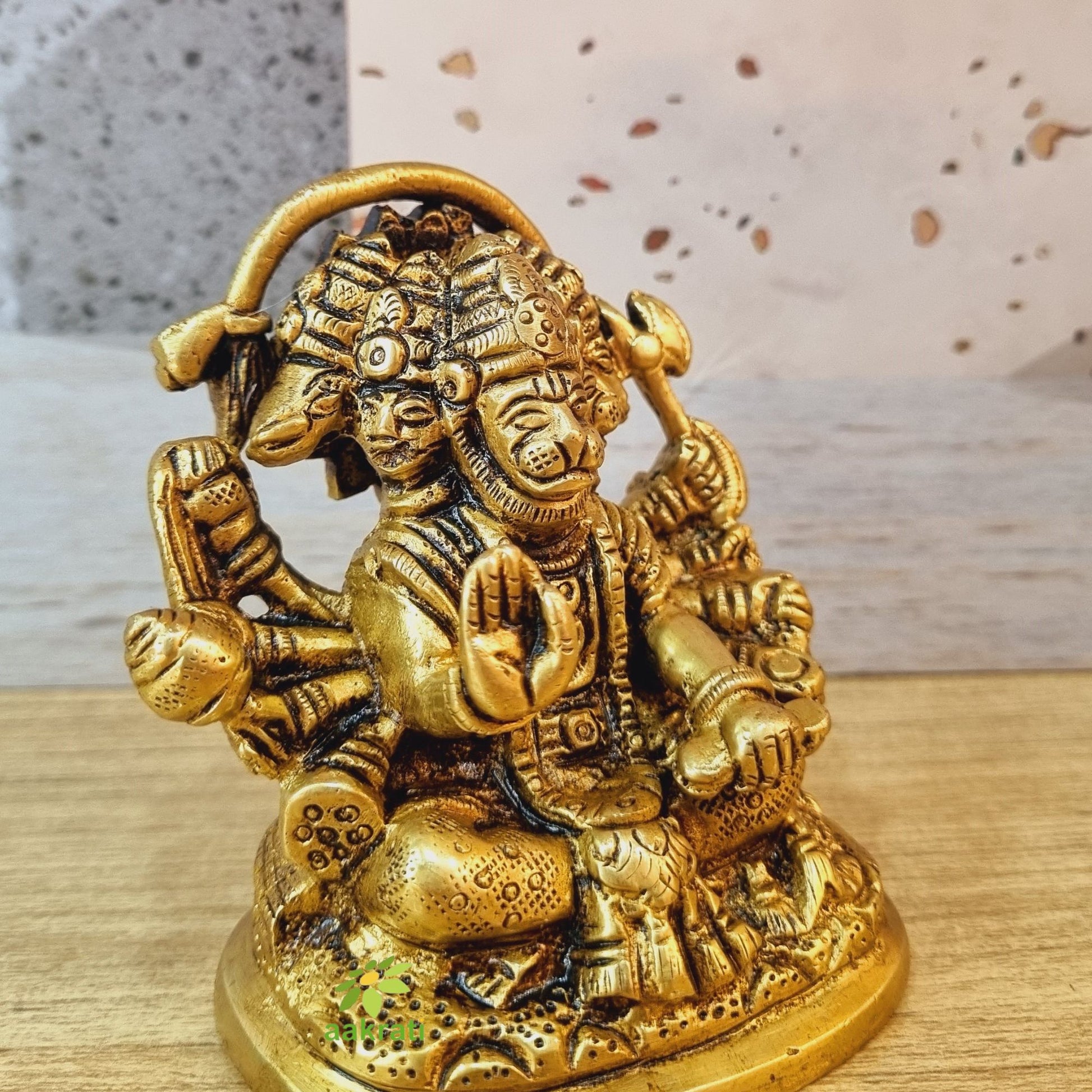 Aakrati Gloss Antqiue Small Sitting five face Hanuman Figurine For Office or Home and worship