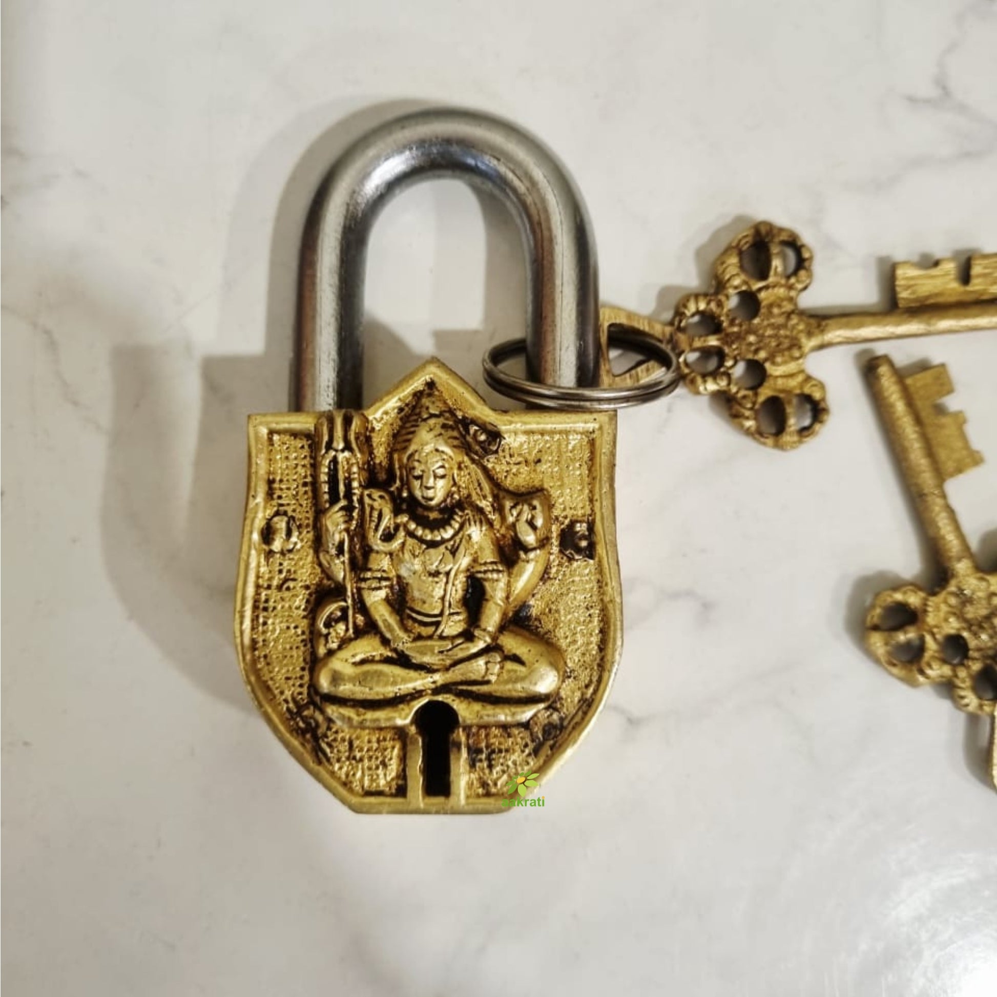 Brass Shiva Engraved Padlock with 2 Keys | Intricately Engraved Lock for Home Décor & Spiritual Gifting | Handcrafted Brass Padlock