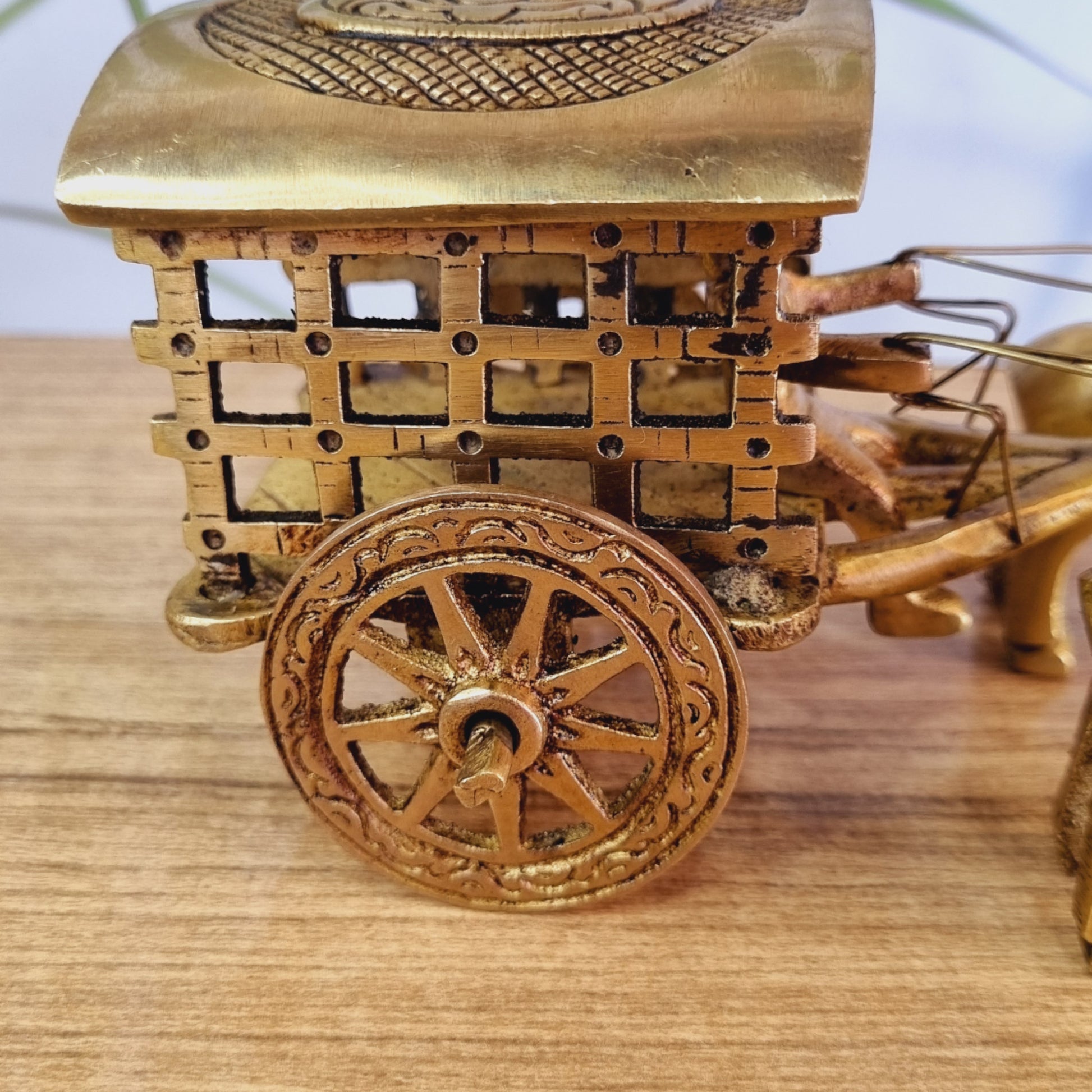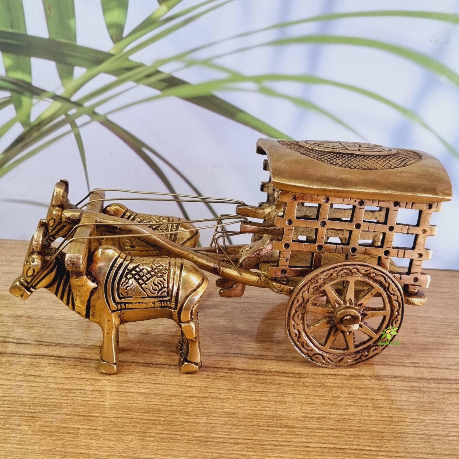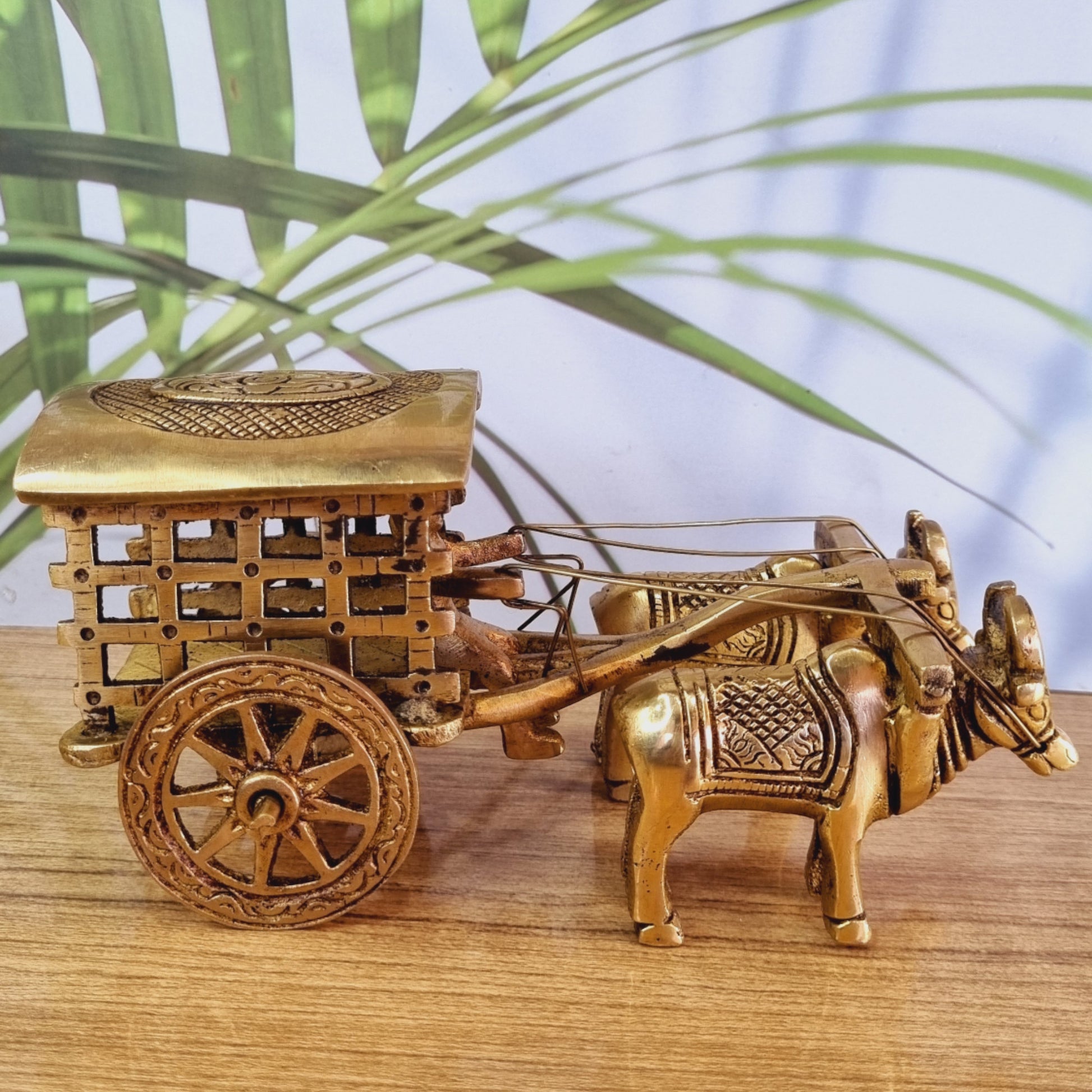 Bullock Cart of Brass - Table decor - Showpiece - Gift - Decorative - Home Decor ( Multicolor, 6.5 inch)