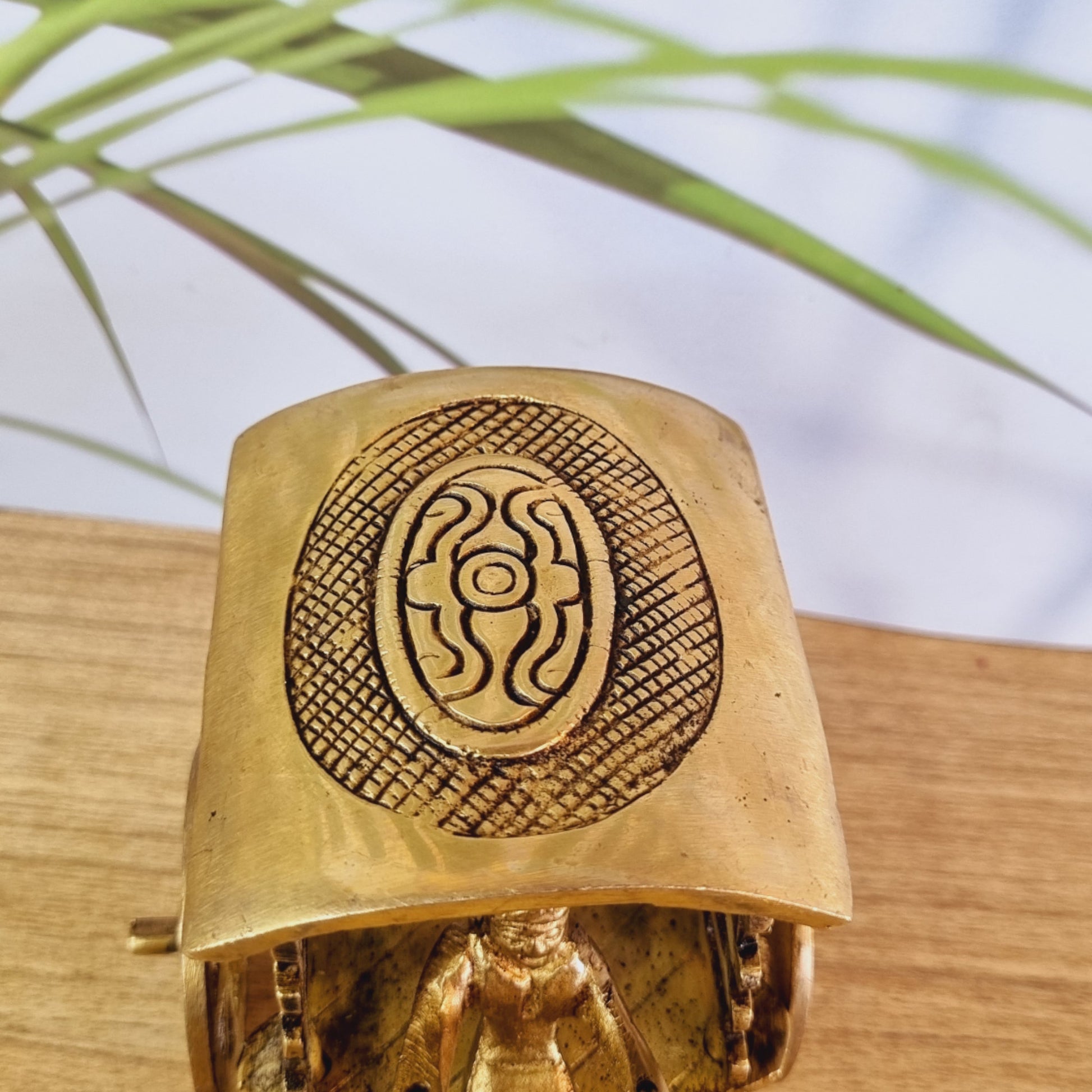 - Highlight the use of high-quality brass that ensures durability and longevity. Emphasize that it doesn't tarnish easily and retains its shine for a long time, making it suitable for religious rituals and decorations.