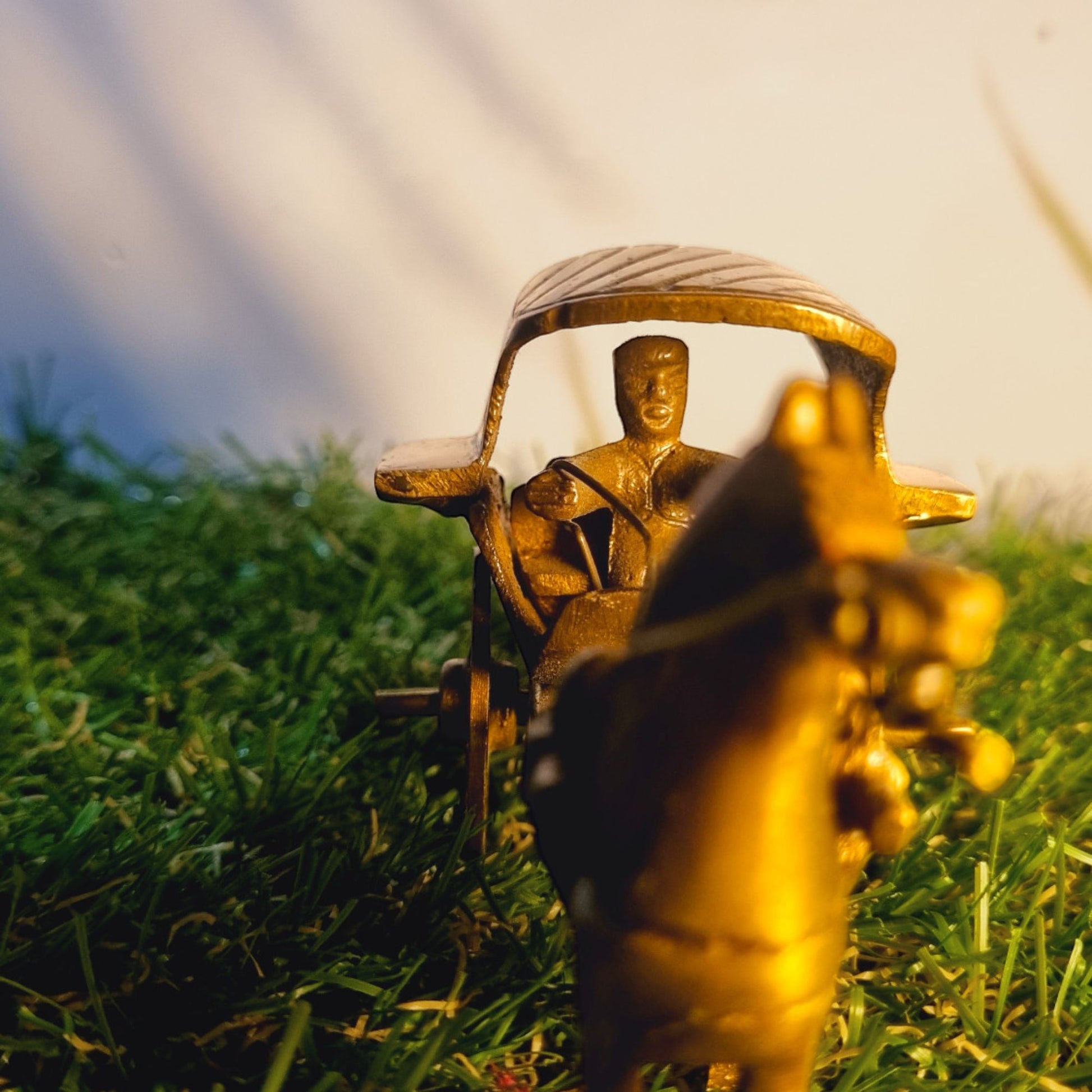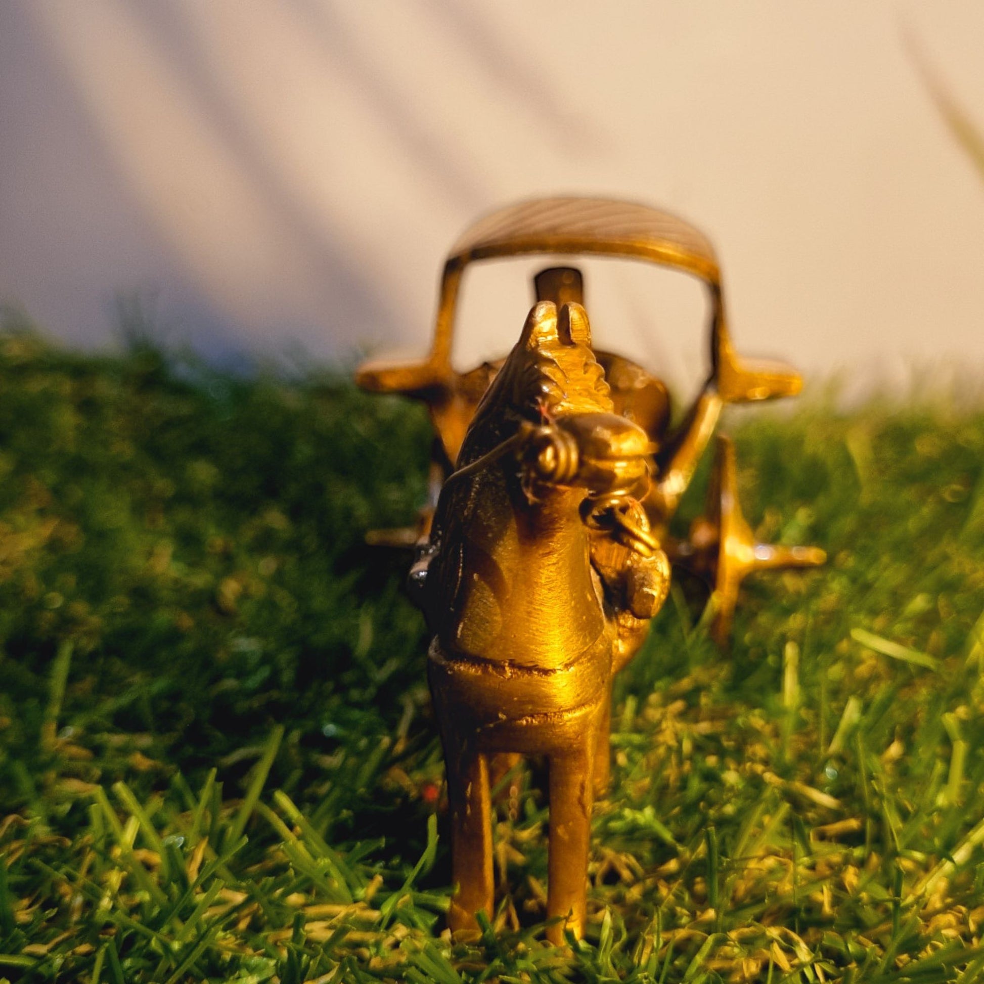 Handcrafted Brass Horse Cart Sculpture | Elegant Showpiece for Home Decoration | ( Brown, 3.5 inch)