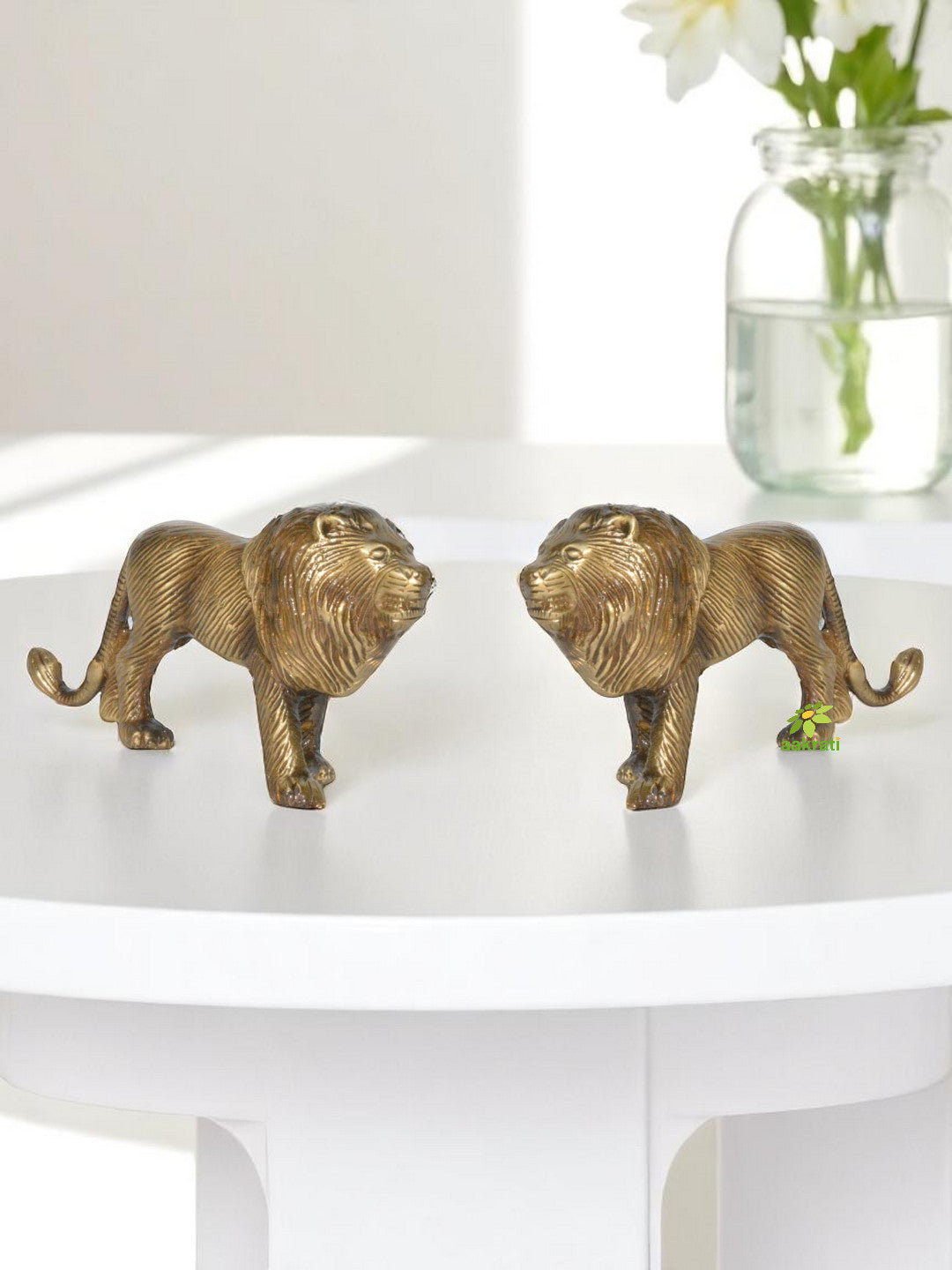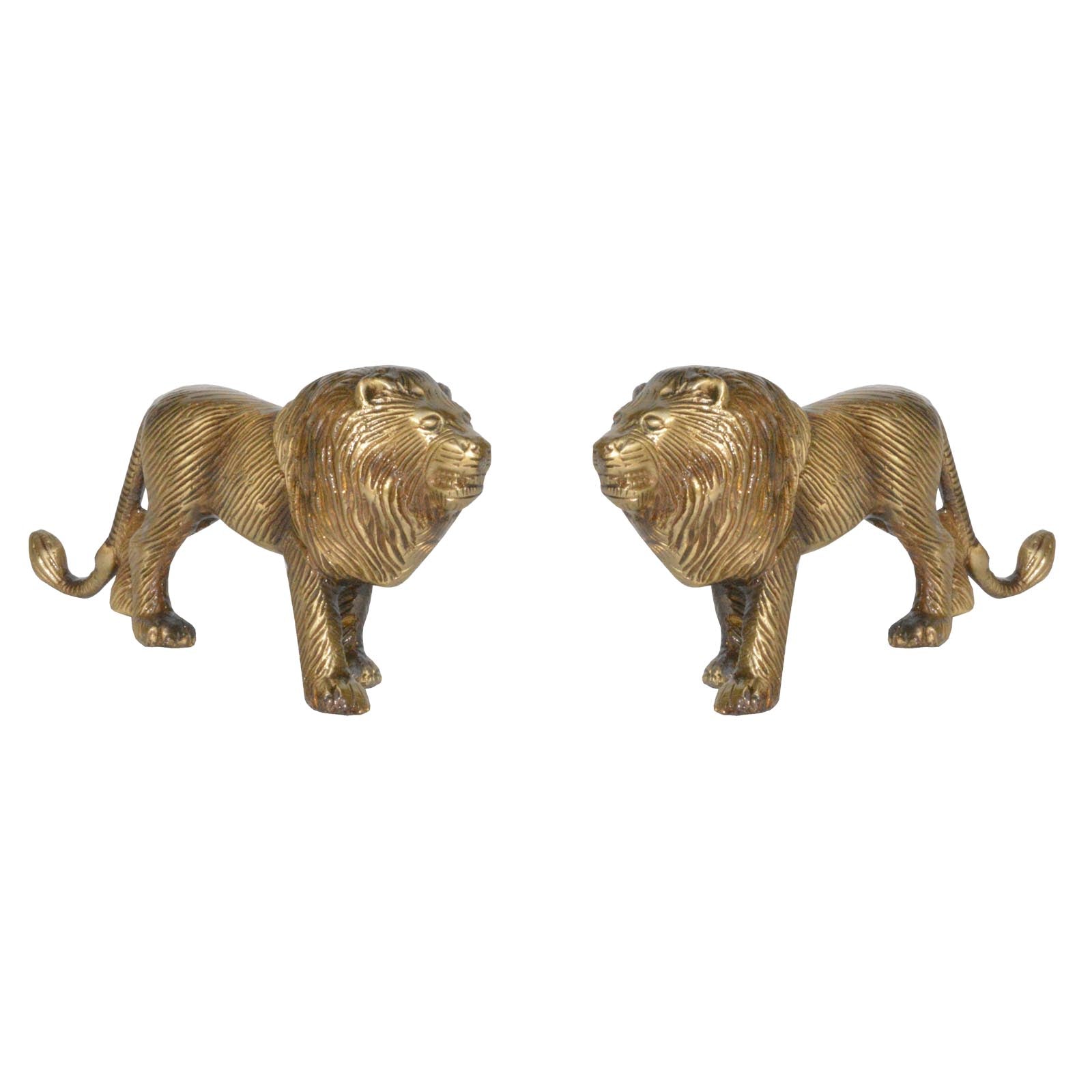 Pair of Animal Statue of Brass of Deorative Lion Metal Figurine for Table Decor / Home Decor / Office Decor Showpiece with Antique Finish. Ulitmate gift for all