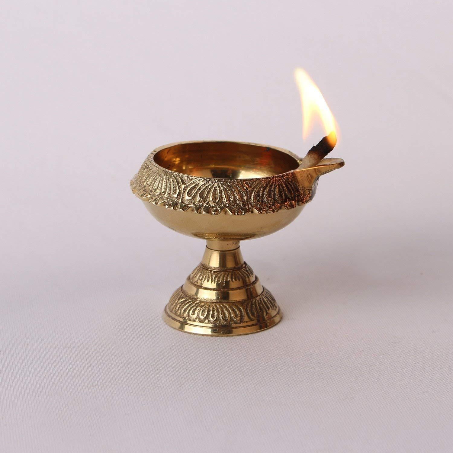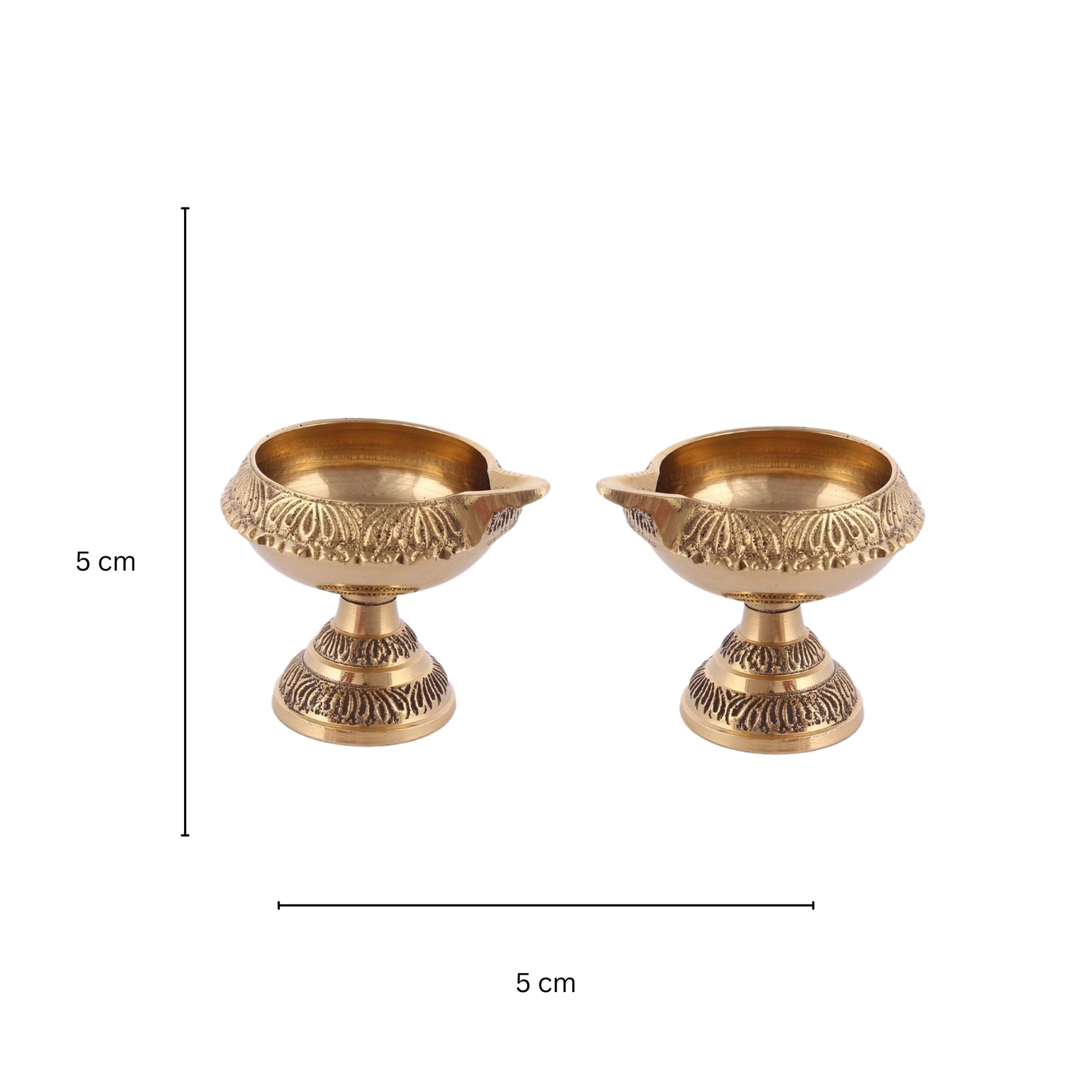 Aakrati Pure Brass Handcrafted Diwali Kuber Deepak On Stand Diya Oil Lamp For Puja Home Decor Pack of 2
