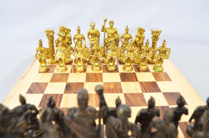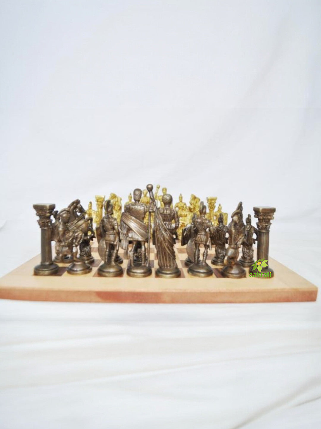 Antique Brass Chess Set Showpiece | Unique Decor for Homes and Offices | Brass Chess Set ( Multi-color, 3.6 inch)