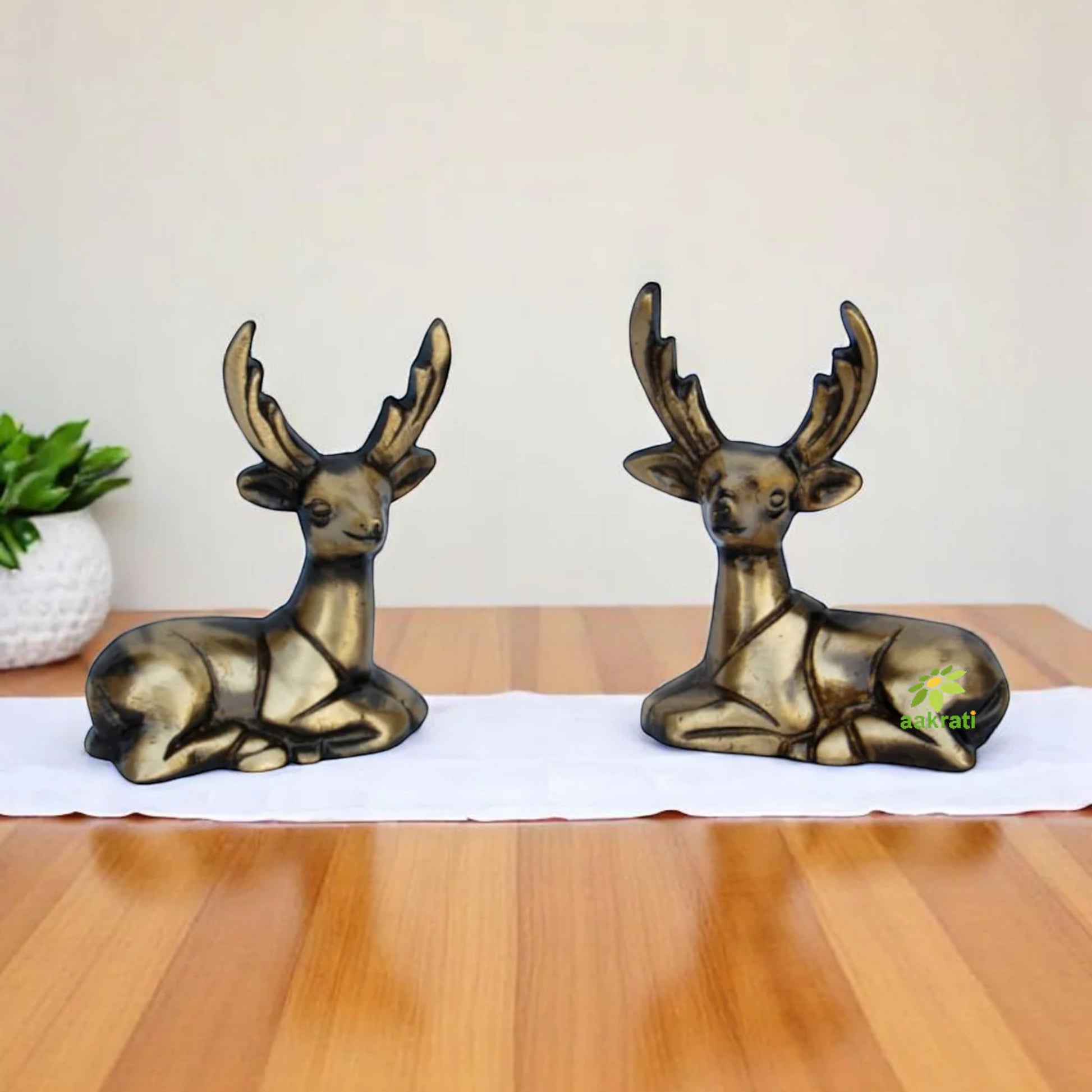 Antique Style Brass Deer Pair Set | Elegant Addition to Home Decor for a Luxurious Feel | Handcrafted Brass Deer Figurine Showpiece ( Brown, 2.4 inch)