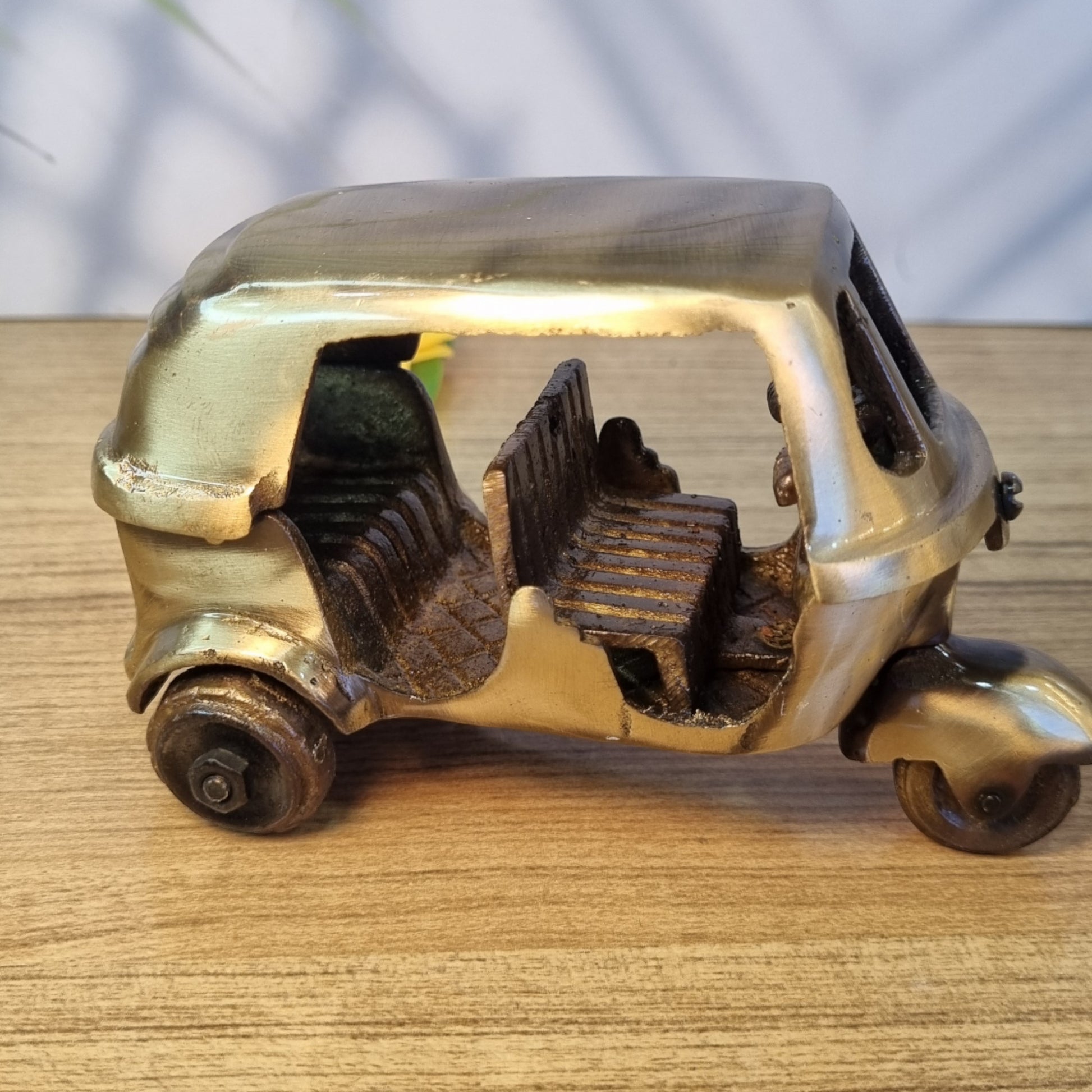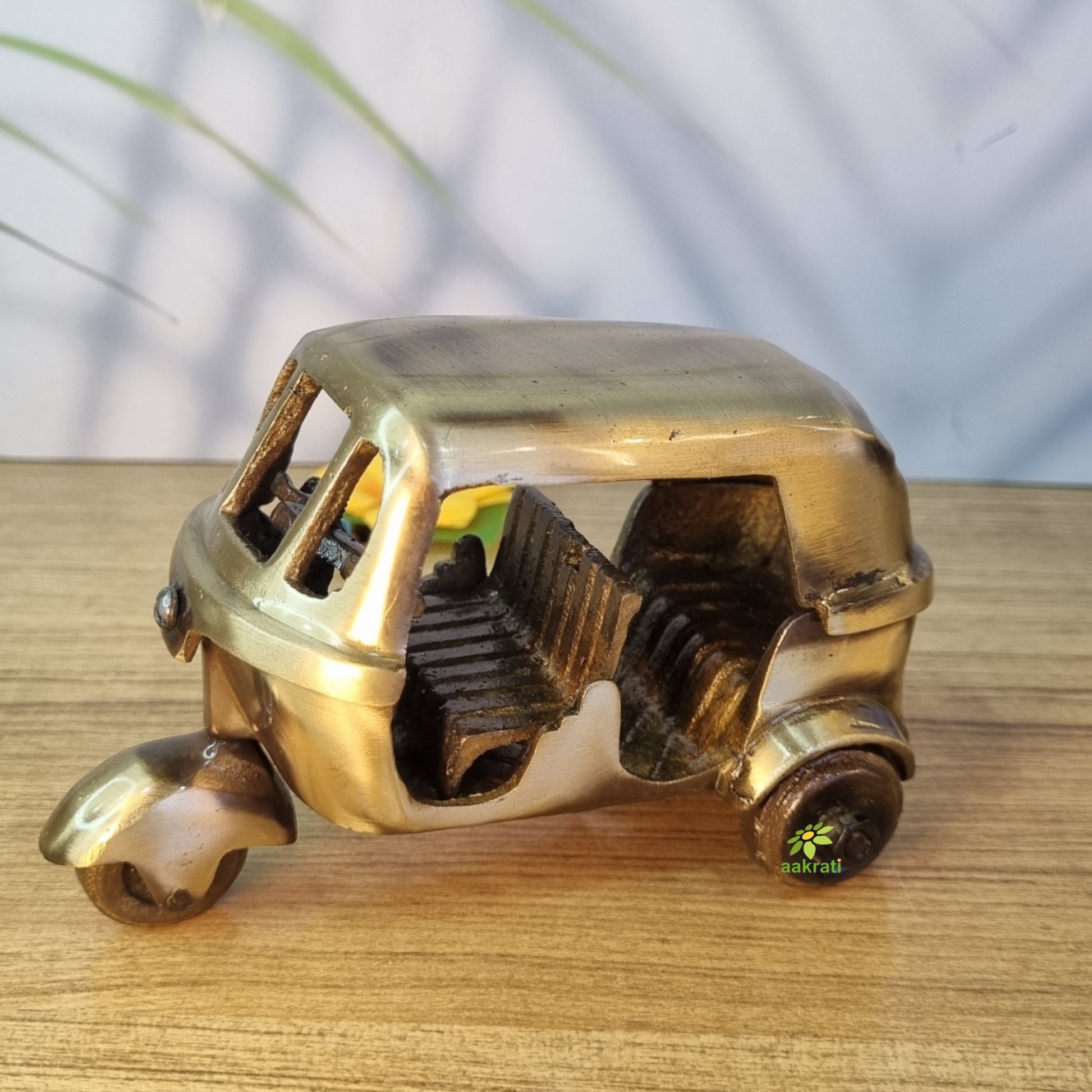 Brass Auto Rickshaw Statue | Traditional Indian Charm for Your Living Room | Handcrafted Brass Tempo Idol | Tuk Tuk ( Antique, 3 inch)