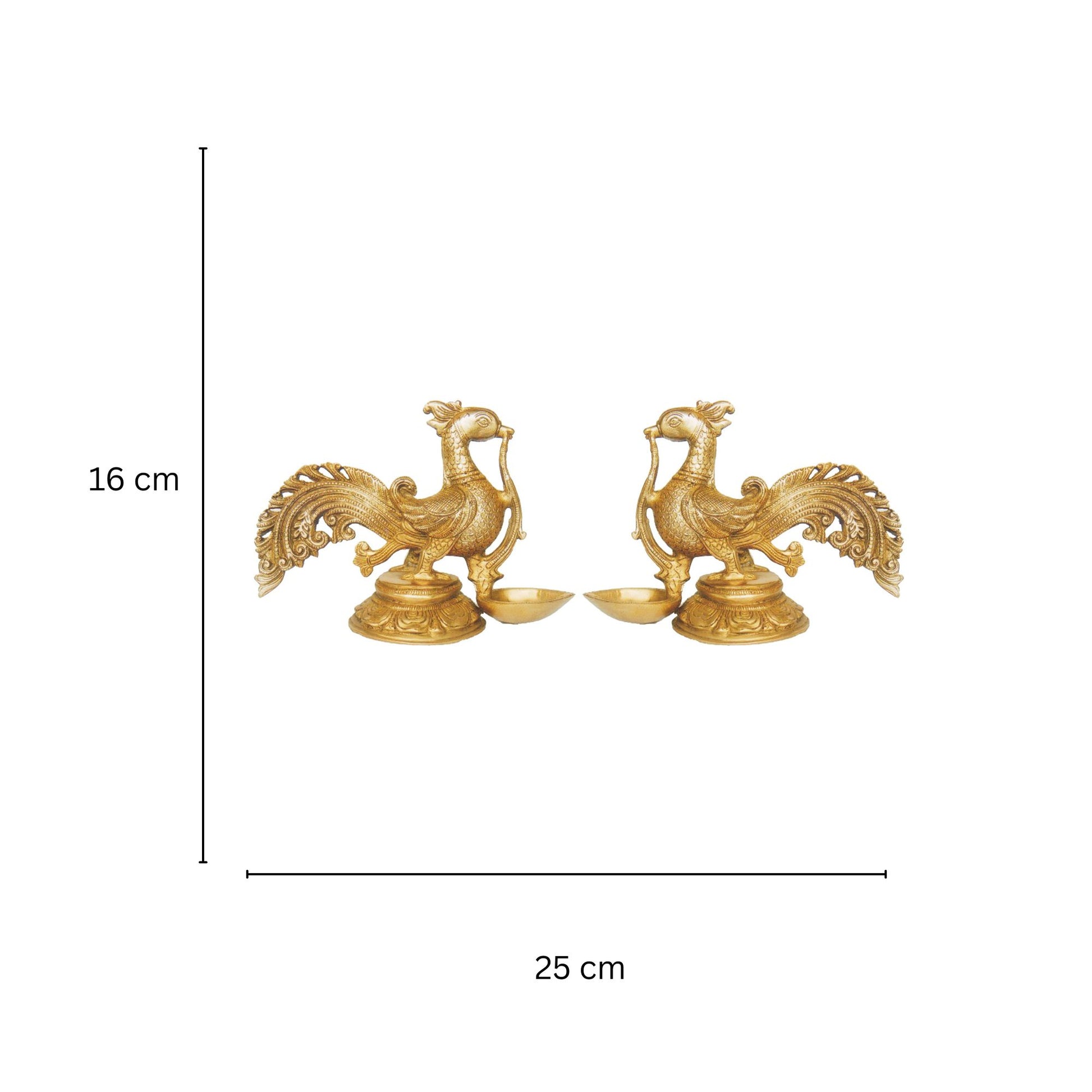 Brass Bird Shaped Diya Pair | Perfect for Diwali and Festival Home Decoration | Handmade Brass Bird Diya Set ( Yellow, 9 inch)