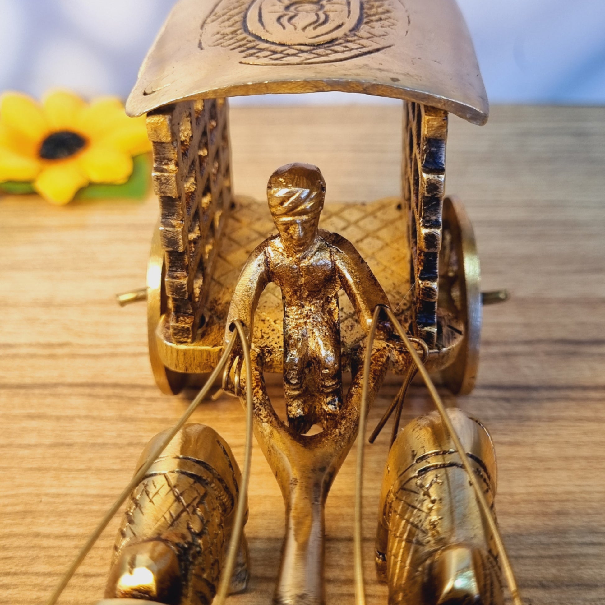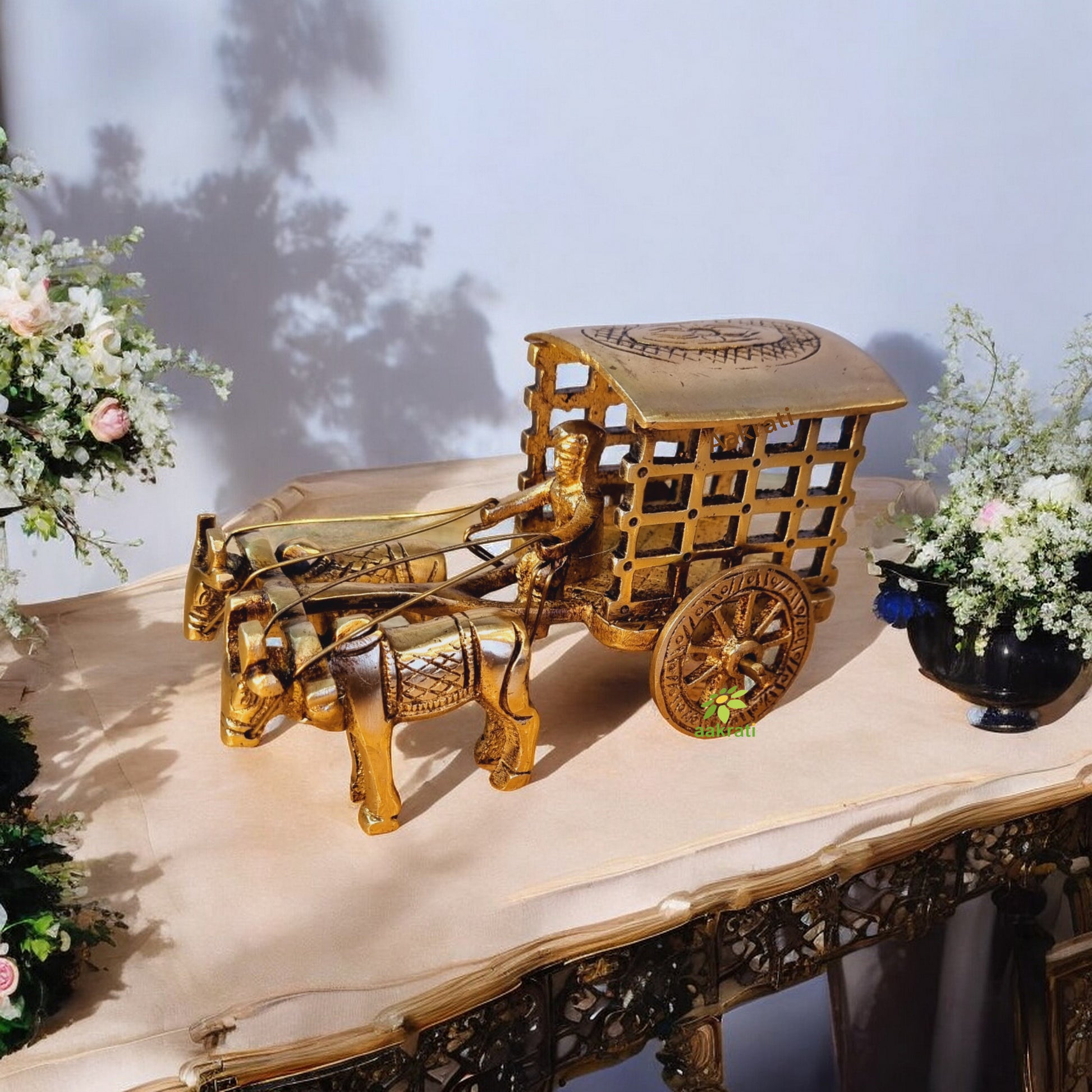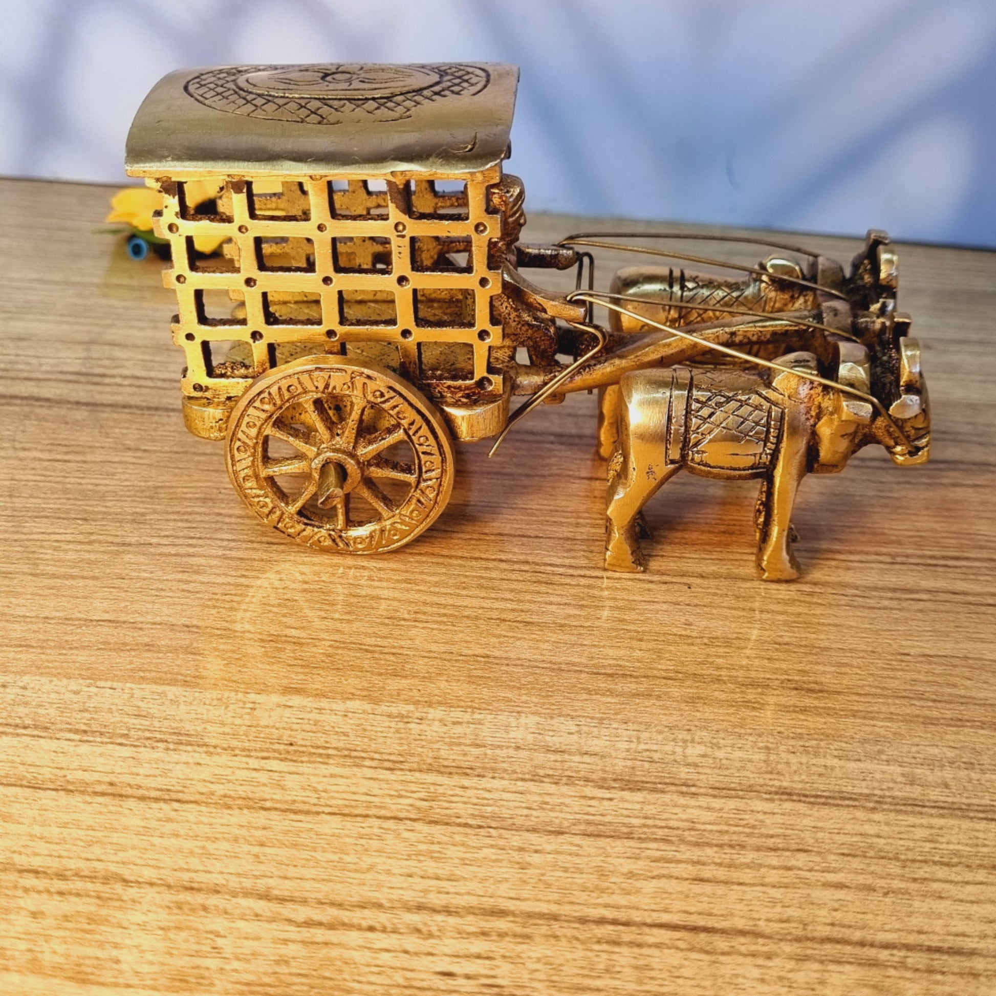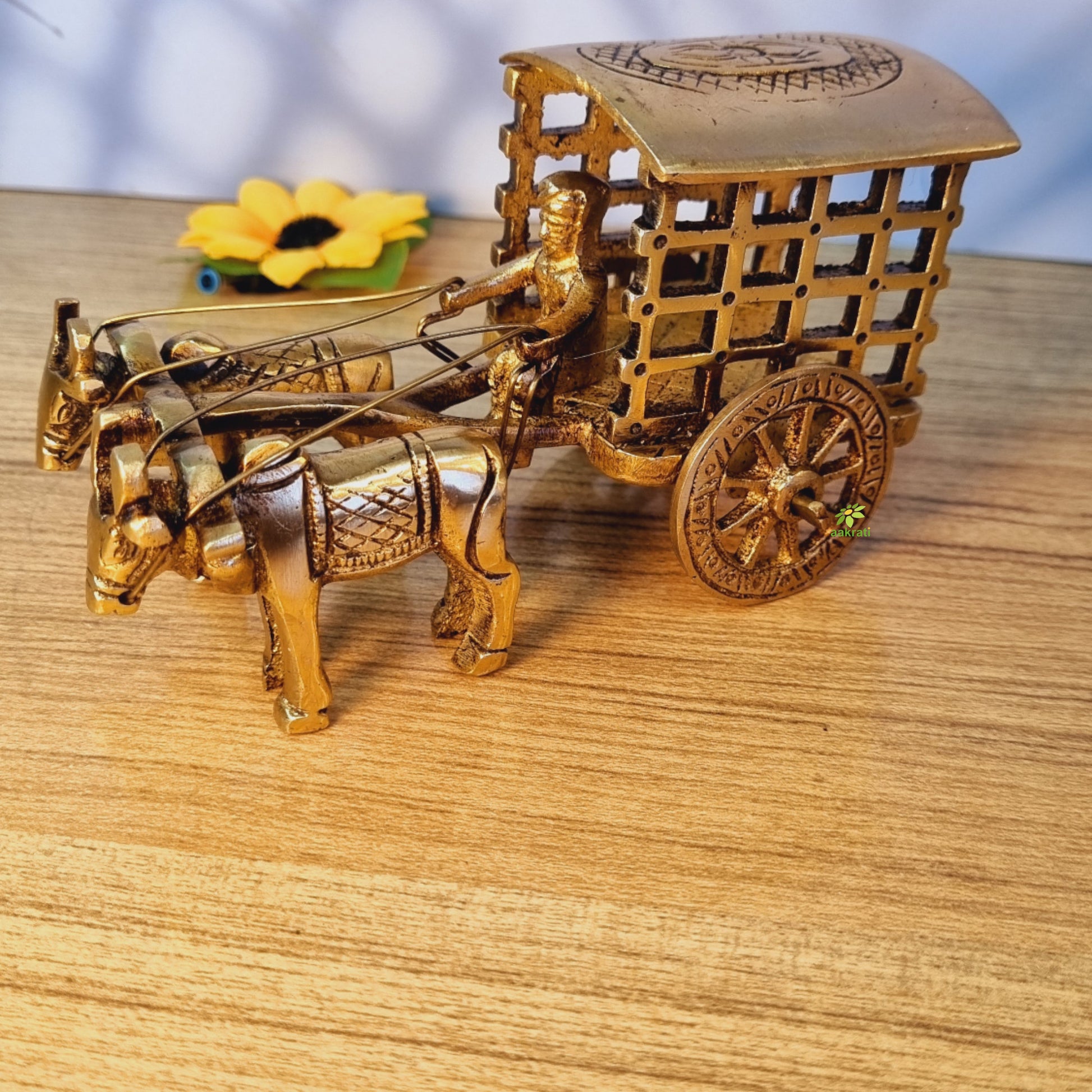 Brass Bullock Cart Showpiece | A Beautiful Handcrafted Addition to Your Home Decor | Handcrafted Brass Bullock Cart Figurine ( Brown, 6.5 inch)