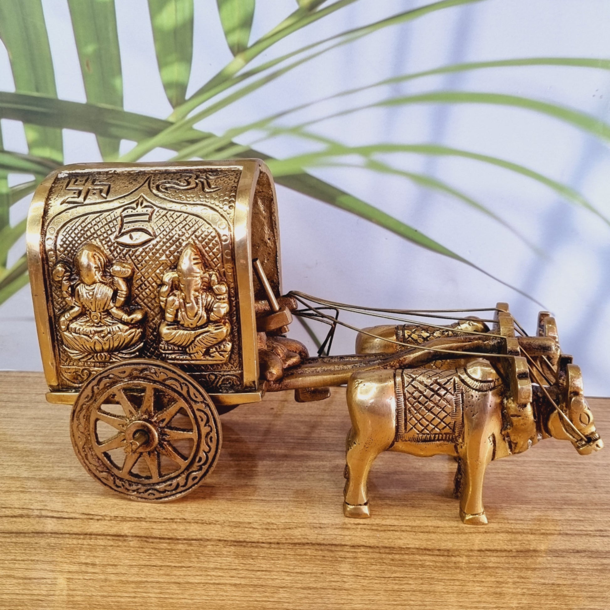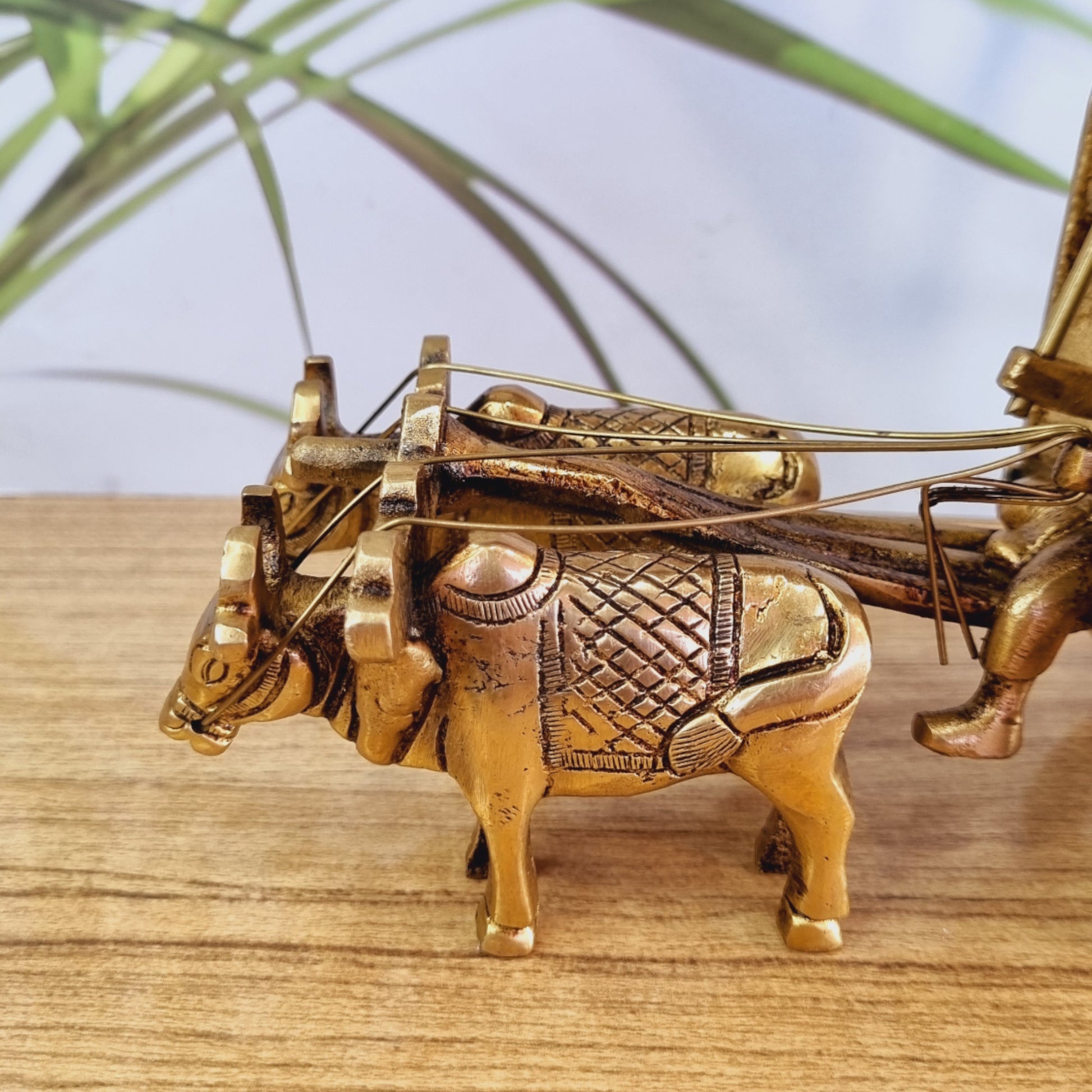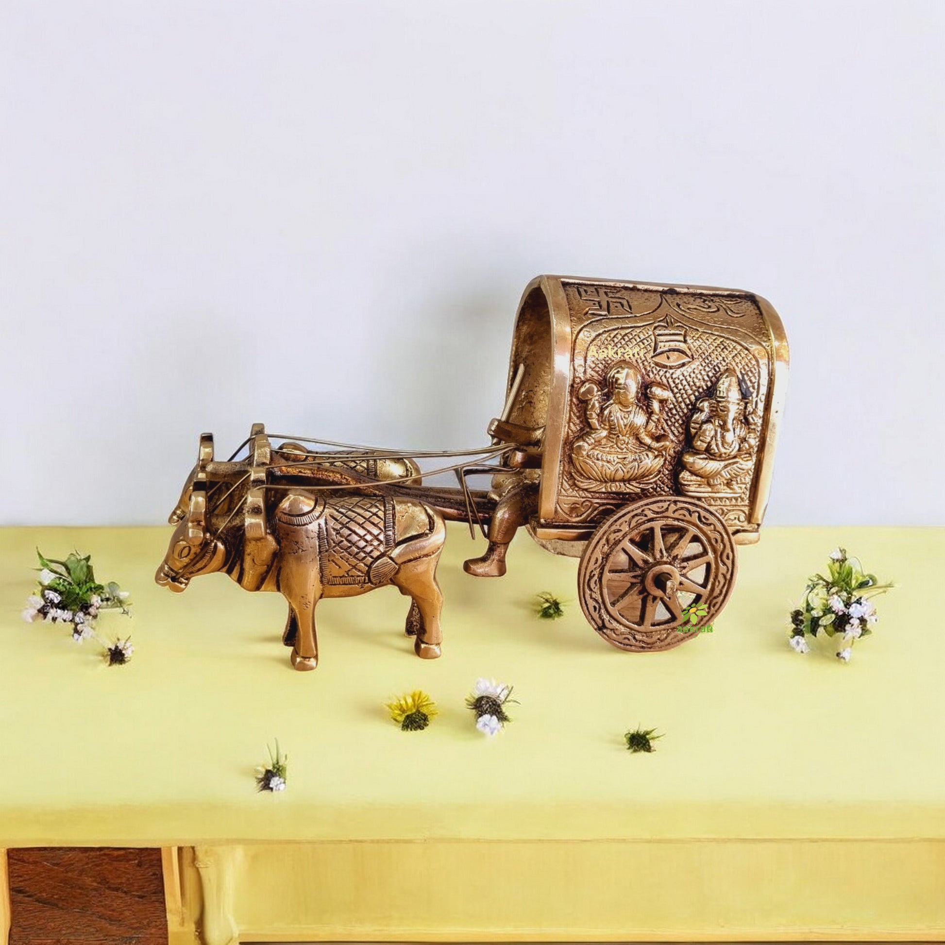 Brass Bullock Cart Statue | Beautiful Vintage Decor for Sacred Spaces | Brass Bullock Cart Showpiece ( Yellow, 6.7 inch)