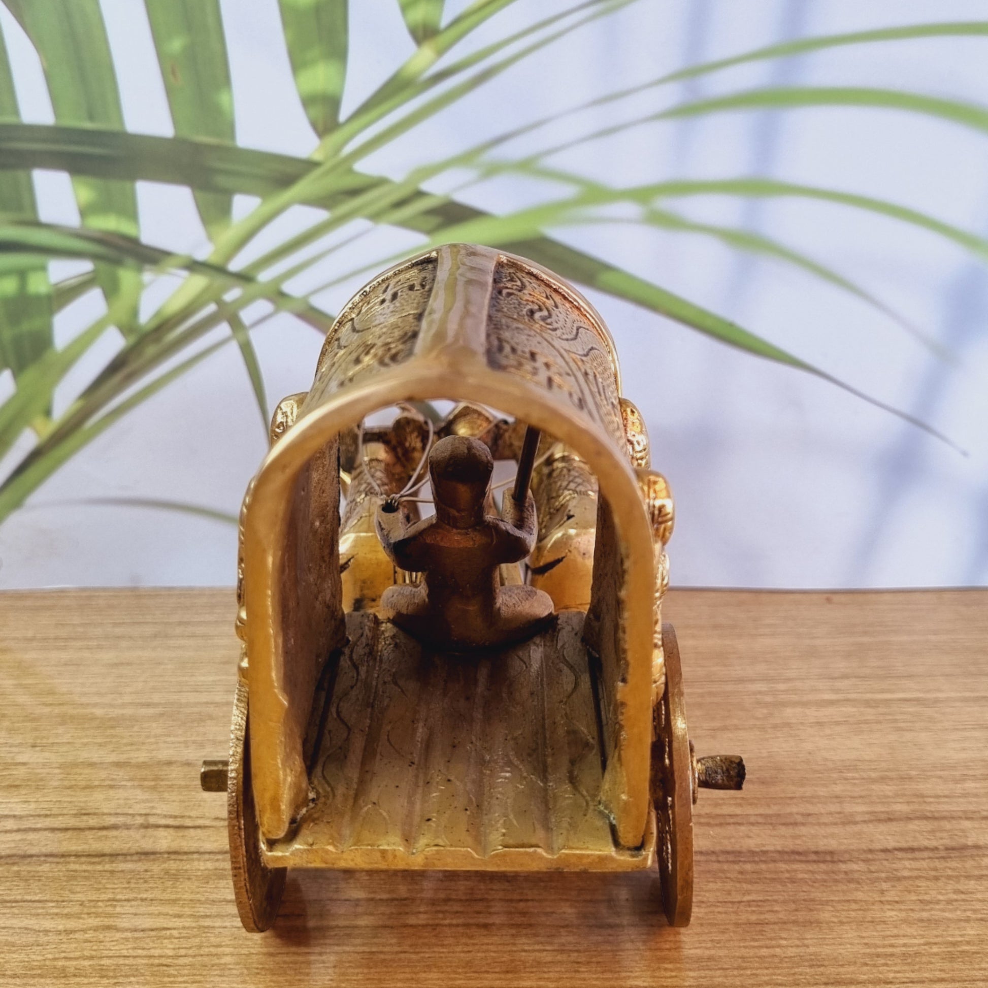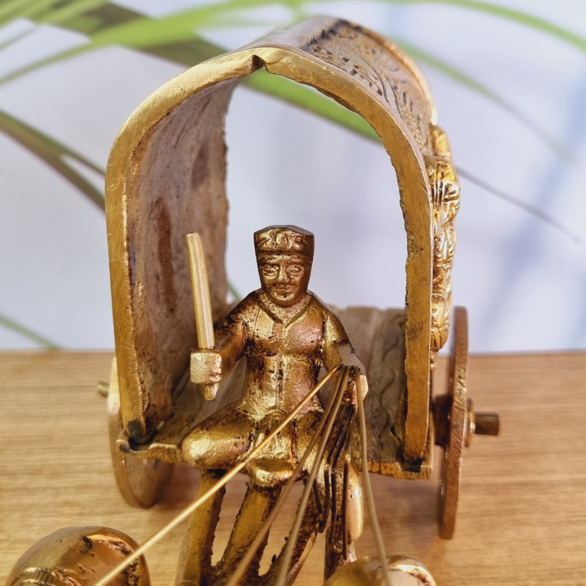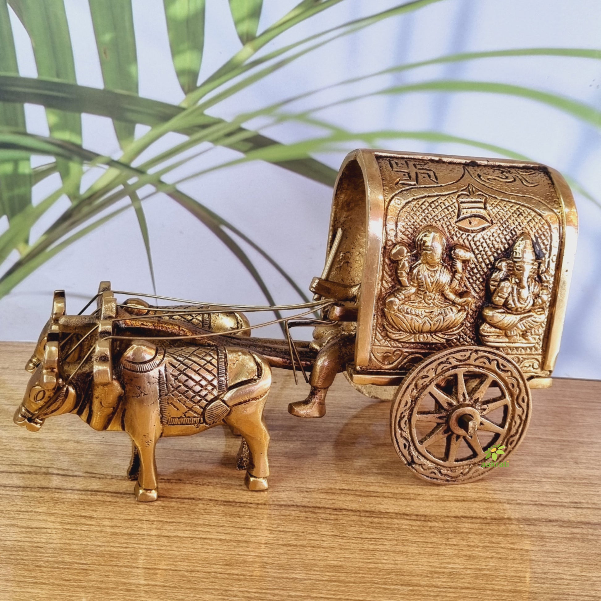 Brass Bullock Cart Statue | Beautiful Vintage Decor for Sacred Spaces | Brass Bullock Cart Showpiece ( Yellow, 6.7 inch)