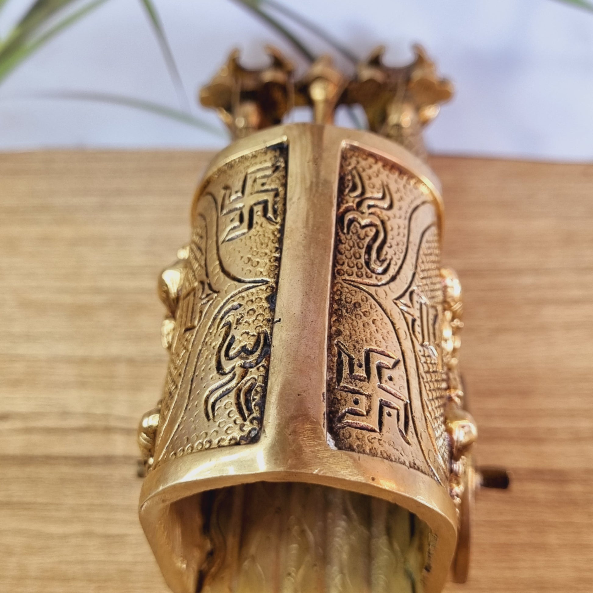 - Highlight the use of high-quality brass that ensures durability and longevity. Emphasize that it doesn't tarnish easily and retains its shine for a long time, making it suitable for religious rituals and decorations.