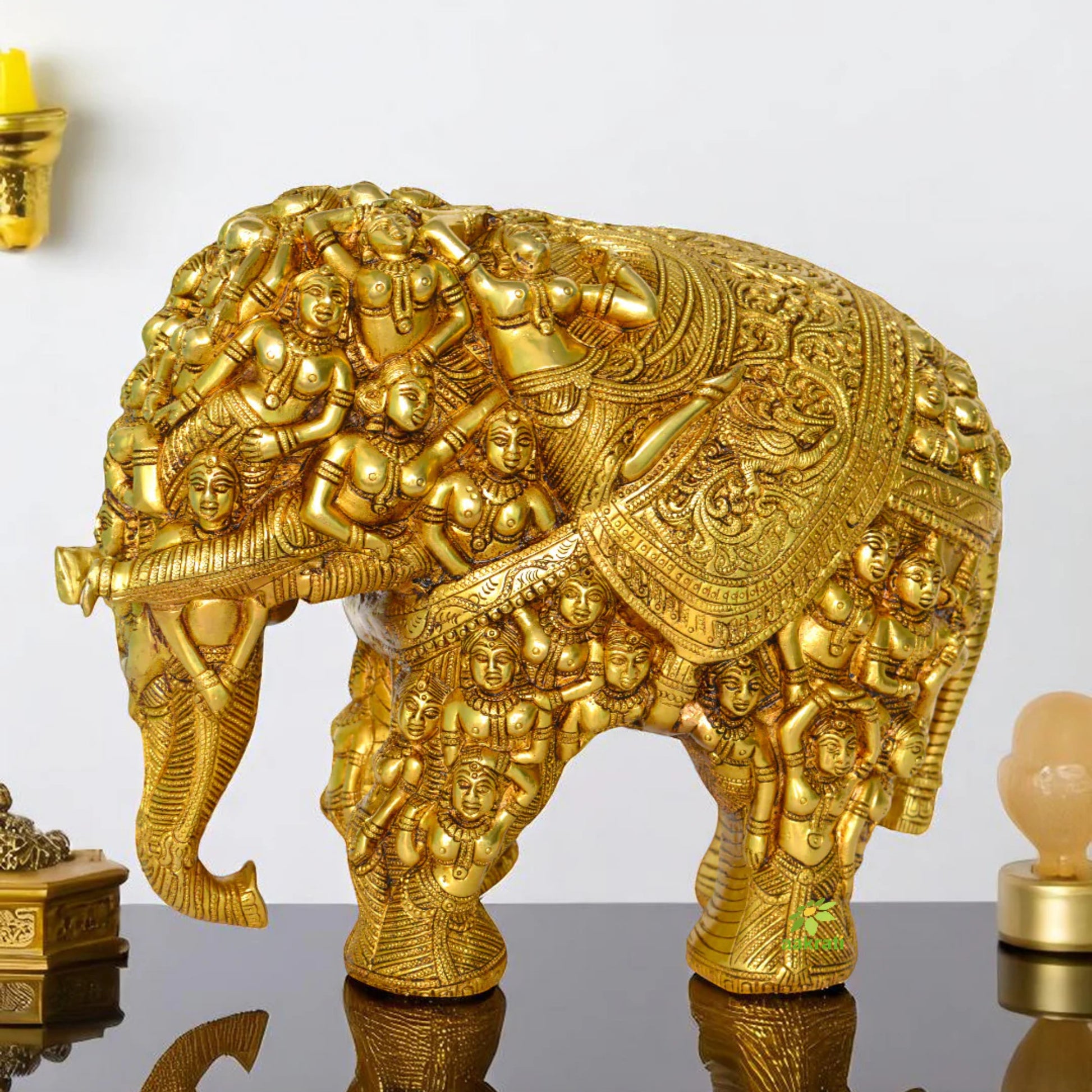 Brass Elephant Engraved Lady Figures Home Decor Royal Statue
