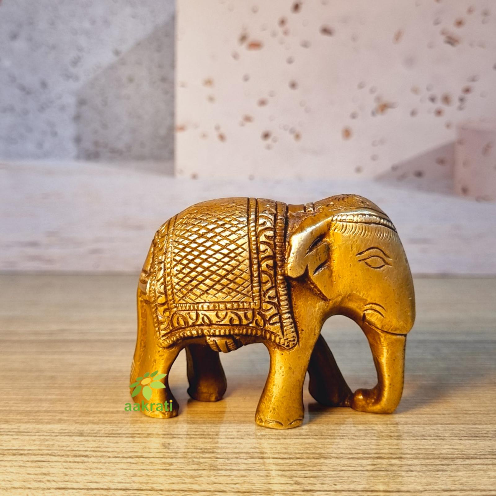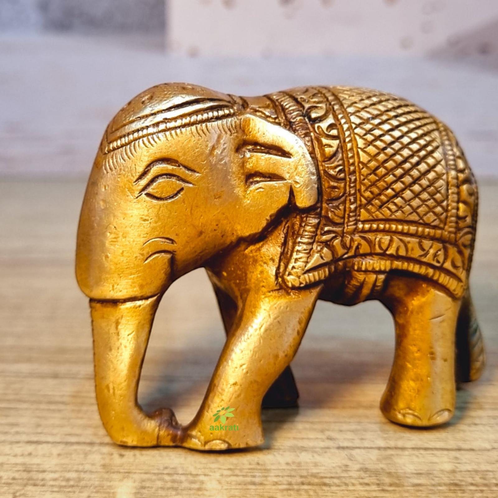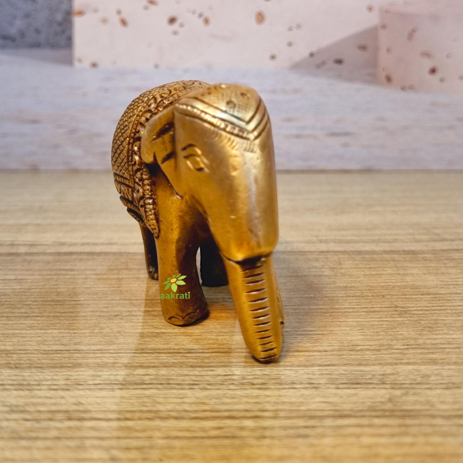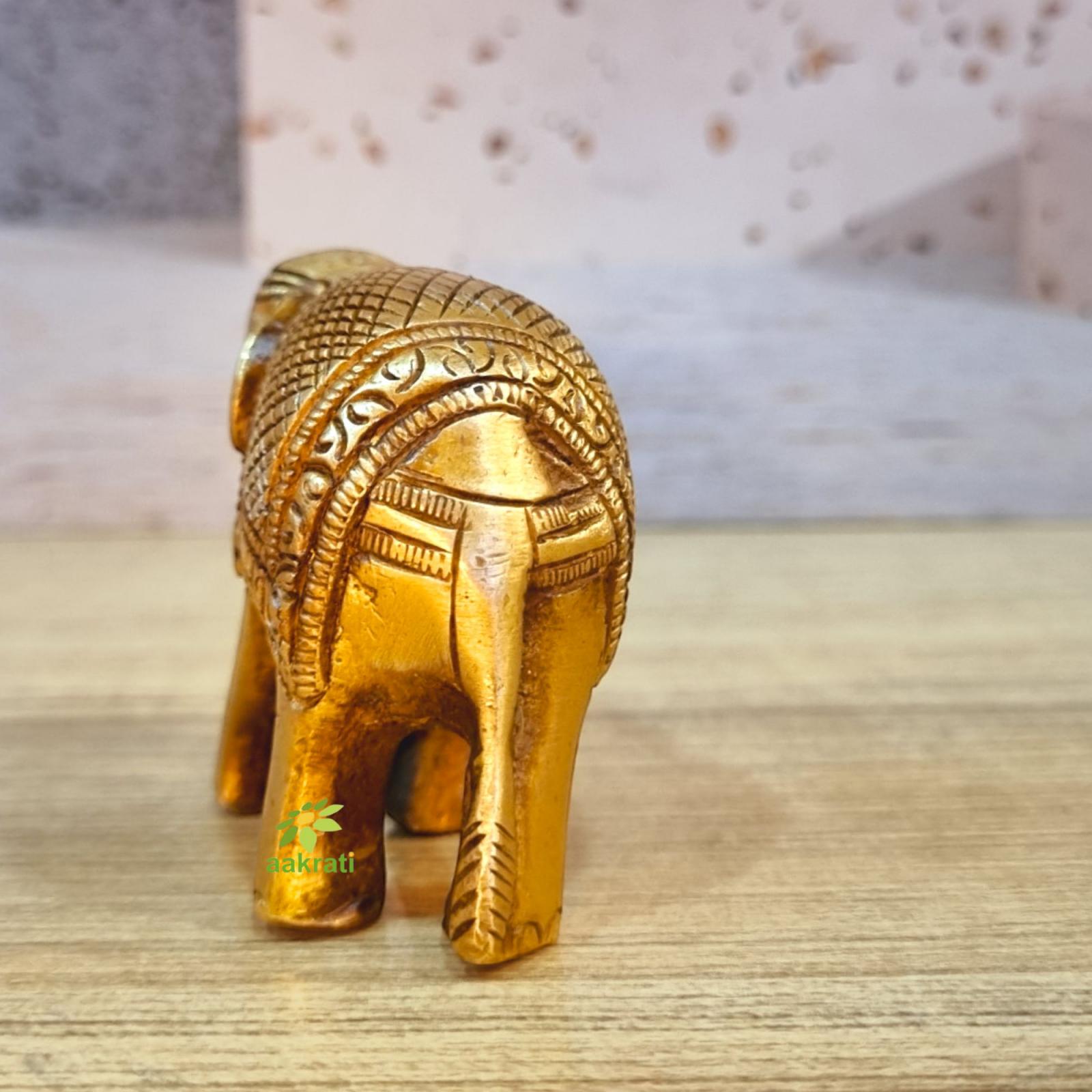 Brass Elephant Idol | Traditional Symbol of Good Fortune for Your Home | Handcrafted Brass Elephant Figurine ( Yellow, 3.5 inch)
