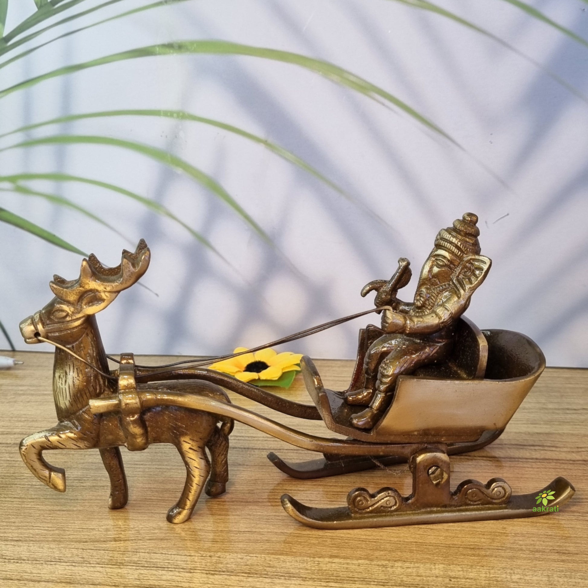 Brass Ganesha Sleigh Showpiece Statue | A Beautiful Decorative Piece for Traditional Home Decor | Handcrafted Decorative Brass Ganesha Statue ( Brown, 7.1 inch)