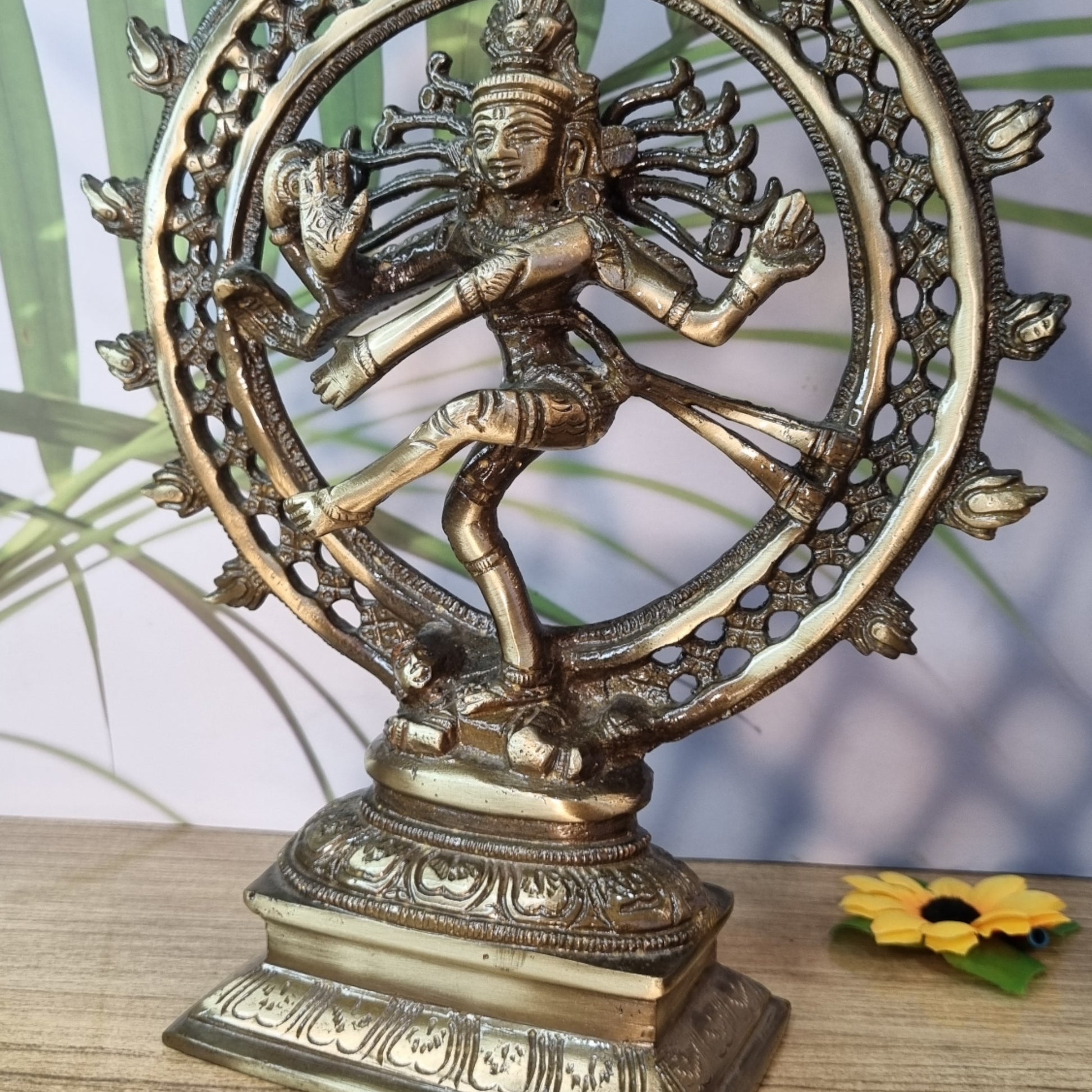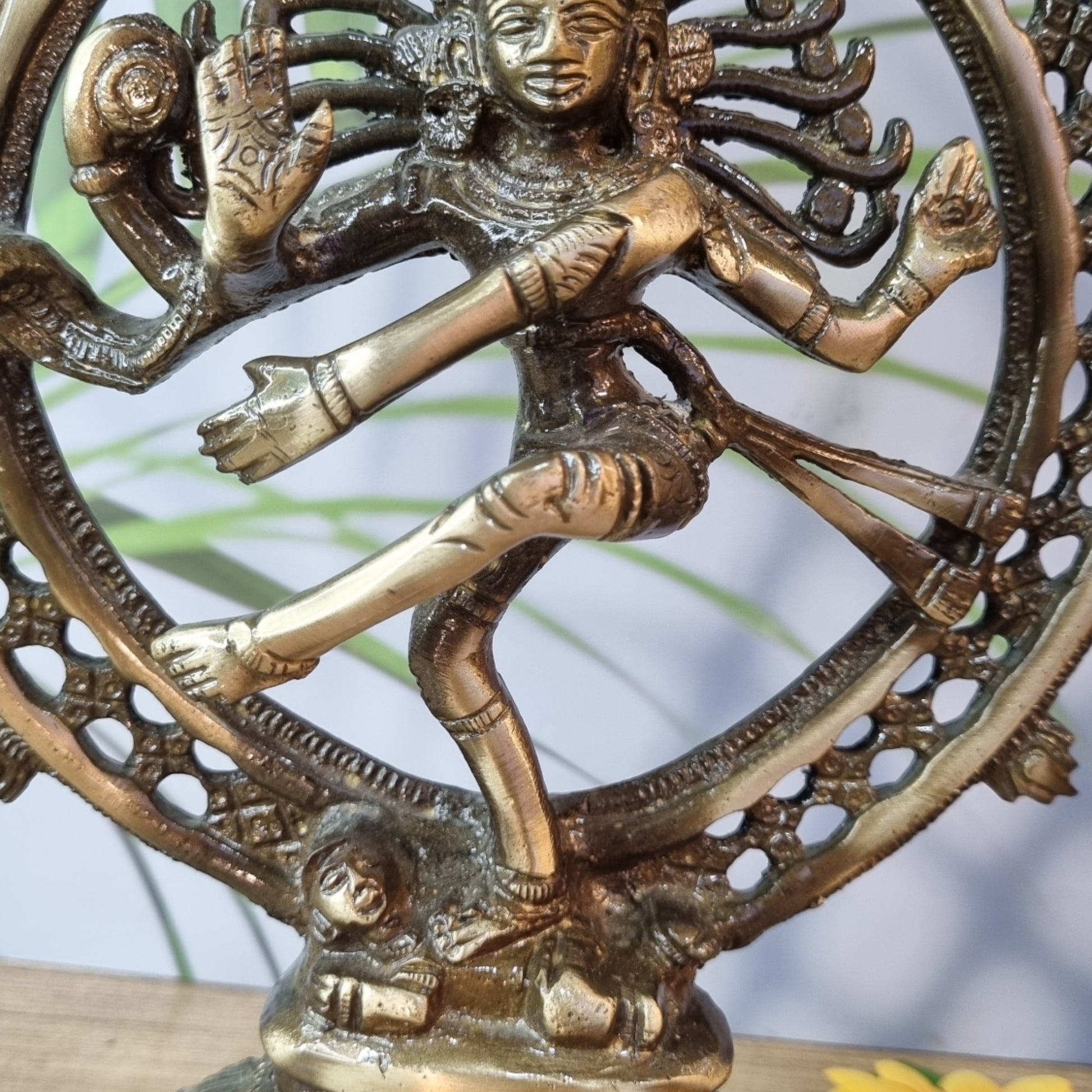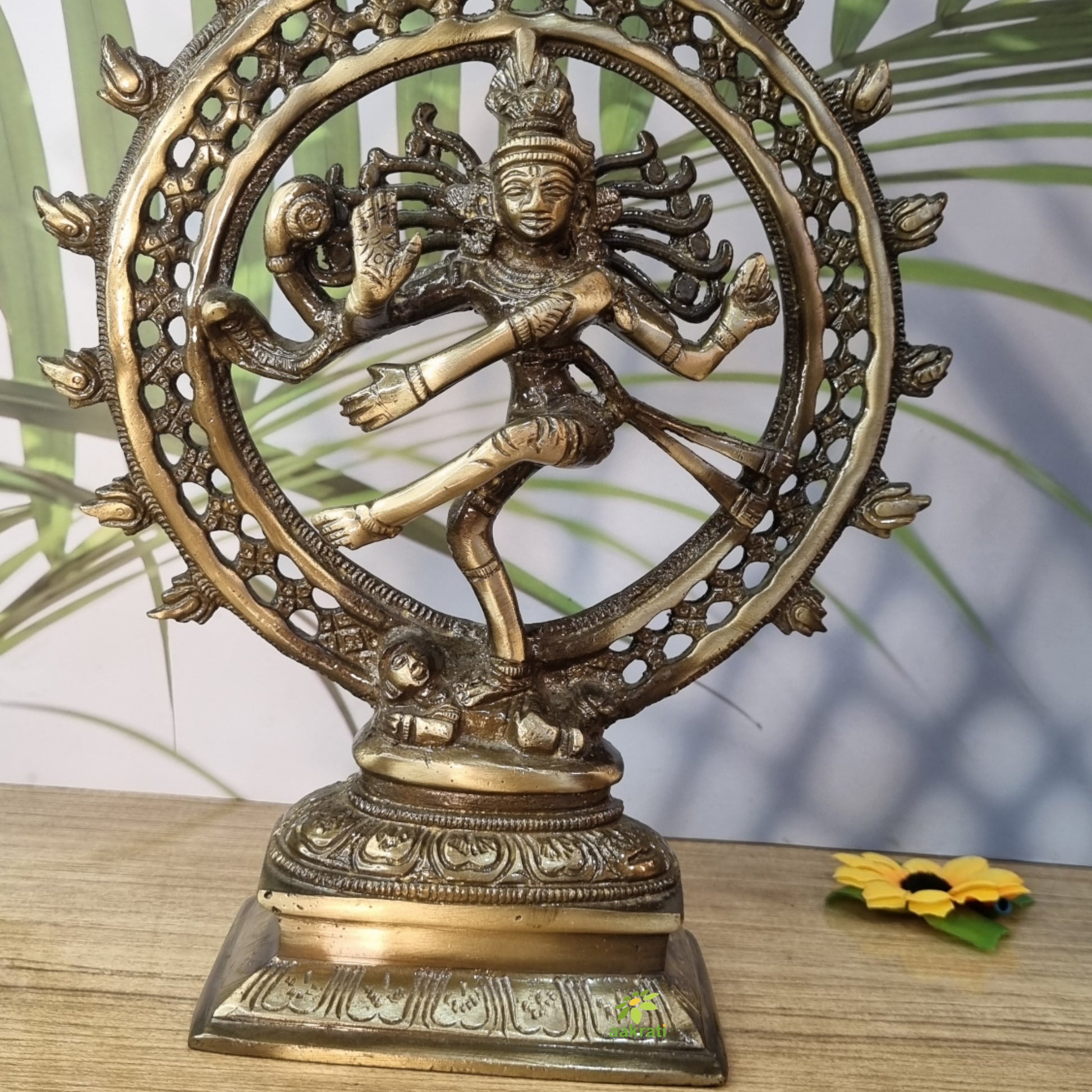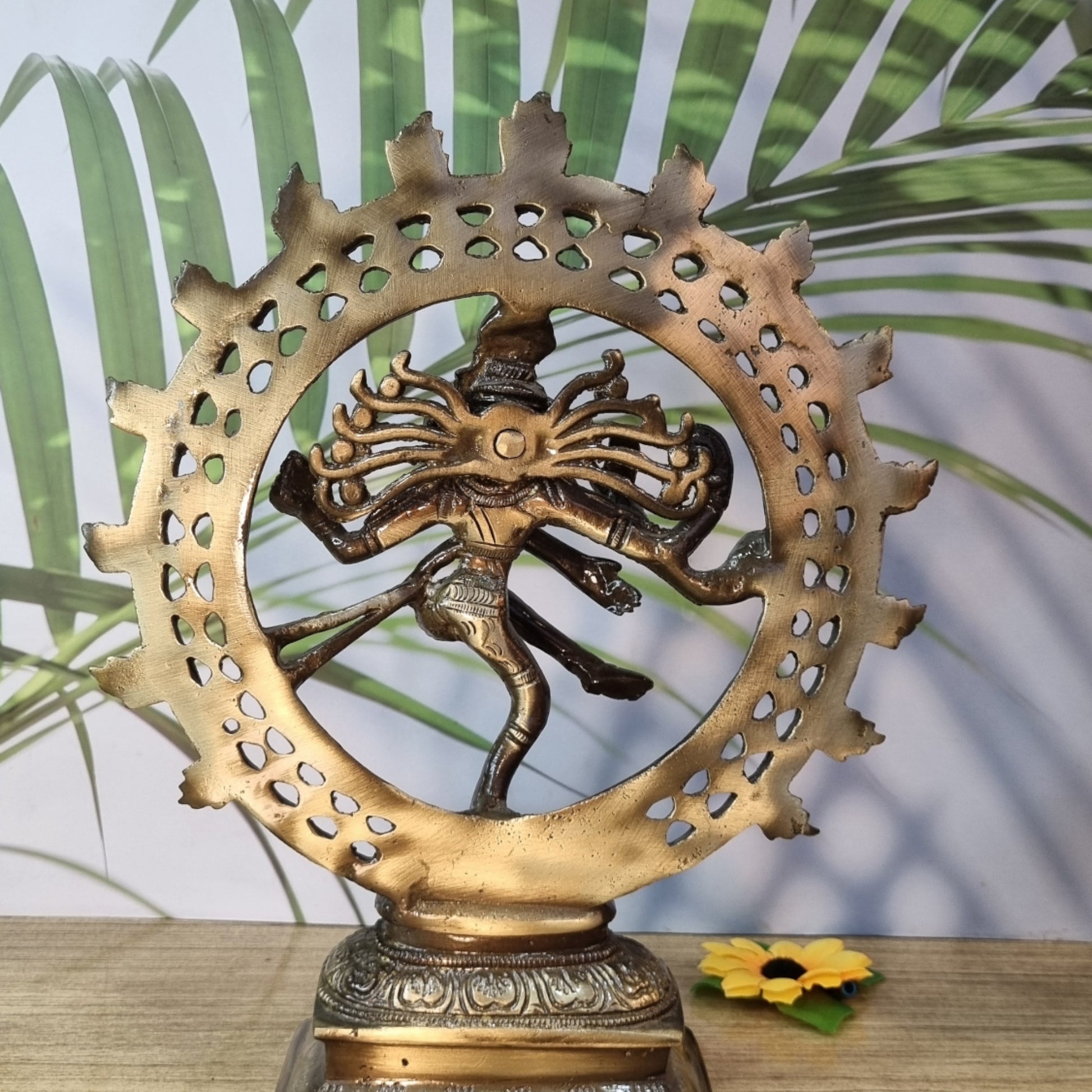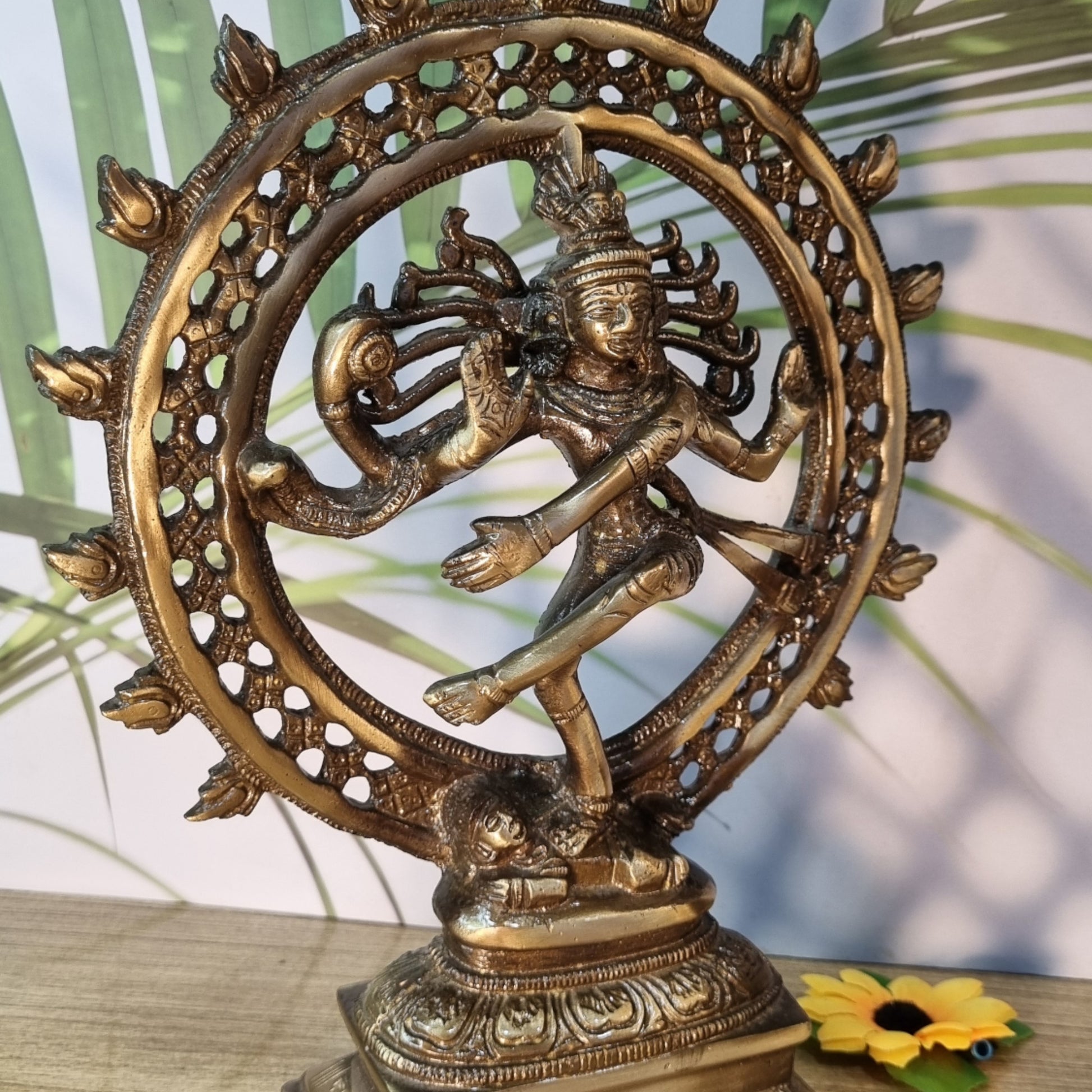 Brass Lord Nataraja Showpiece | Handcrafted Lord Shiva Dance Statue for Spiritual Spaces | Elegant Brass Nataraja Statue ( Brown, 8 inch)