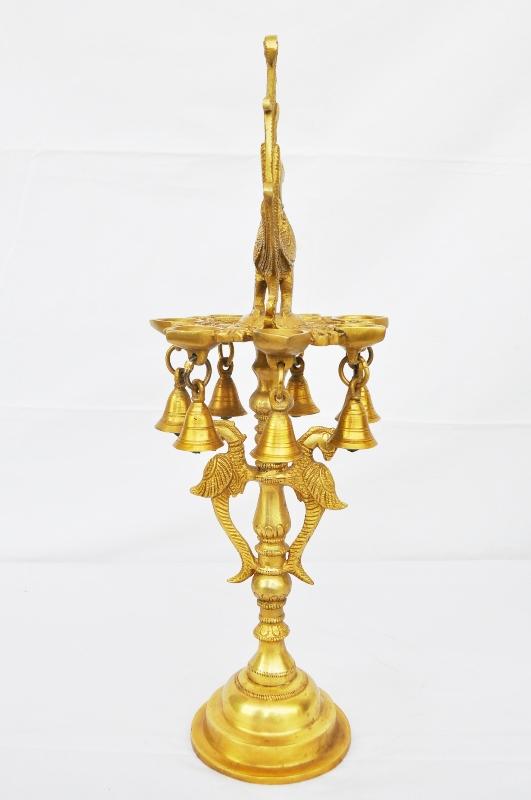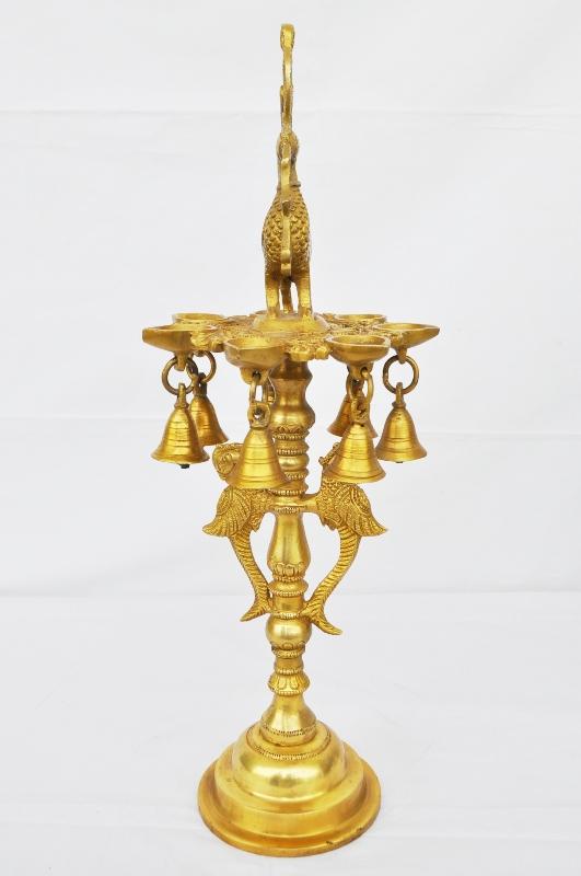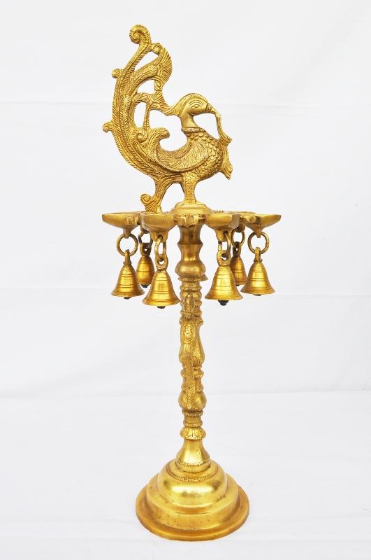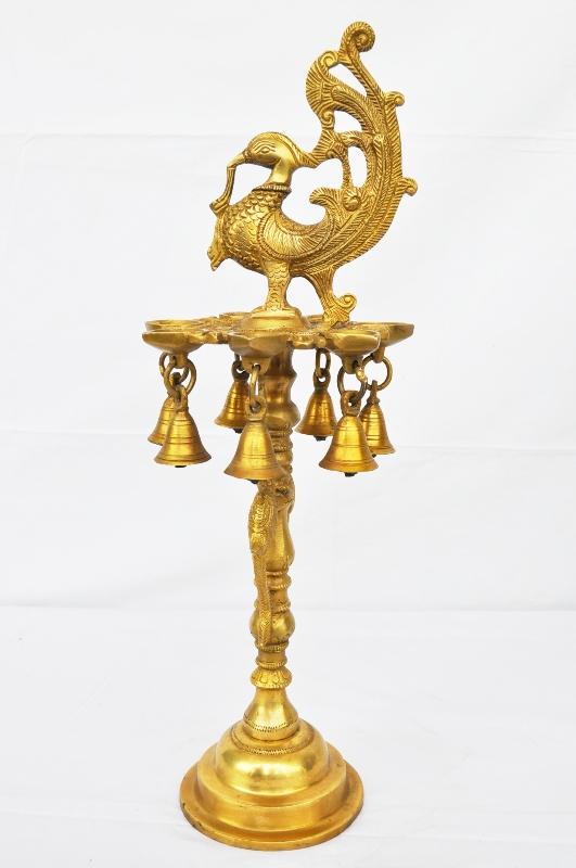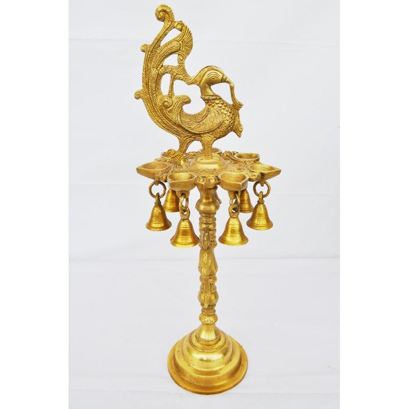 Brass Oil Lamp Stand with Bell | Perfect for Home and Temple Pooja | Brass Pooja Deepak with Bell ( Yellow, 17 inch)