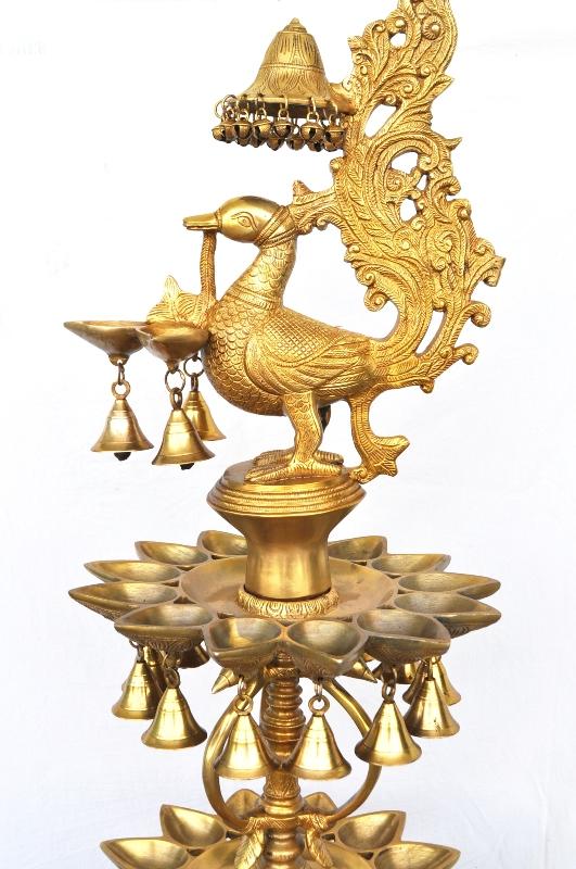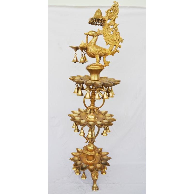 Brass Peacock Oil Lamp Stand | Luxurious Festival Decor for Home and Pooja Room | Brass Peacock Oil Lamp ( Yellow, 48 inch)