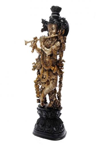 Brass Radha Krishna Idol | Handcrafted Divine Statue for Love & Devotion | Handmade Brass Krishna Murti ( Yellow, 30 inch)