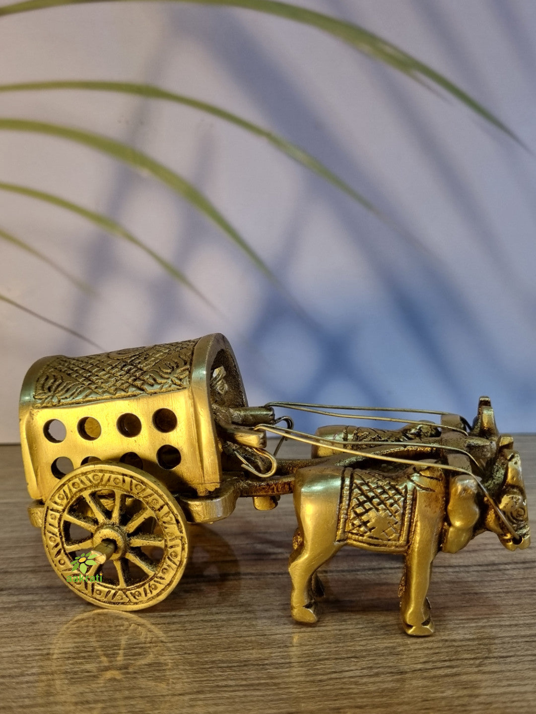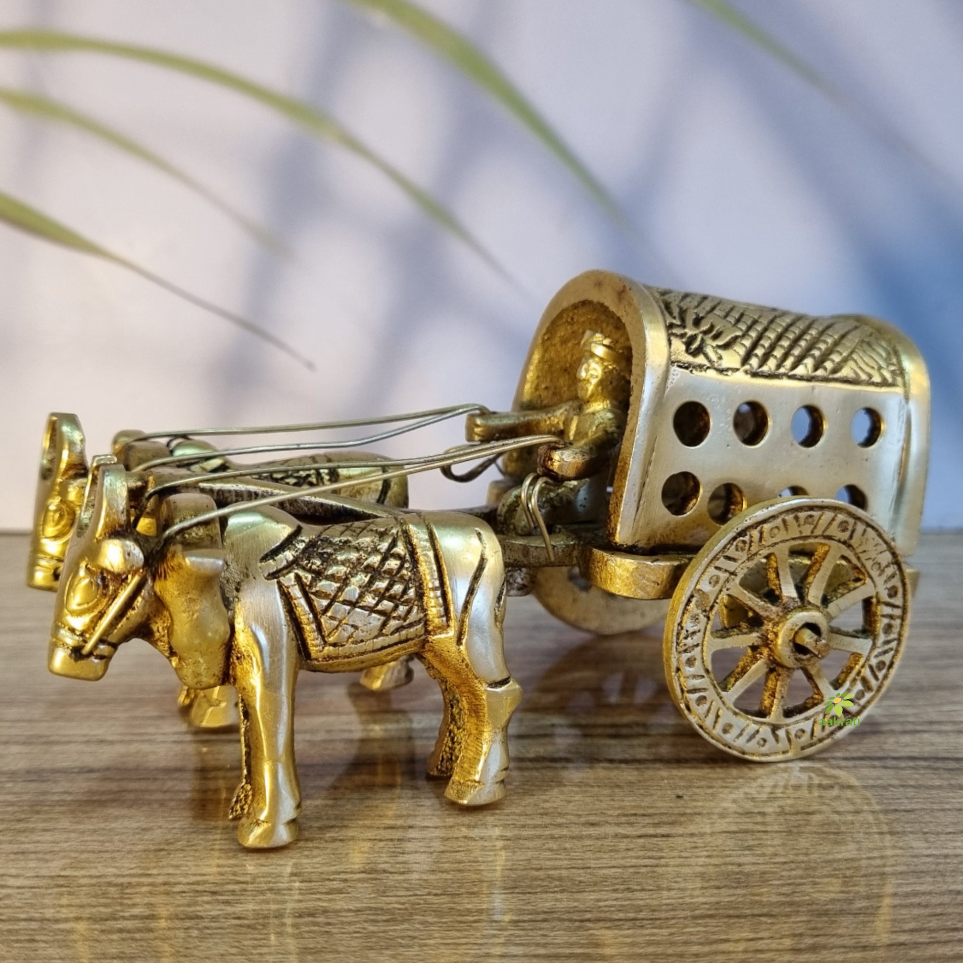 Brass Bull Cart Showpiece | Handcrafted Bullock Cart Figurine for Home Décor | Handmade Brass Bull Cart ( Yellow, 2.5 inch)