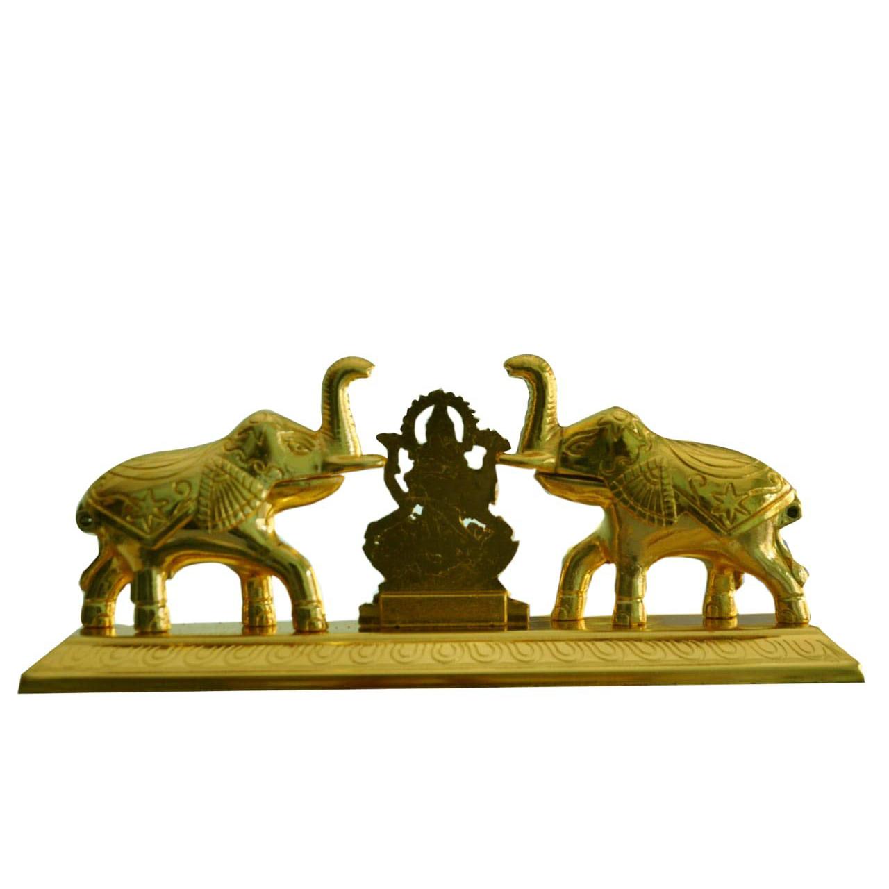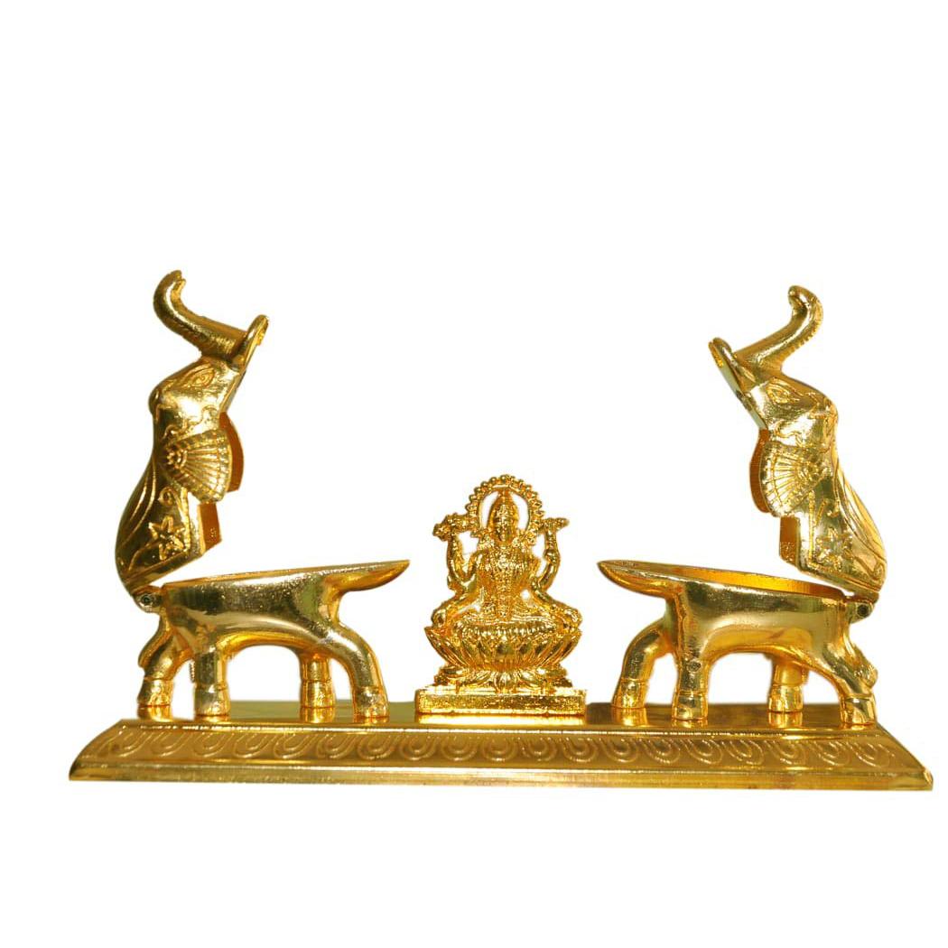 Metal Haldi KumKum Holder with Elephant Figurine With Laxmi Yantra by Aakrati