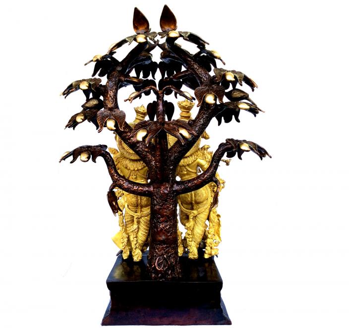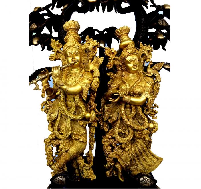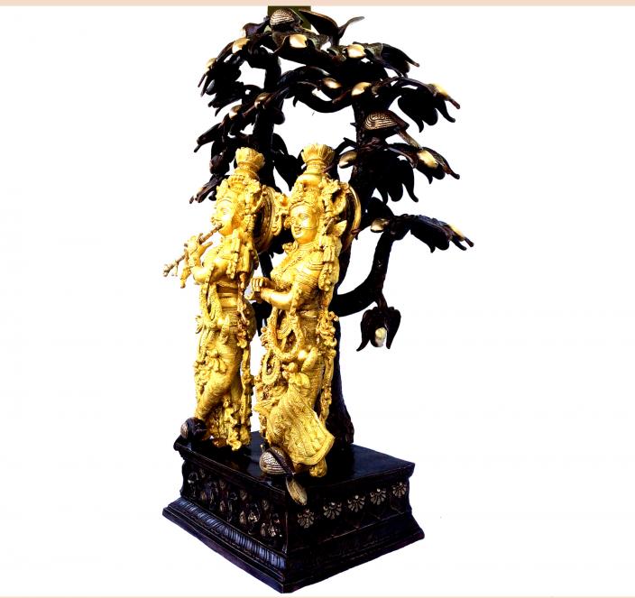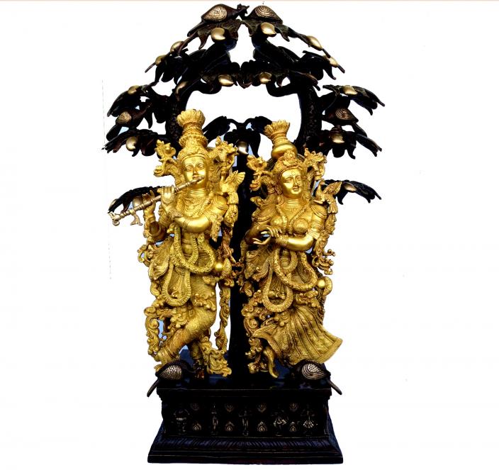 Handmade Brass Radha Krishna Idol | A Sacred Gift of Love and Devotion | Radha Krishna Brass Idol ( Yellow, 34 inch)
