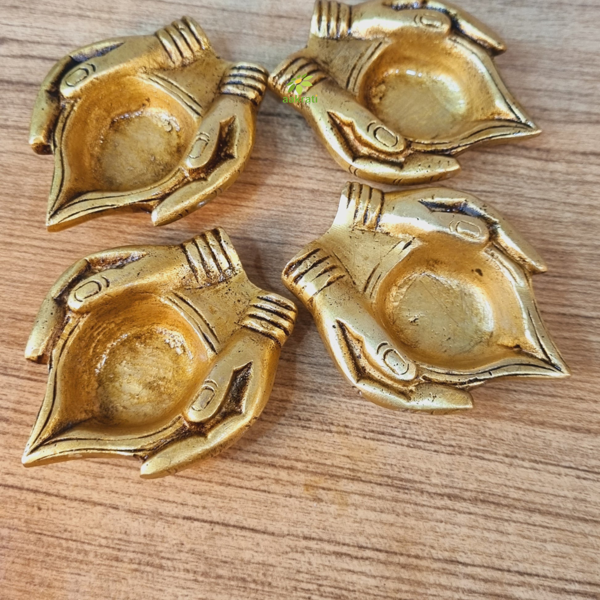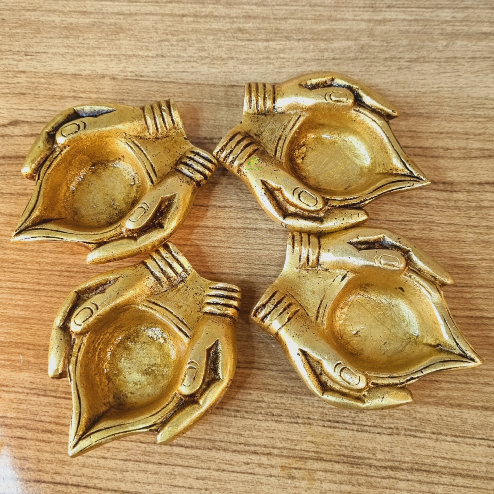 Handmade Indian Puja Brass Oil Lamp - Diya Lamp Engraved Design Dia Pack of 4