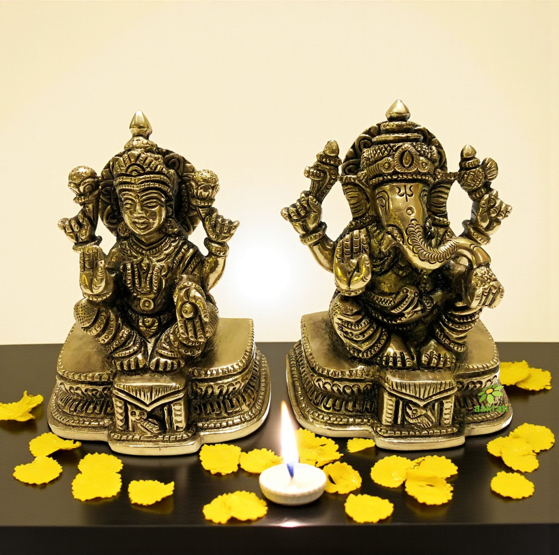 Lakshmi Ganesha brass metal hand carved pair statue for home decor/gift