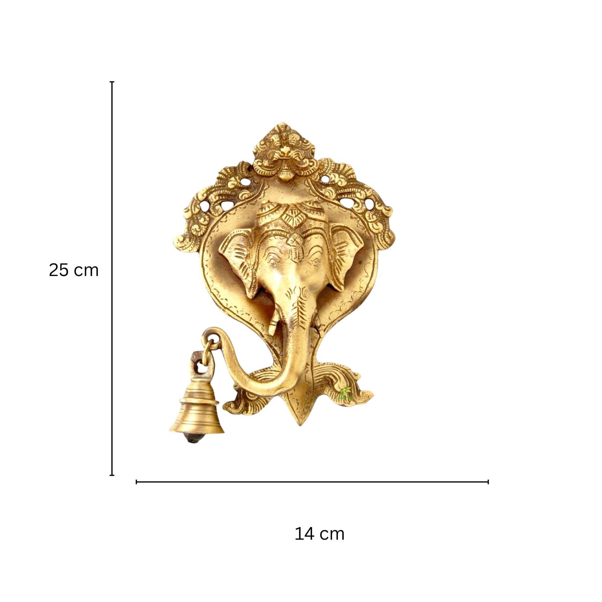 Brass Ganesha Wall Hanging Bell | Perfect for Traditional Home and Temple Decoration | Handcrafted Brass Ganesha Hanging ( Brown, 10 inch)