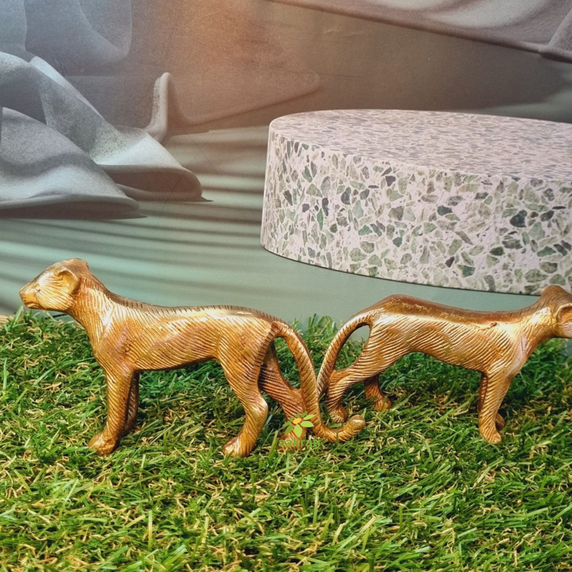 Pair of Tiger Statue of Brass metal Handmade animal figurine Decorative indian bronze look Sculpture with Antique finish Showpiece Gift Item