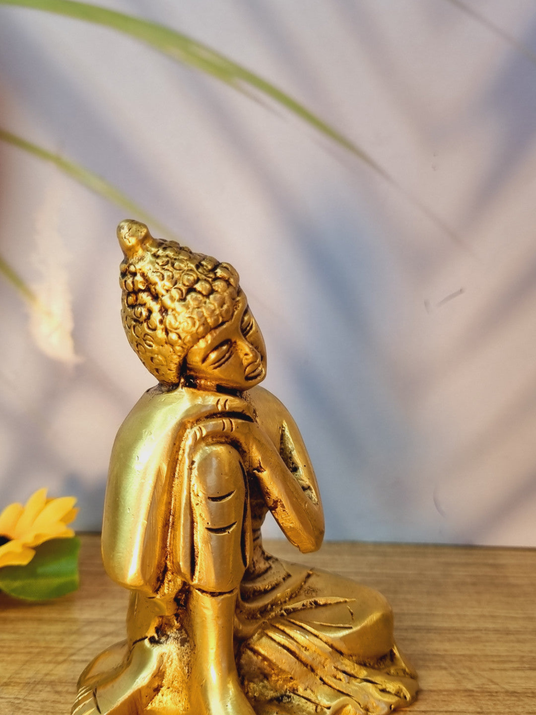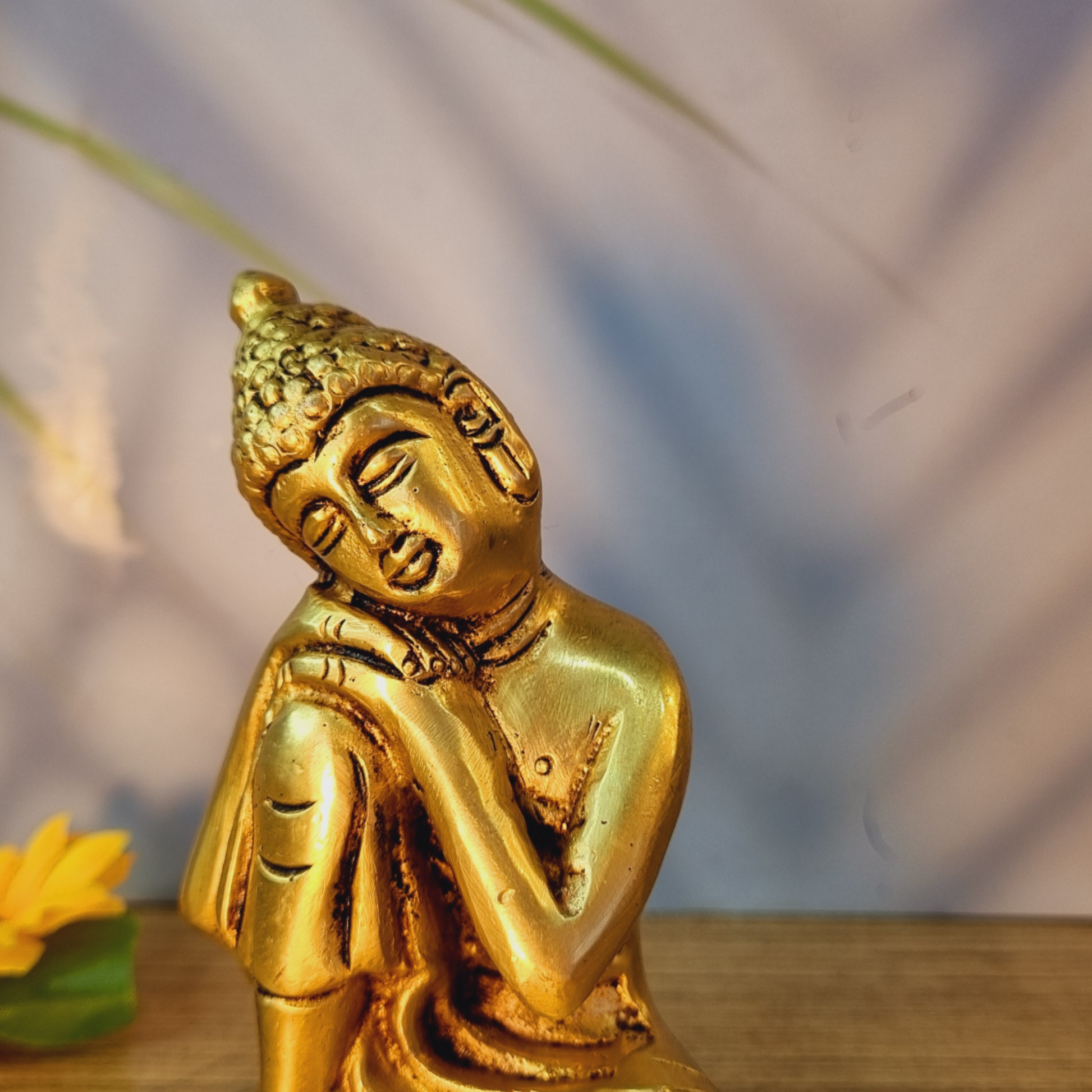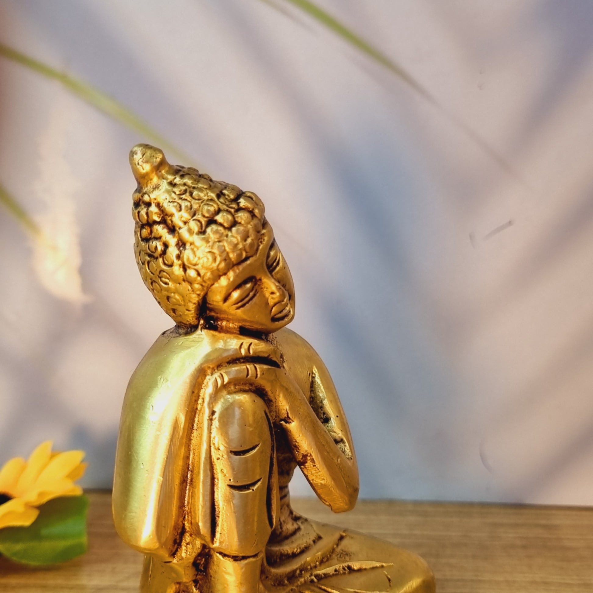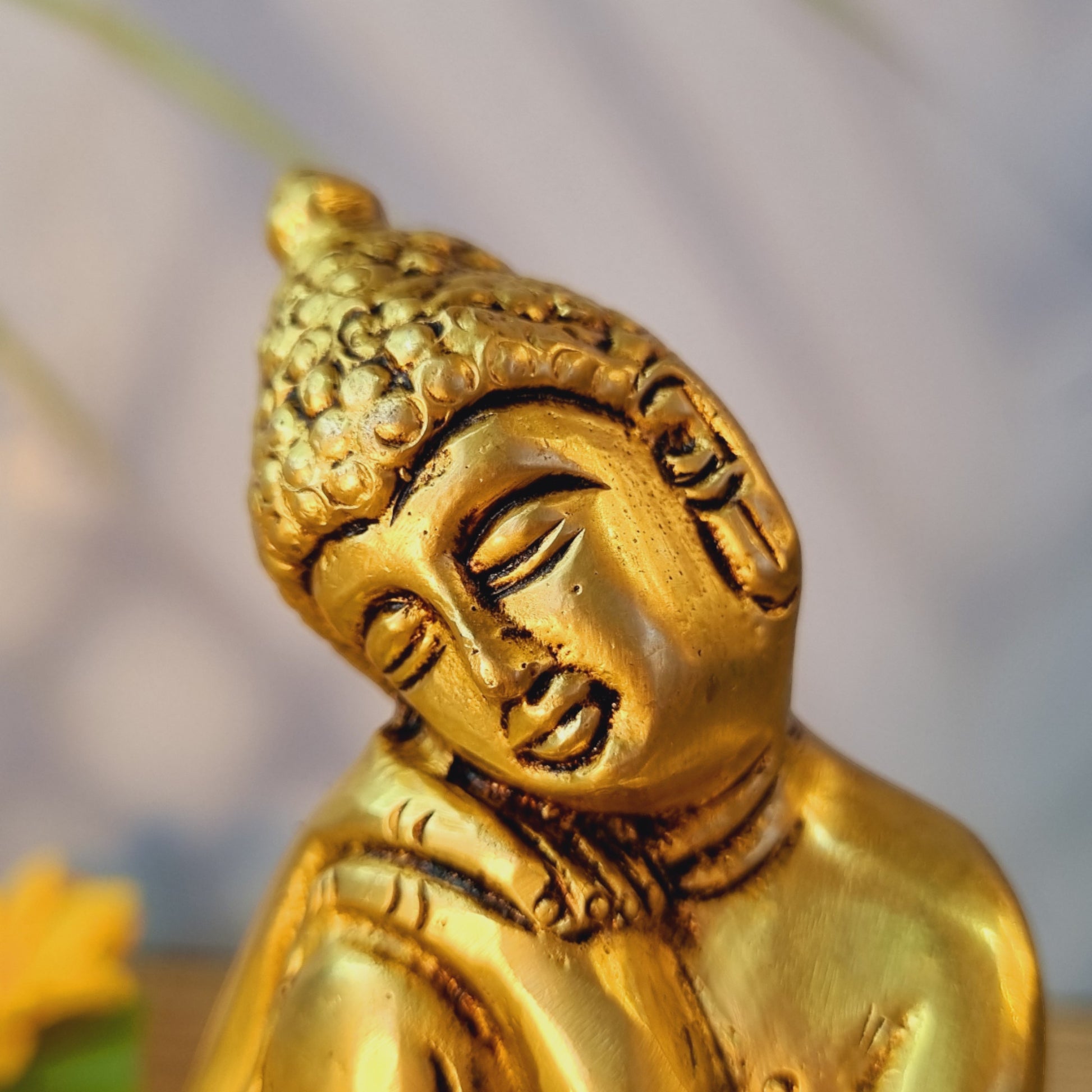 Elegant Brass Buddha Showpiece | Symbol of Peace, Harmony, and Spiritual Enlightenment | Handmade Brass Buddha Idol ( Yellow, 4 inch)