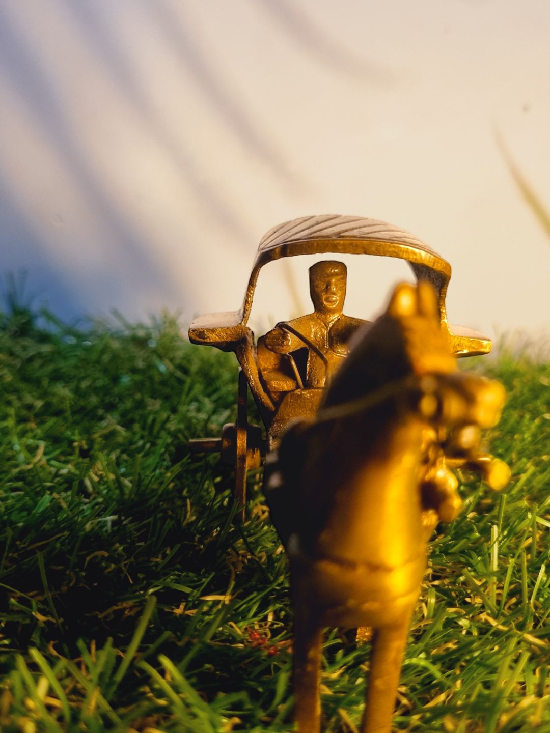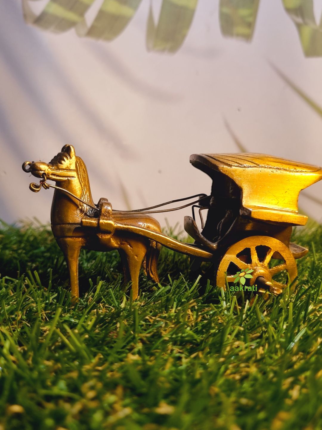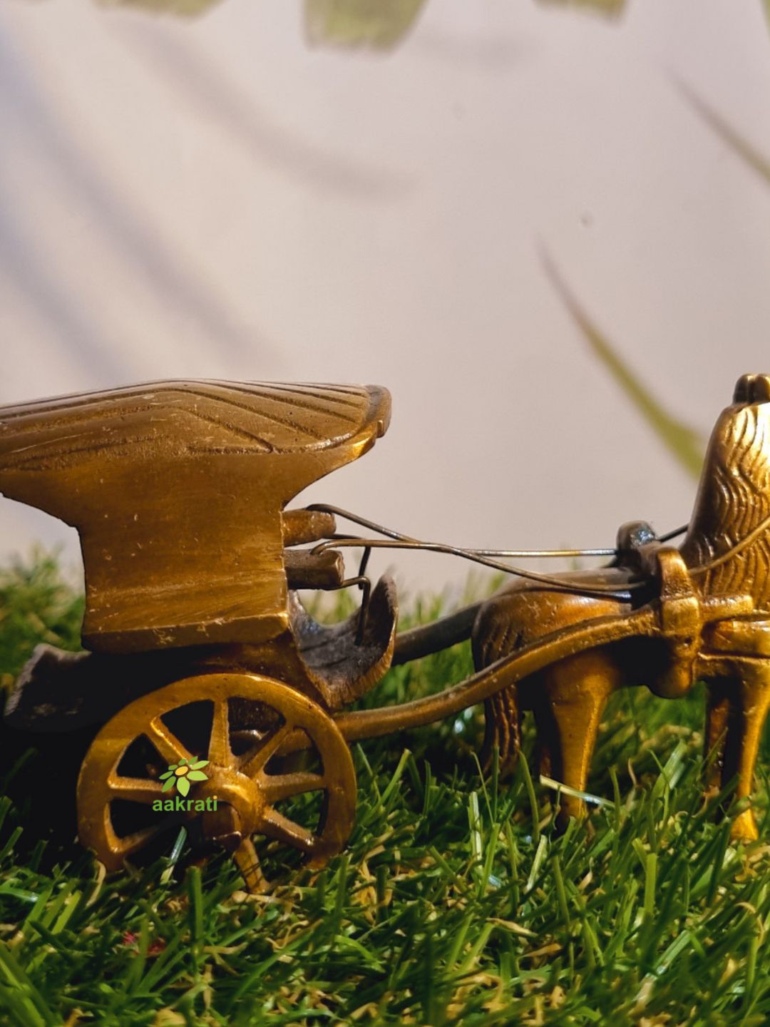 Handcrafted Brass Horse Cart Sculpture | Elegant Showpiece for Home Decoration | ( Brown, 3.5 inch)
