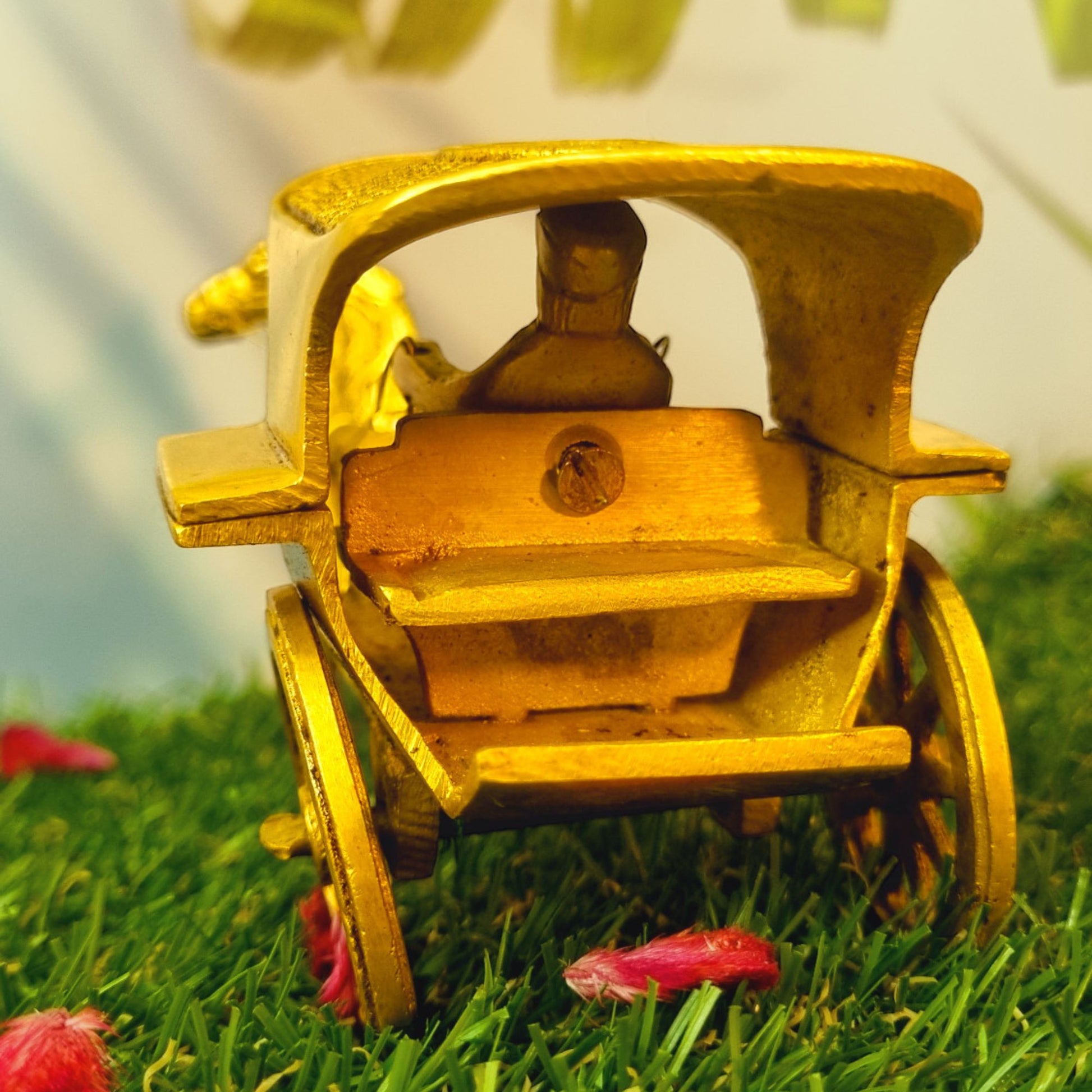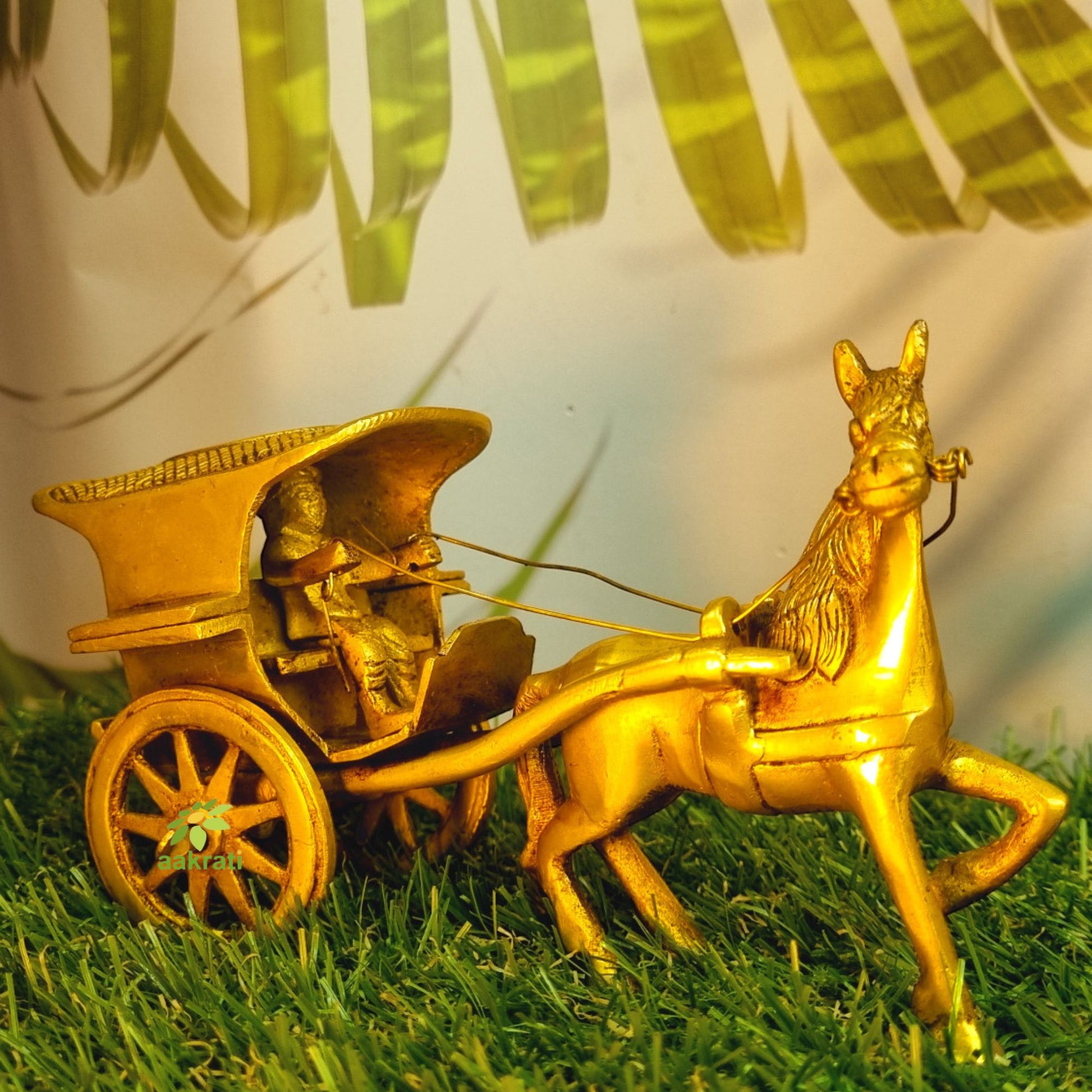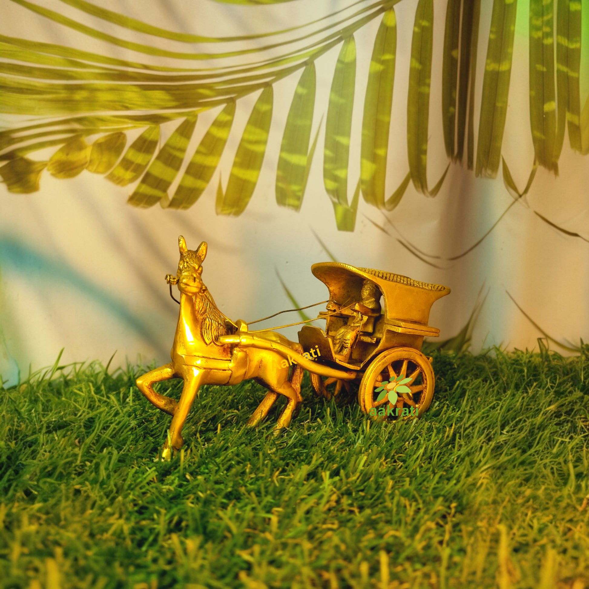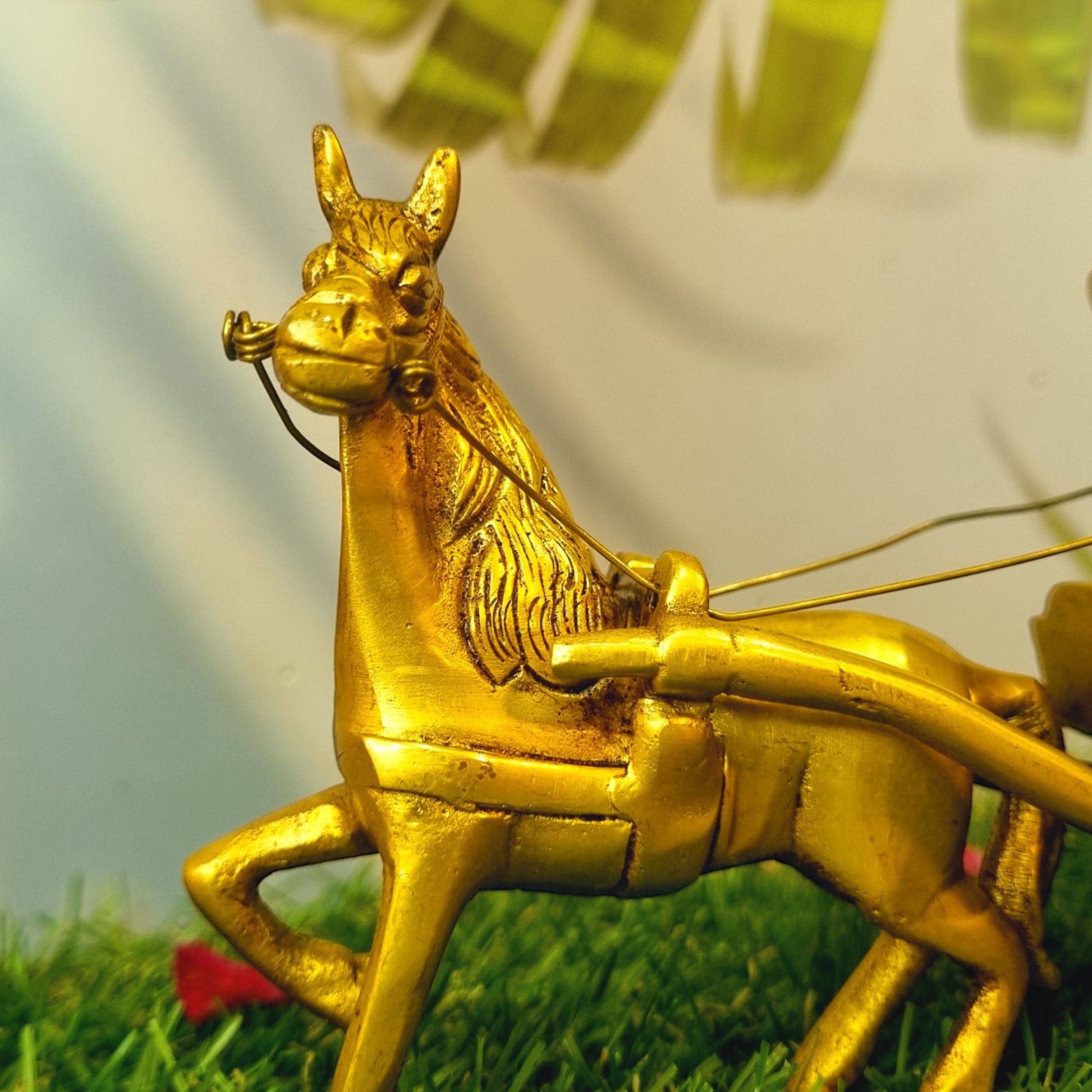 Handcrafted Brass Horse Cart Showpiece | Traditional Home Decor | Brass Bullock Cart Statue ( Yellow, 6 inch)