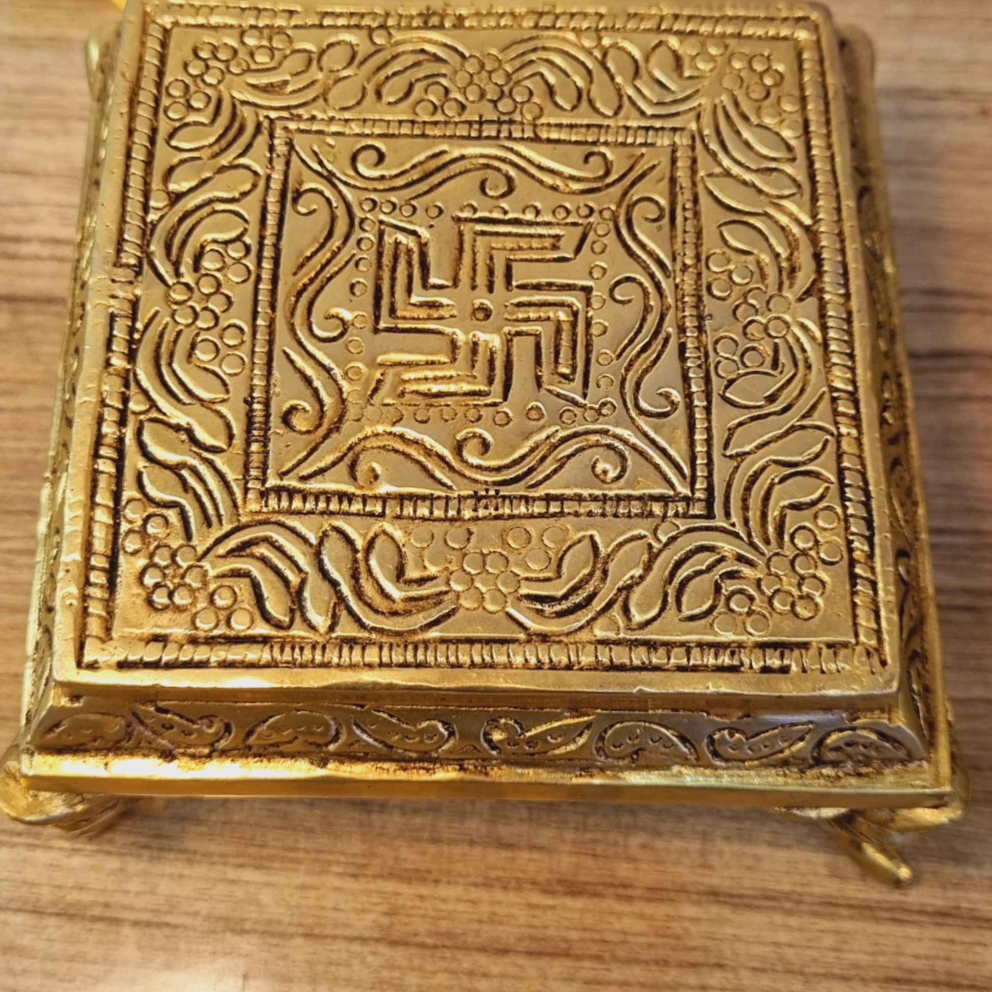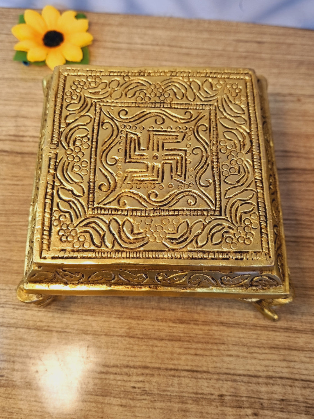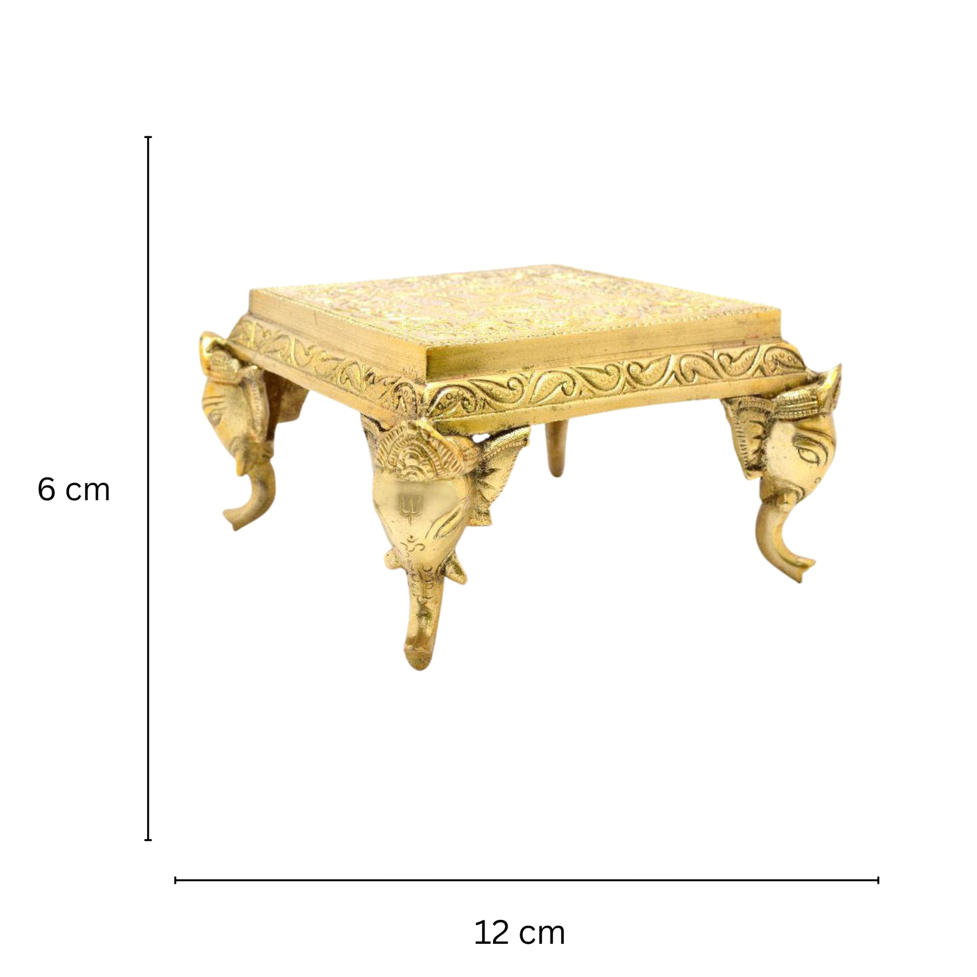 Brass Pooja Chowki | Elegant Handmade Decorative Piece for Worship | Traditional Brass Chowki ( Yellow, 4.5 inch)