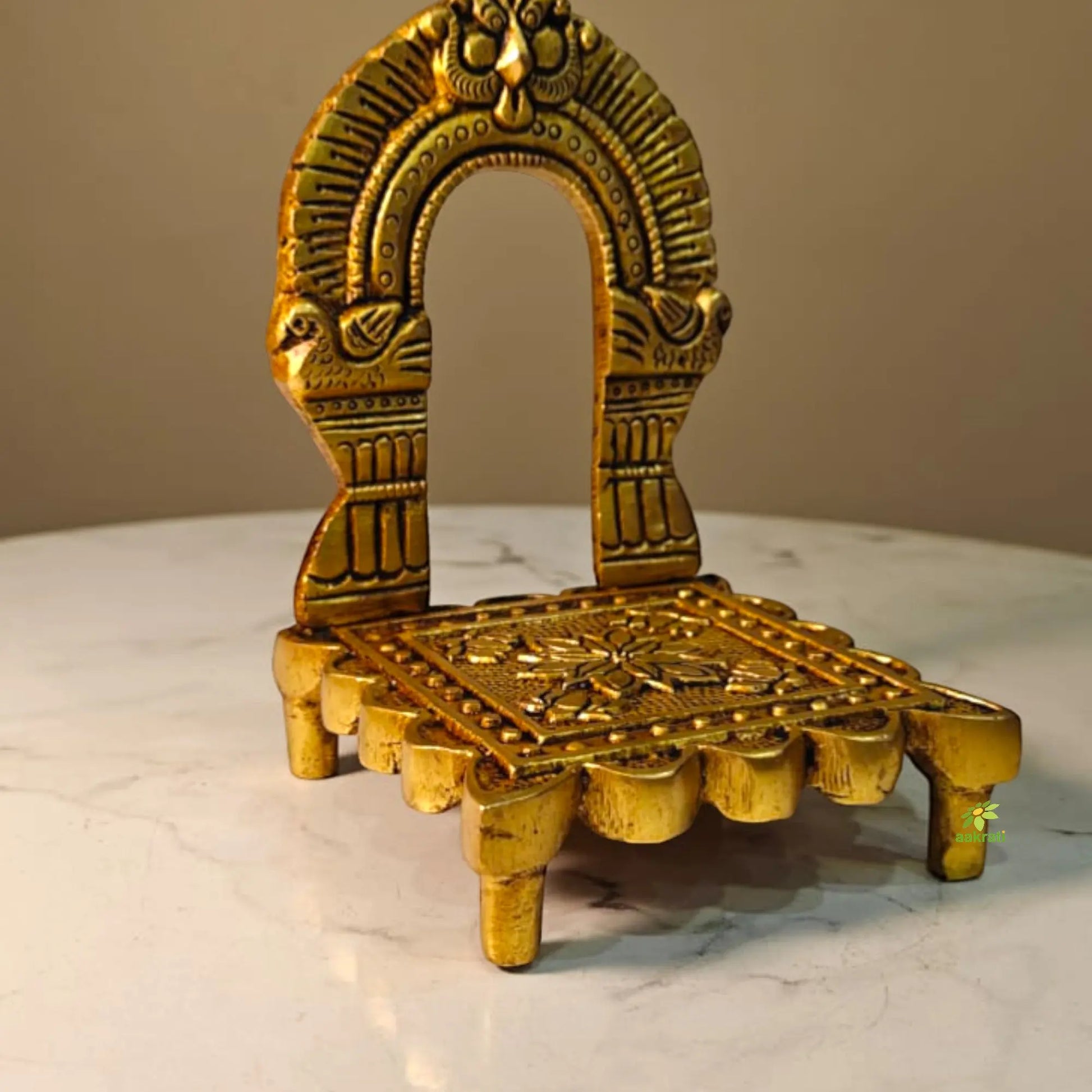 Brass Singhasan for God Idol | Decorative God Seat for Temple & Gifting | Traditional Brass God Singhasan (Yellow, 5 Inches)