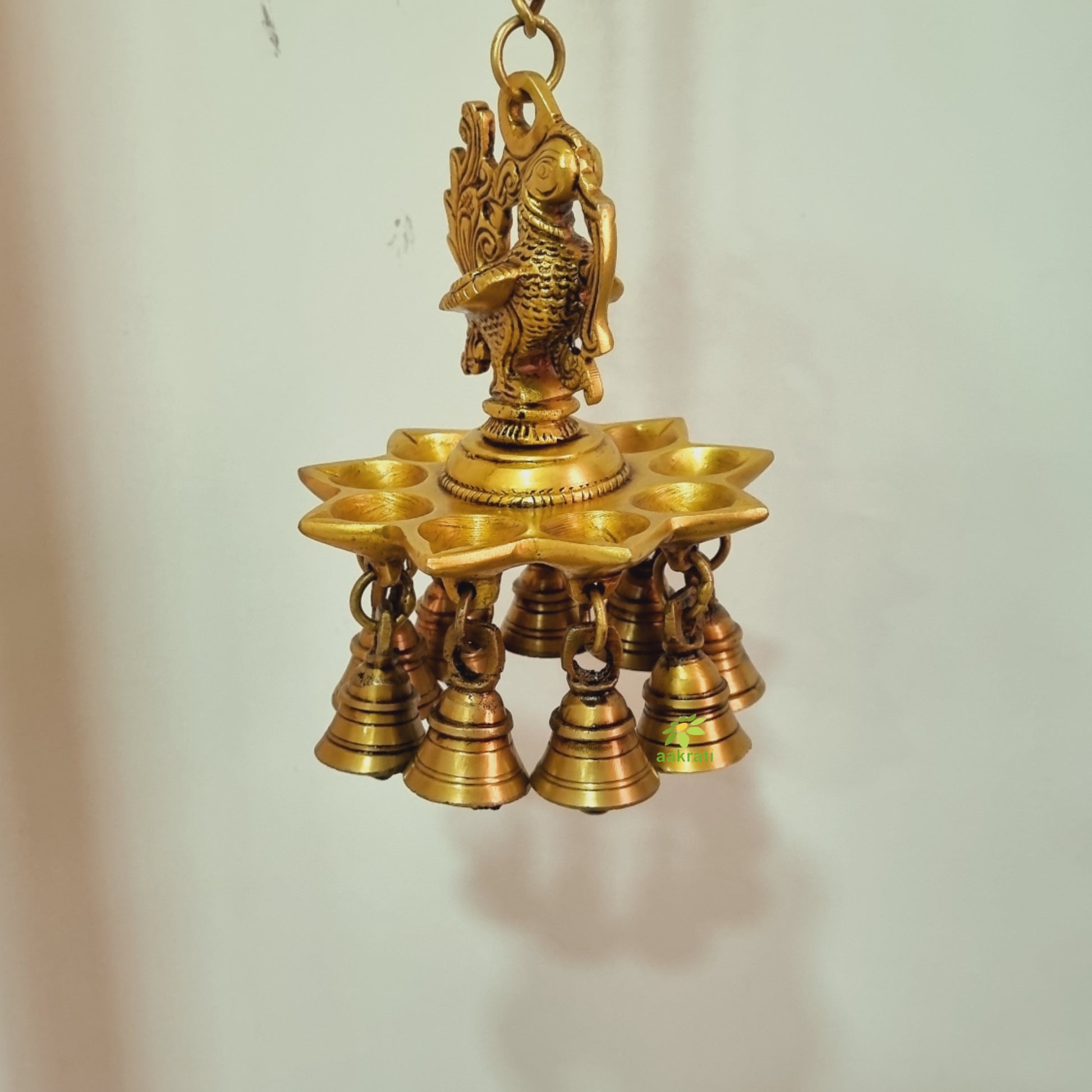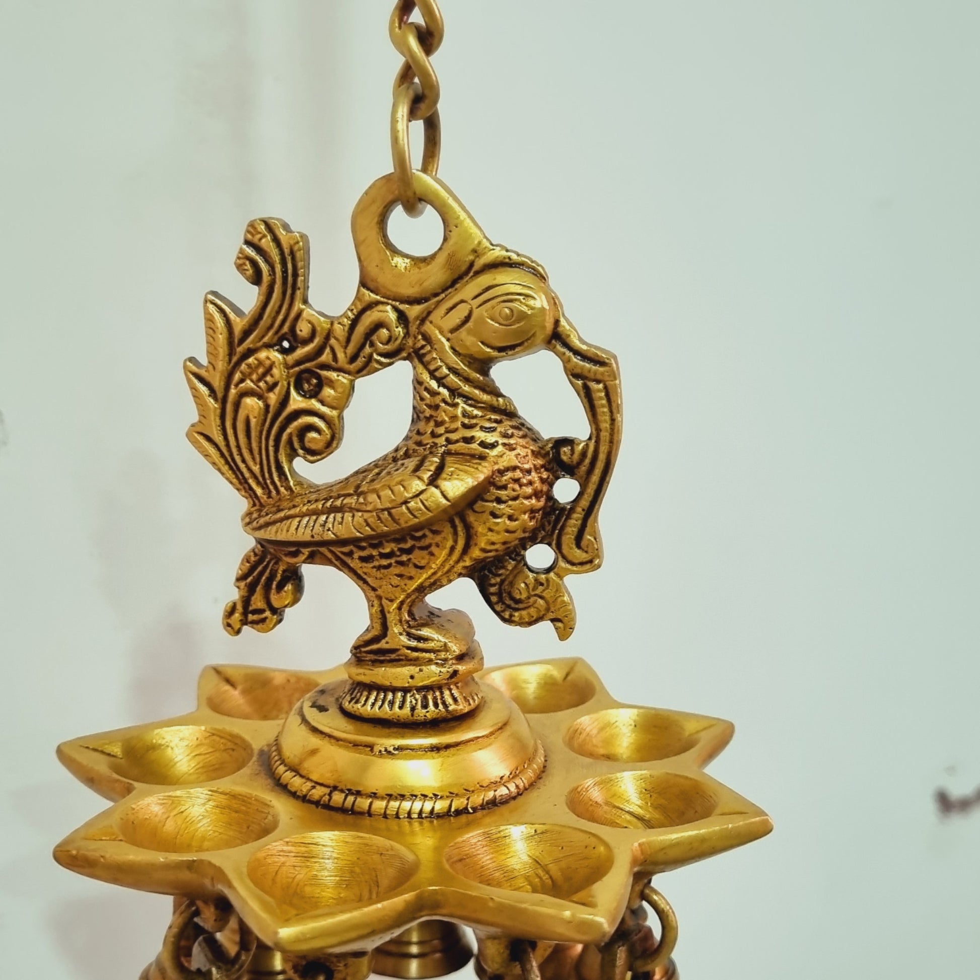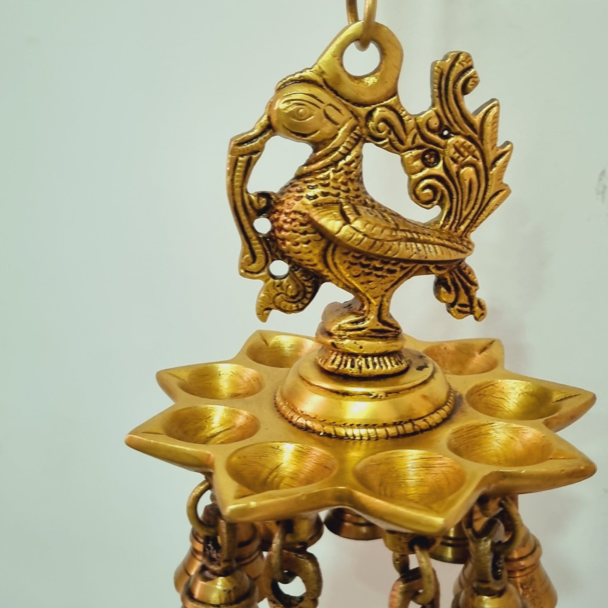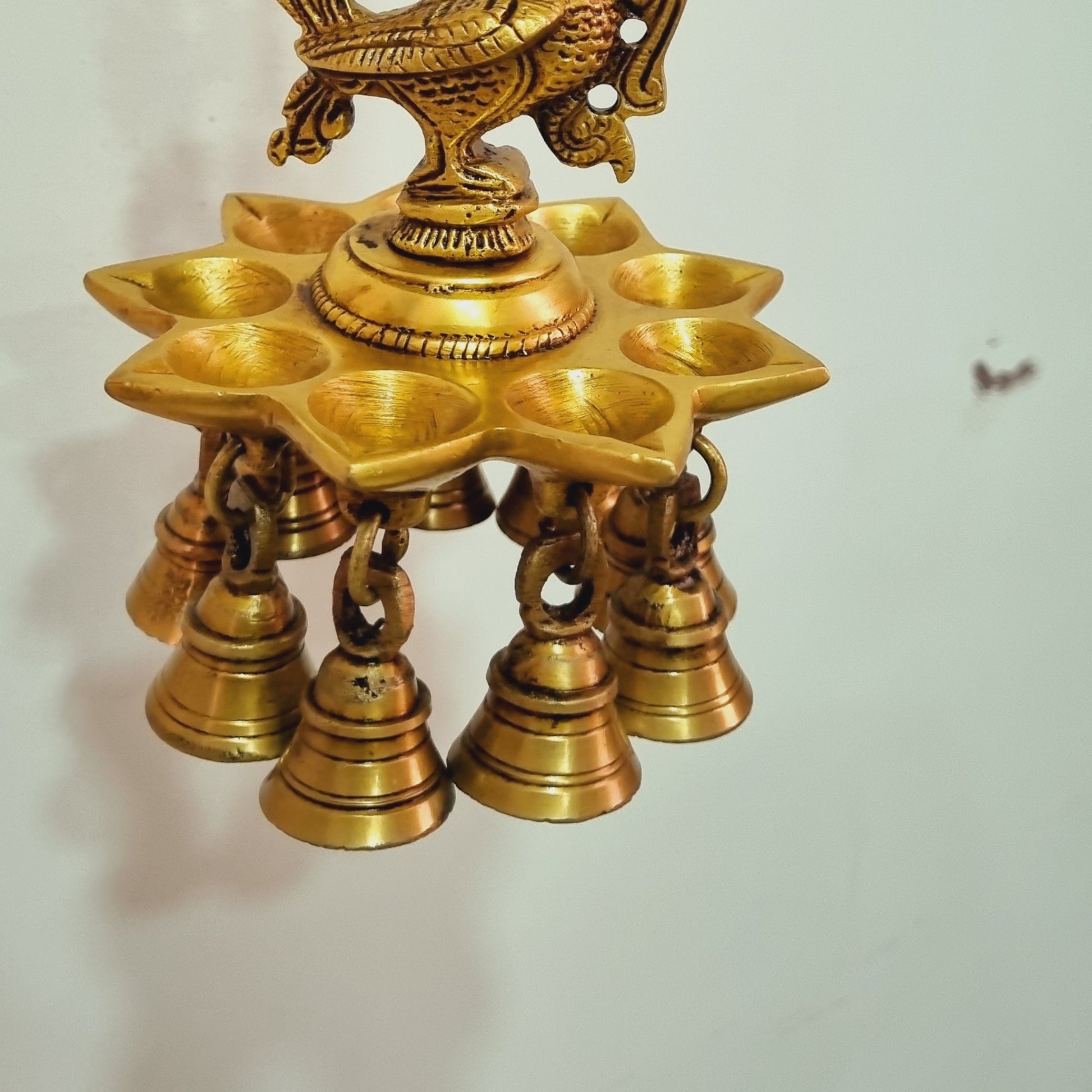 Brass Wall Hanging Diya in Bird Design | Traditional Diwali and Pooja Room Decoration | Brass Wall Diya ( Yellow, 22 inch)