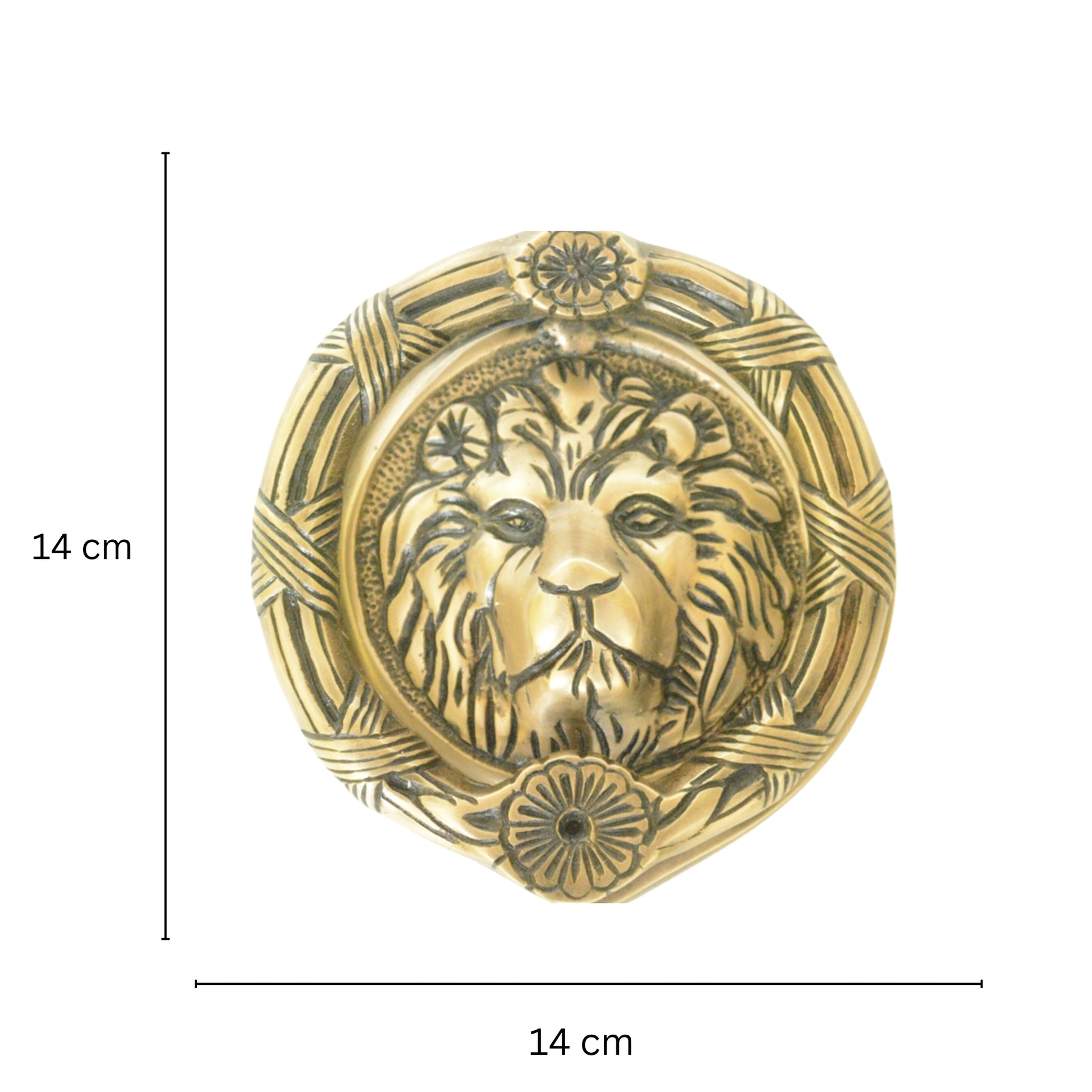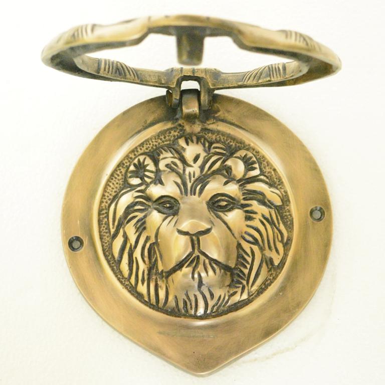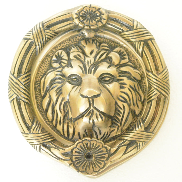 Lion Face Round Shape Door Knocker - Solid Brass Made Door Hardware - Antique Look
