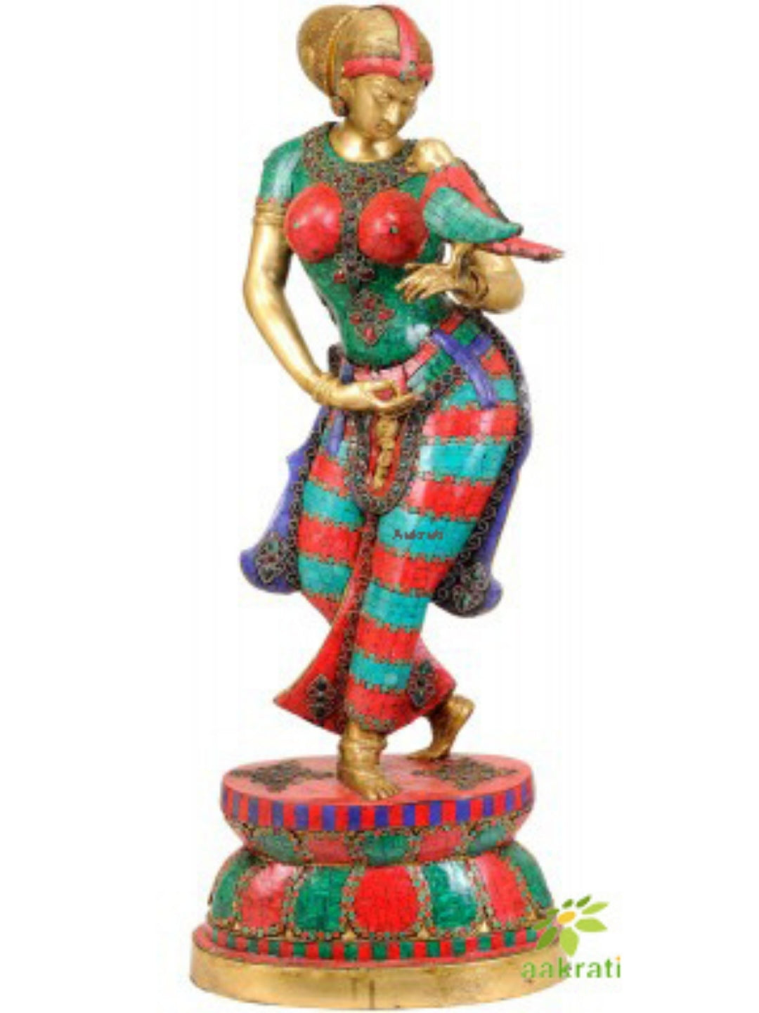 Decorative Lady Figure Brass Made Stone work Garden Sculpture