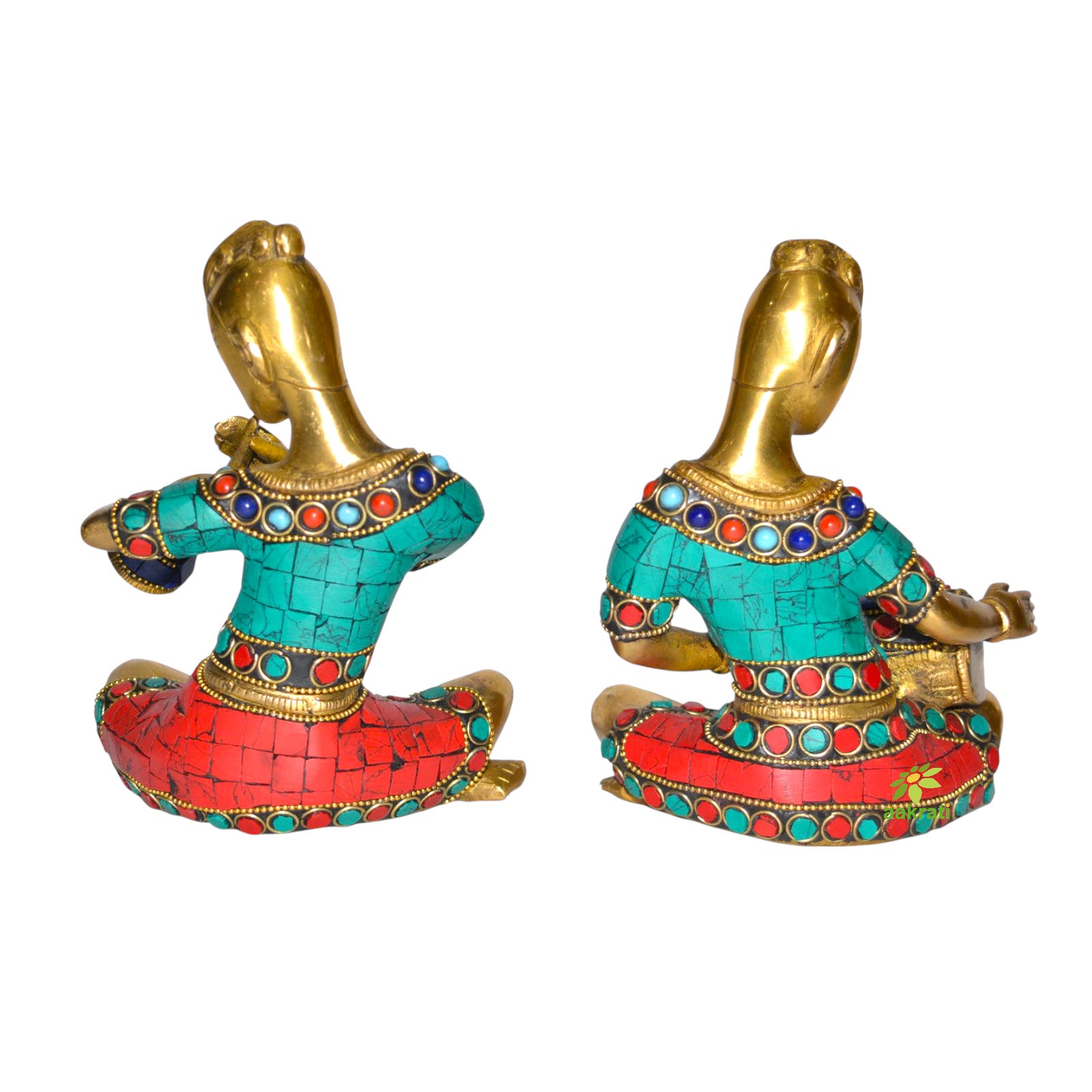 Home Decor Indian Art Brass Musician Figurine with stone work