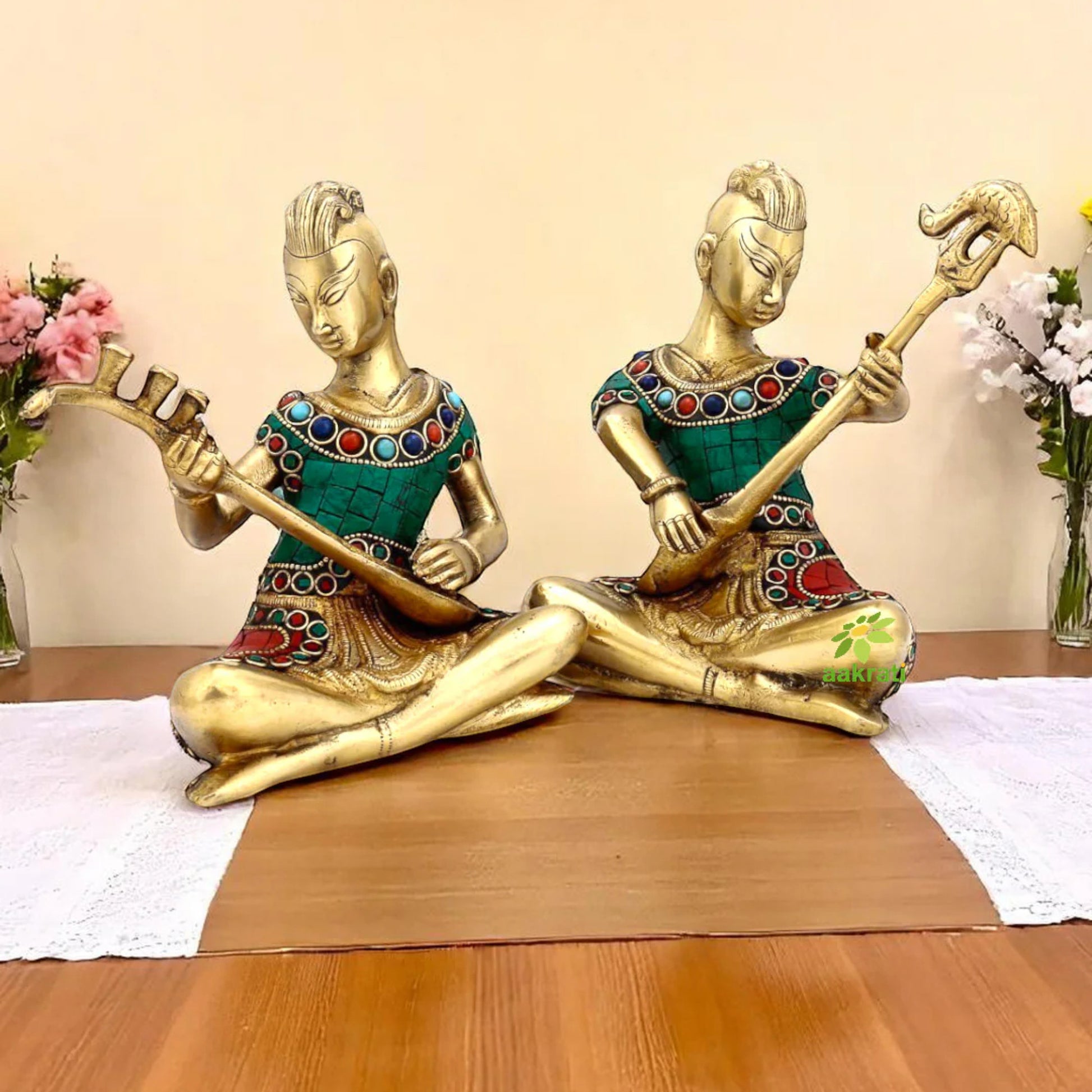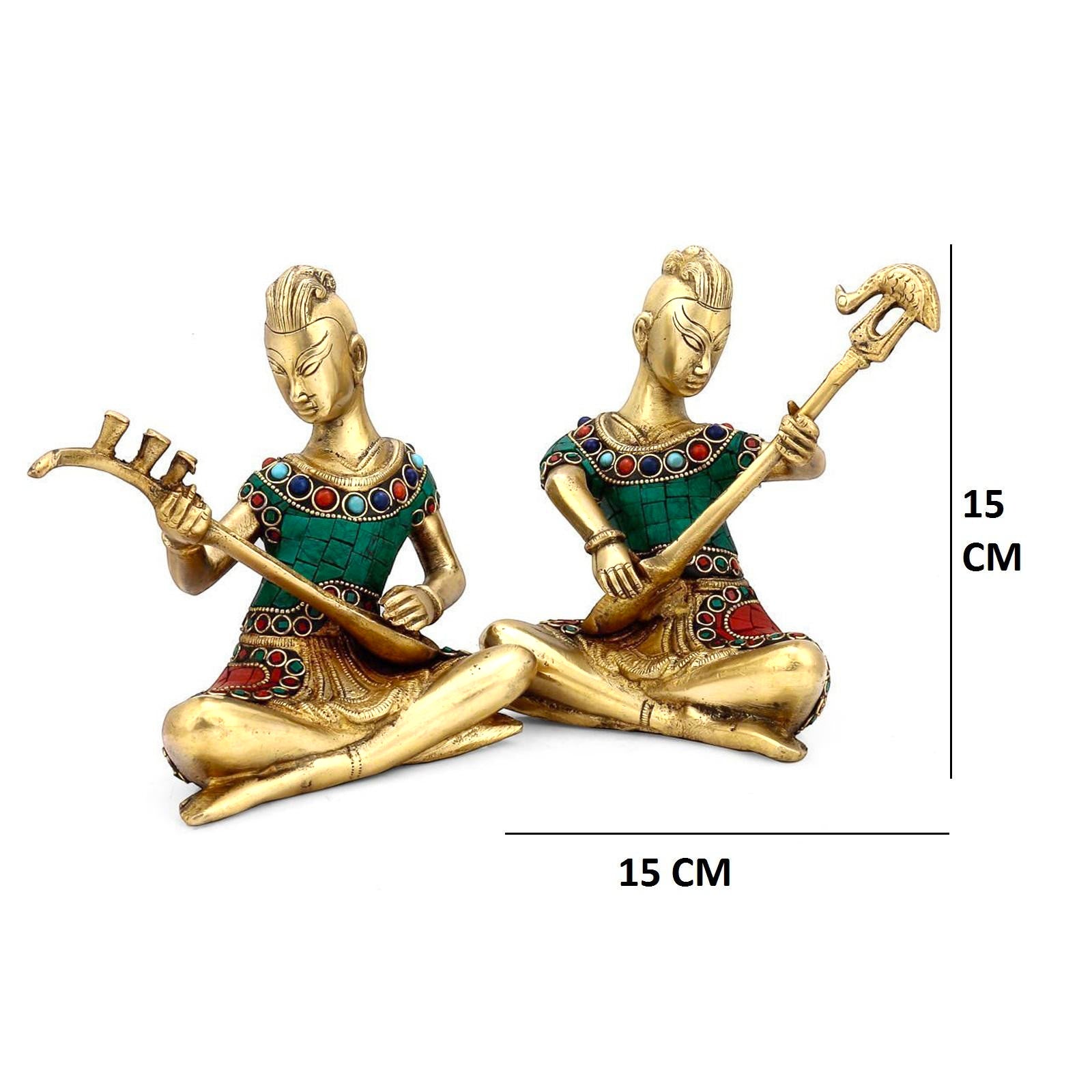 Turquoise Tribal Musician Figurine With Stone Work Set of 2 Pcs