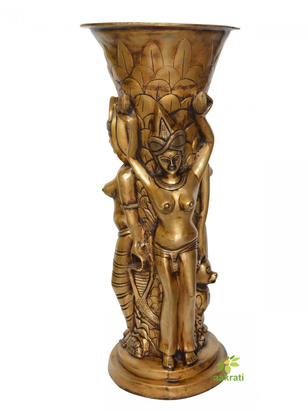 - Highlight the use of high-quality brass that ensures durability and longevity. Emphasize that it doesn't tarnish easily and retains its shine for a long time, making it suitable for religious rituals and decorations.