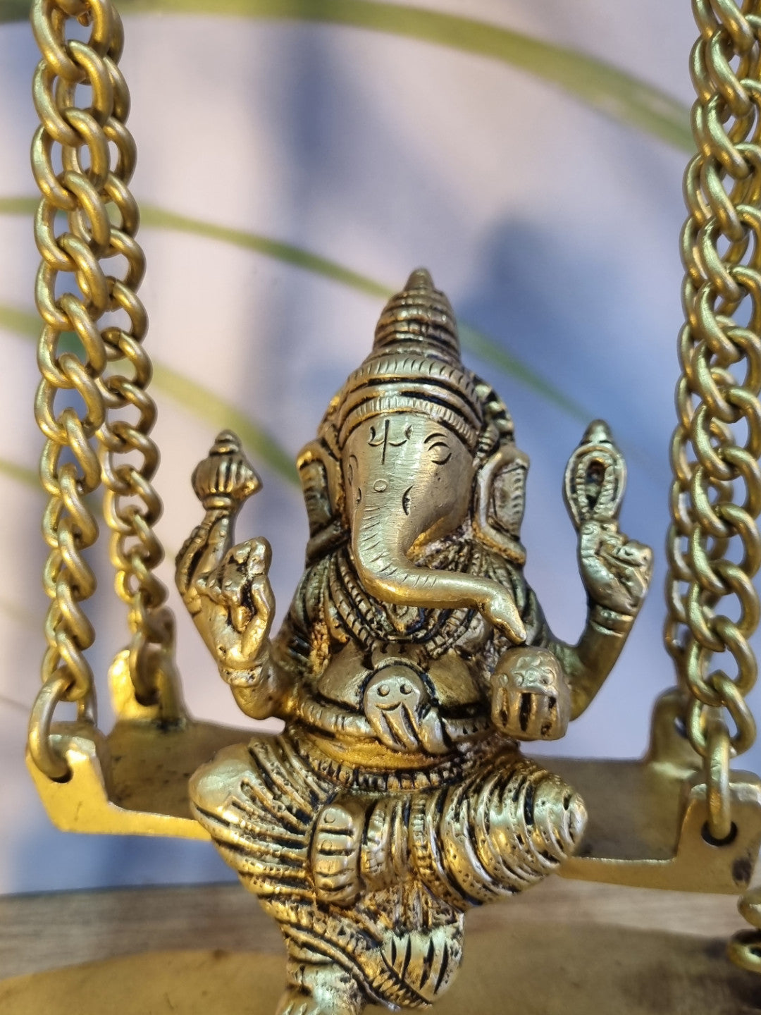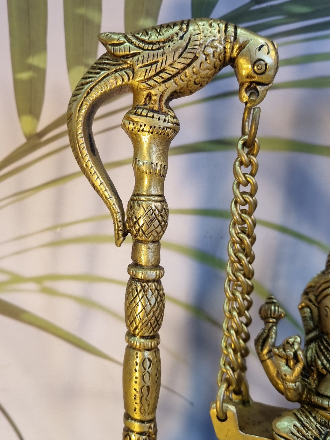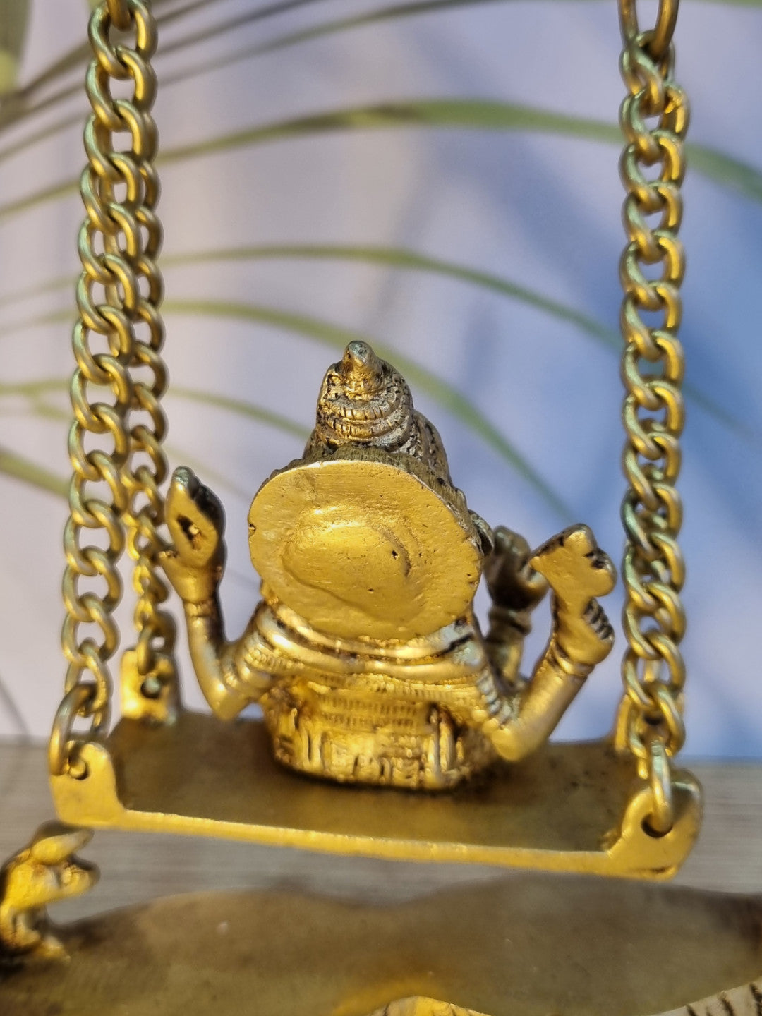 Brass Ganesha Idol on Swing | Perfect Home Decor for Prosperity and Peace | Handmade Decorative Ganesha Murti ( Yellow, 8 inch)