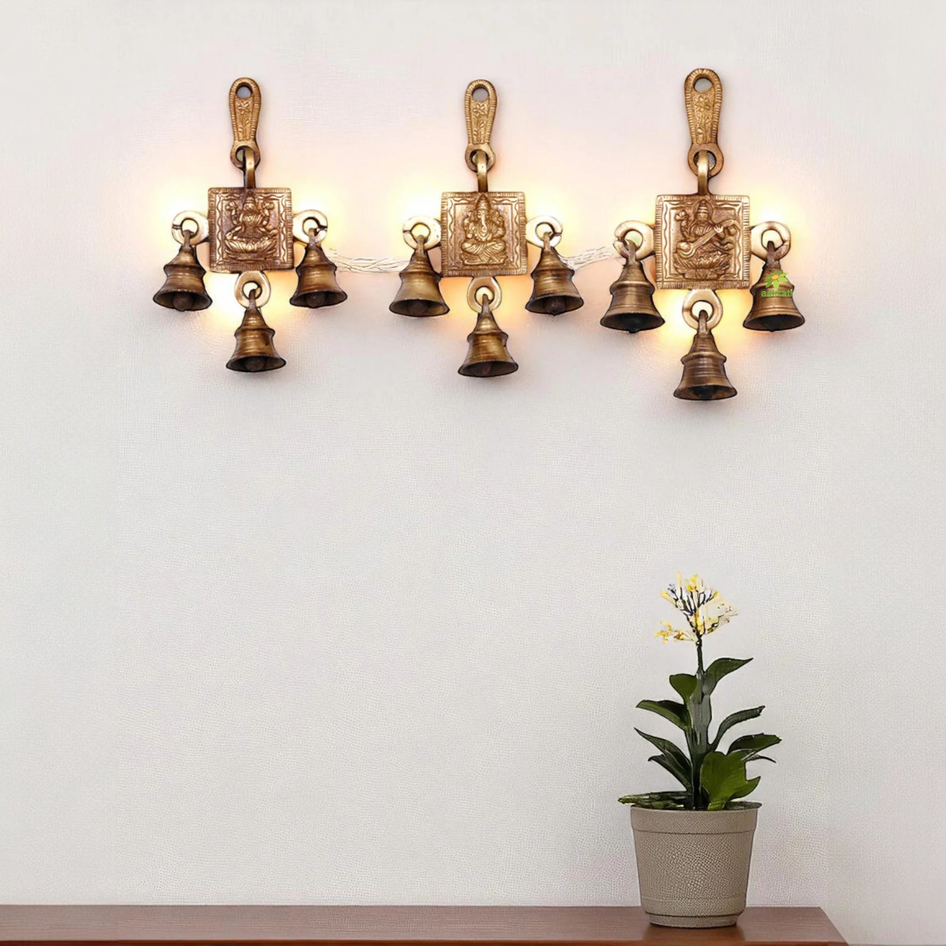 Set of Laxmi Ganesha Saraswati Single Hanging Bells