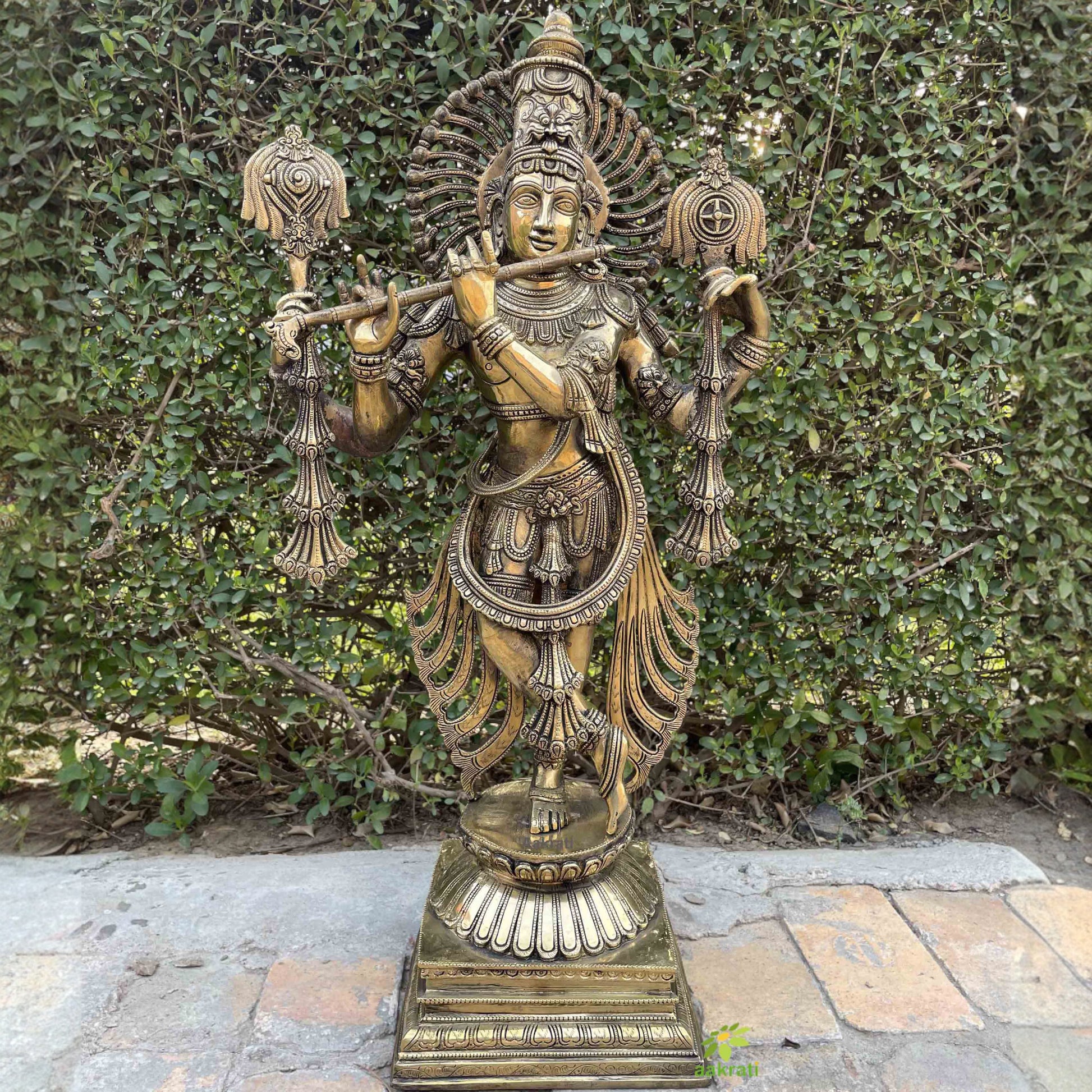 Krishna Statue in Brass, 61CM Big Large Size Krishna Brass Idol, Krishna Bhagwan Home Temple Puja, Garden Decor Idol, Hindu Religious Home