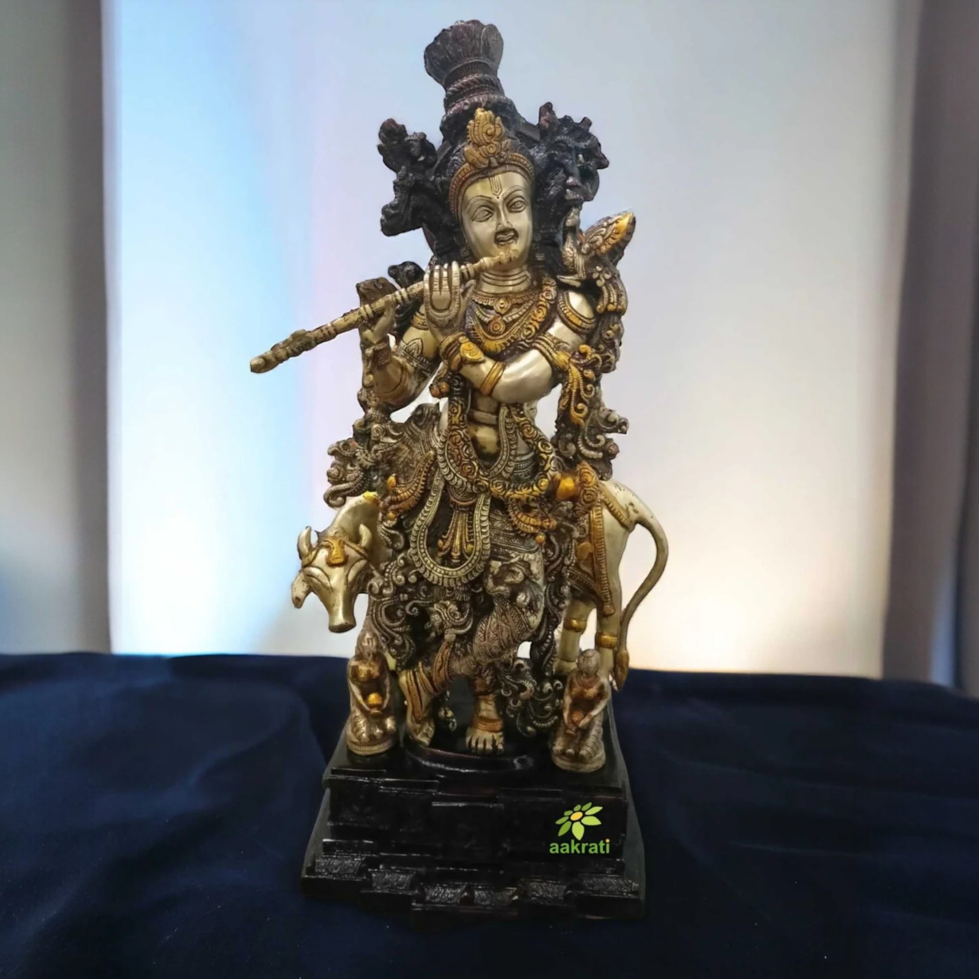 Magnificent Brass Large Lord Krishna with cow 28 inch Tall Home temple statue Wedding Gift Hindu God