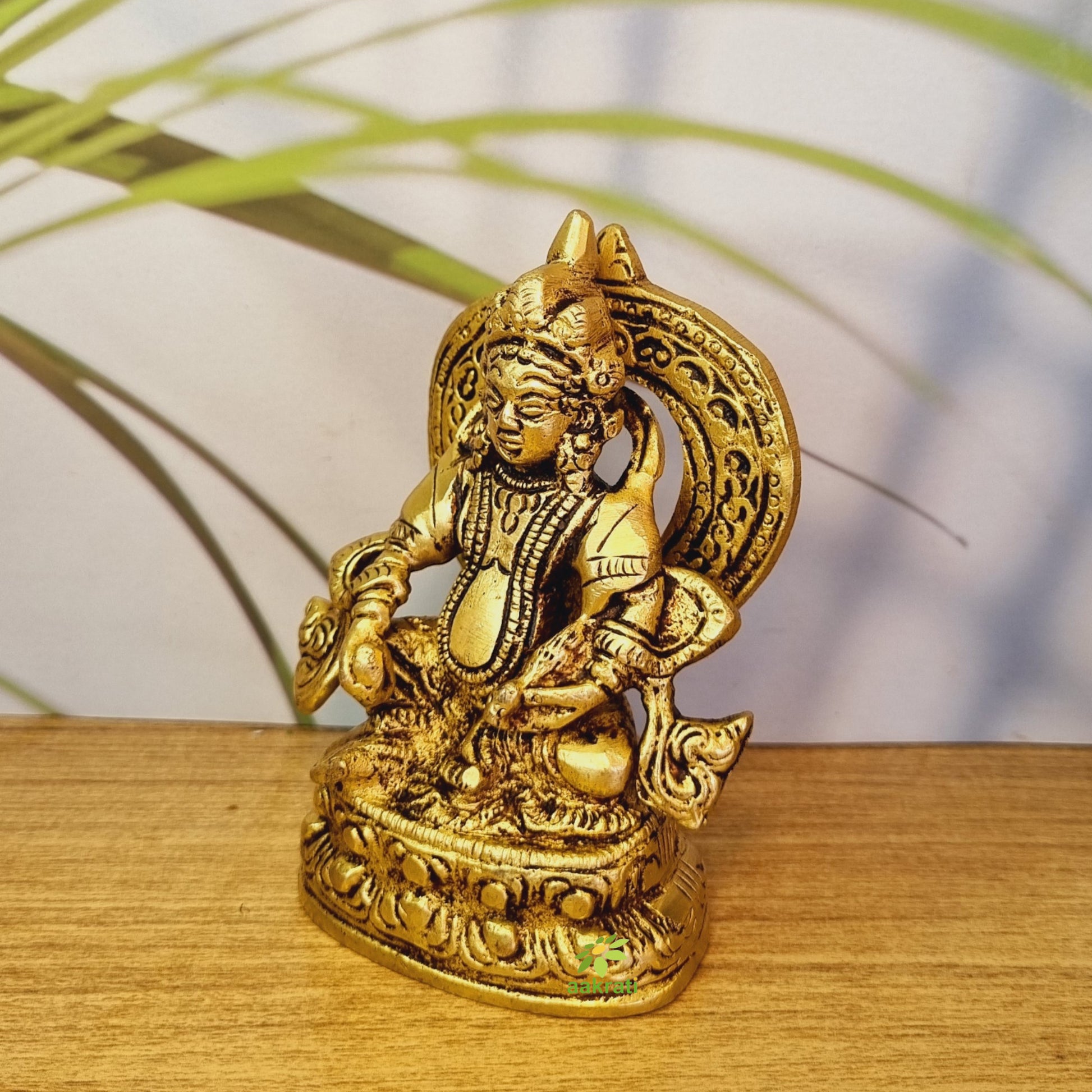 Premium Brass Kuber Idol | Decorative Idol for Bringing Wealth and Good Fortune | Handcrafted Brass Kuber Murti ( Yellow, 3.5 inch)
