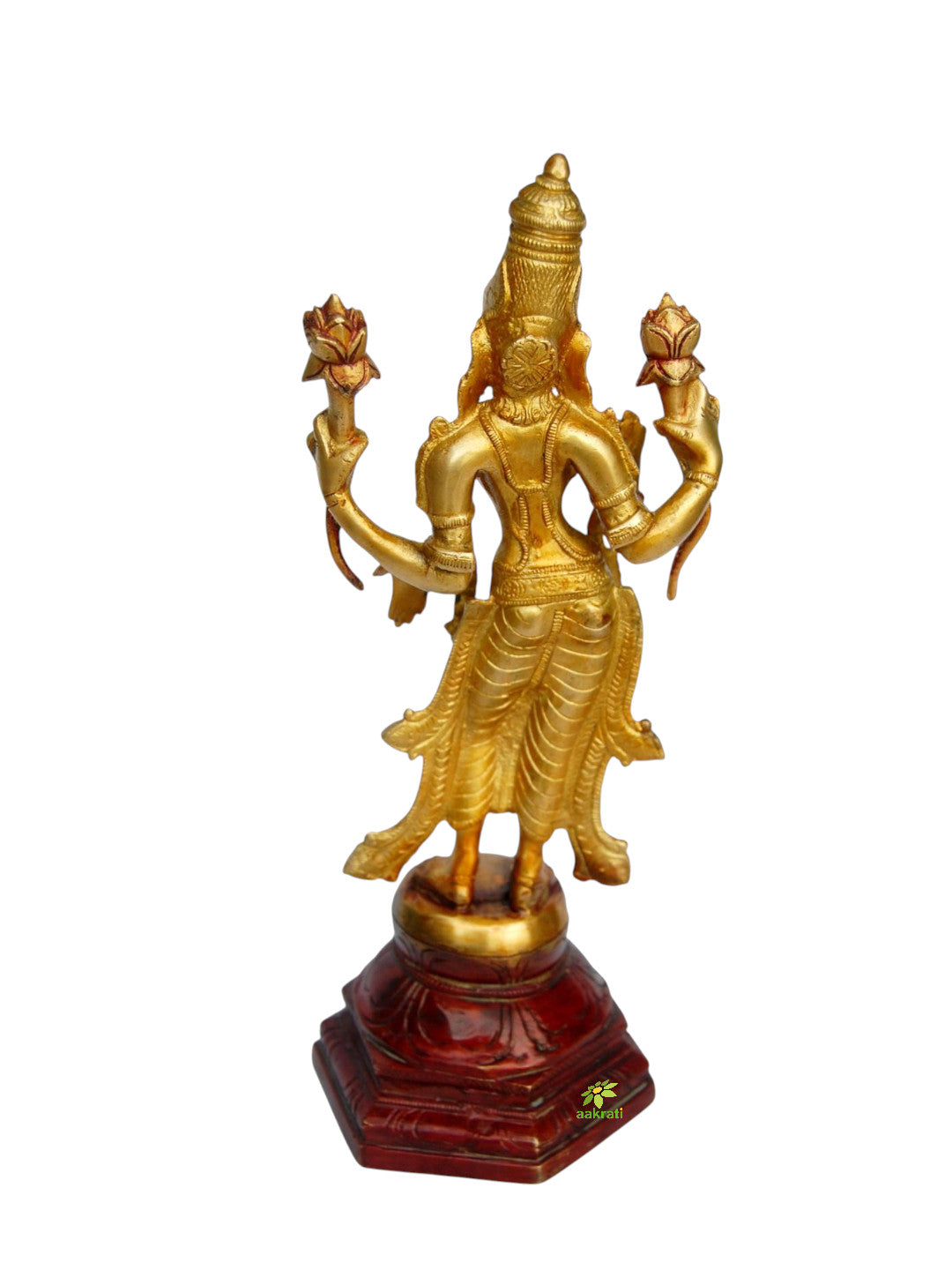 Brass Goddess Lakshmi Statue | Elegant Home Temple Decor for Wealth and Blessings | Antique Finish Brass Lakshmi Idol ( Yellow, 12 inch)