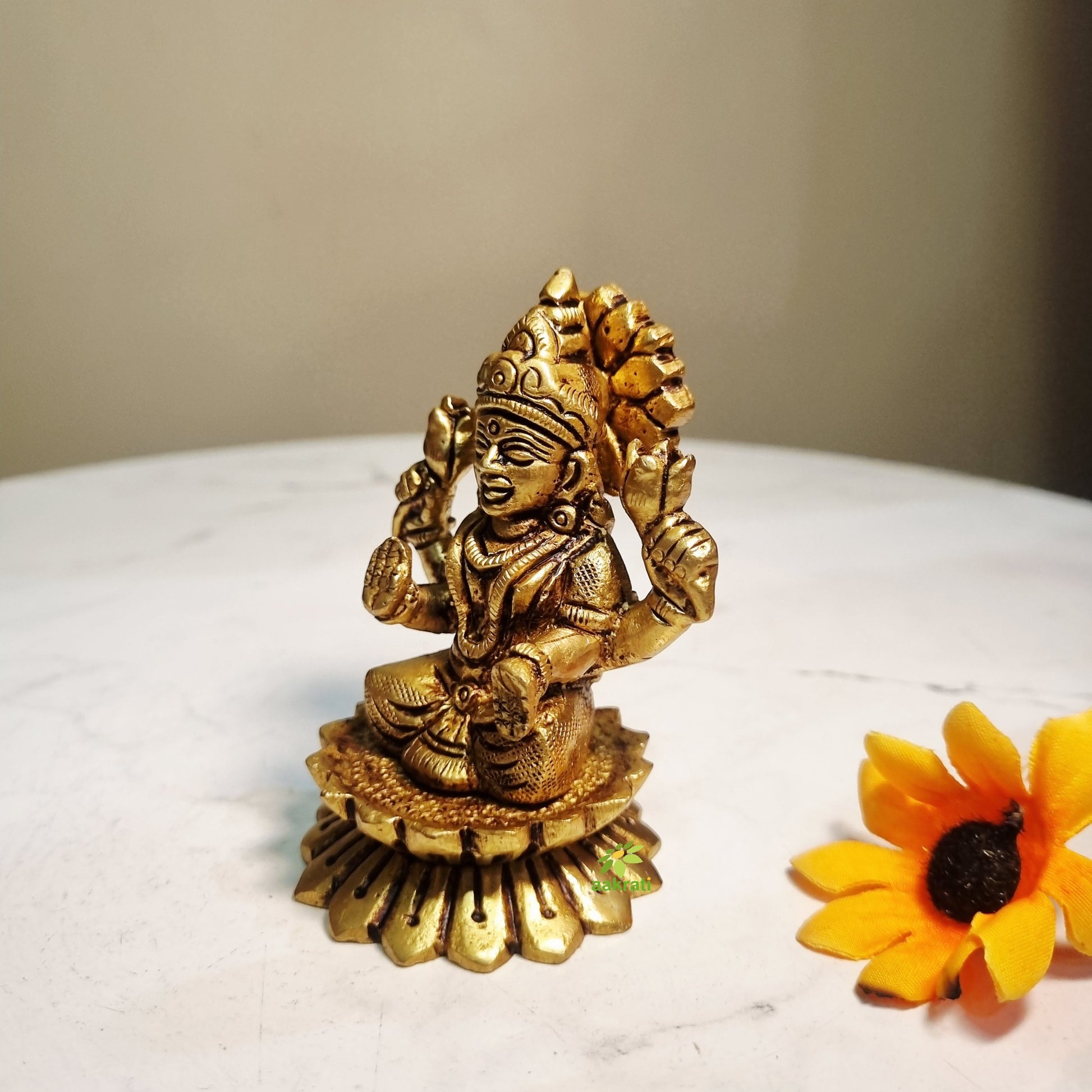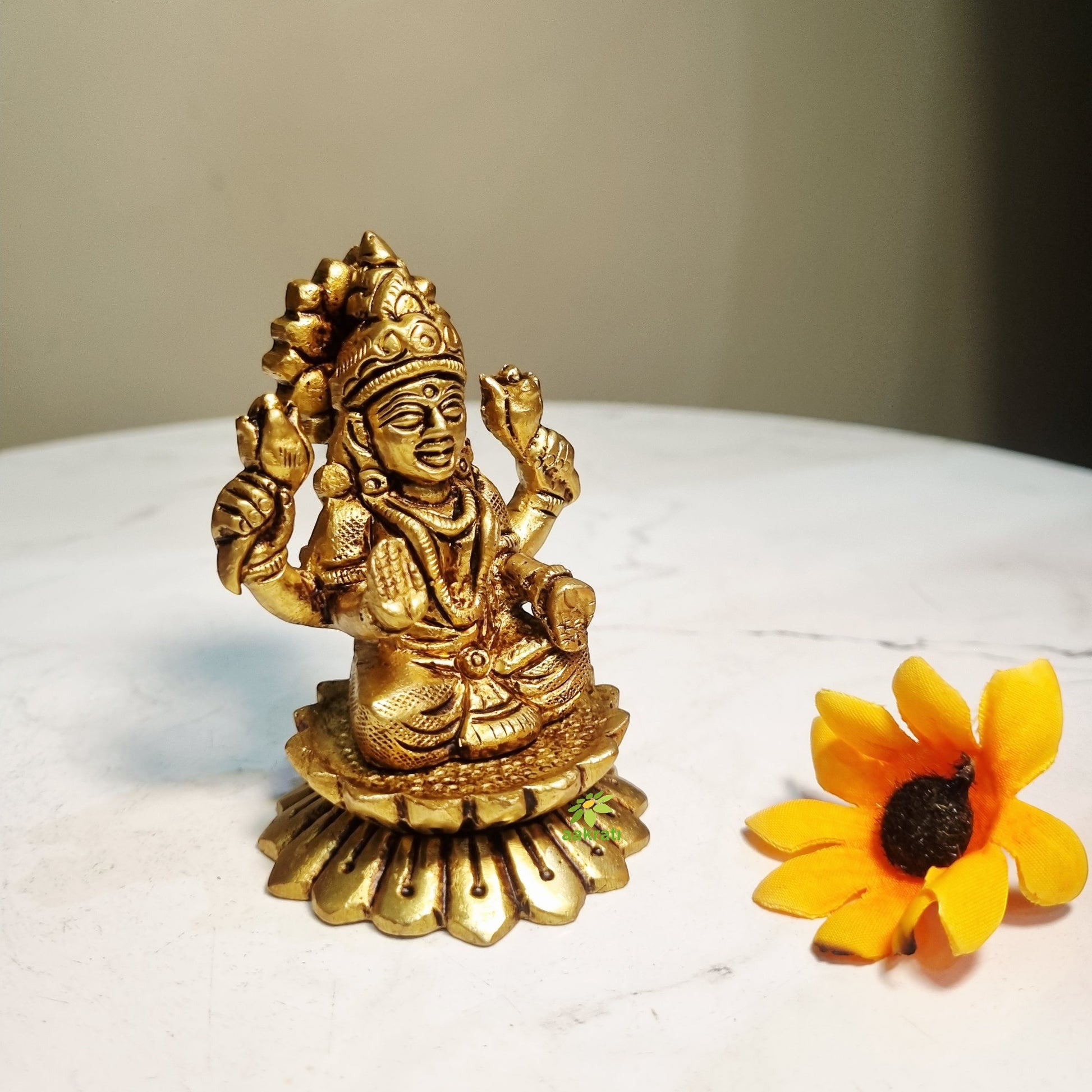 Visually appealing decorative showpiece , this statue from the house of Aakrati, has a fabulous finish and it will certainly add grace to your puja room as well as your house. Made of high quality brass, it ensures durability and is easy to clean. It serves for both decorative and prayer purpose. Moreover, this is a great gifting option for any occasion.