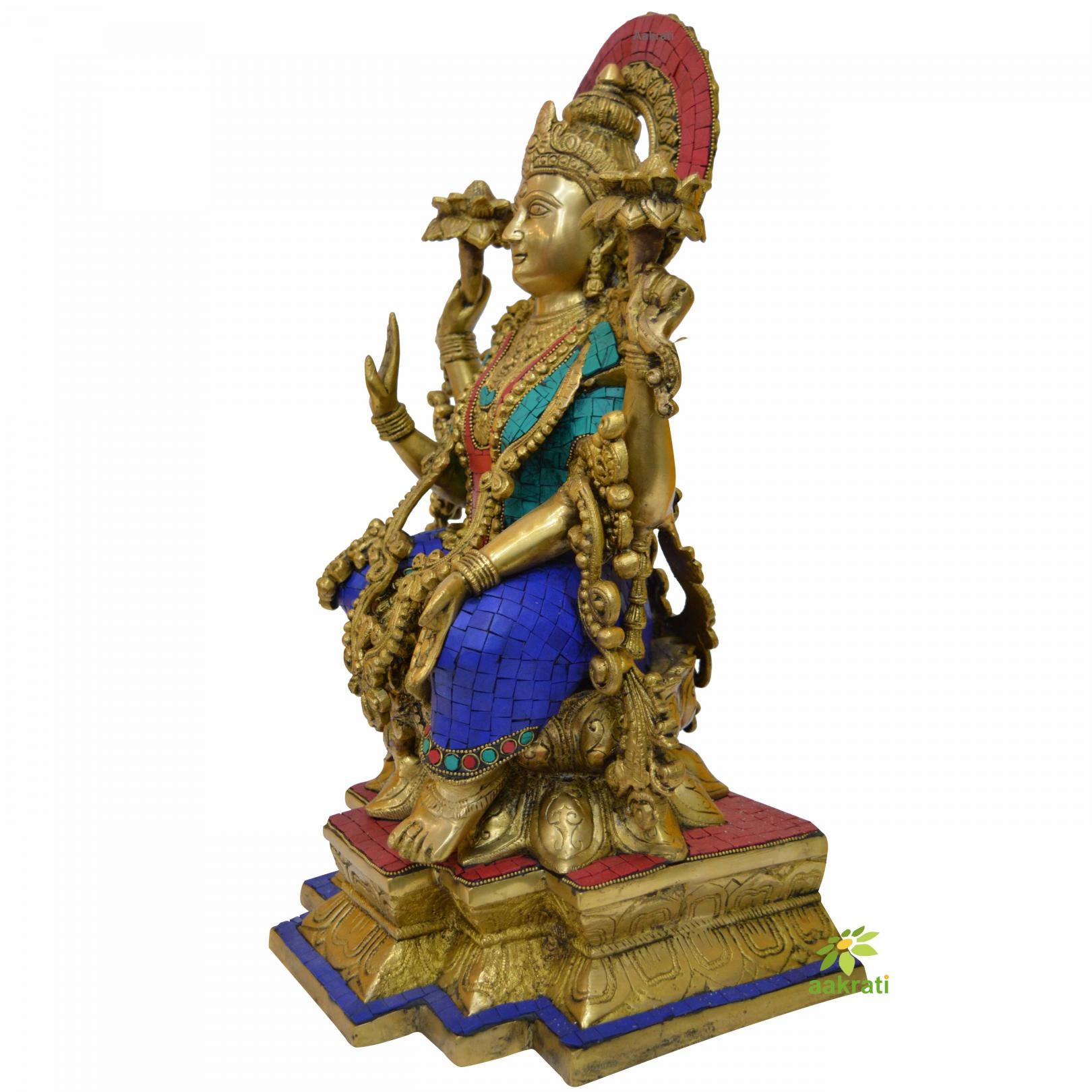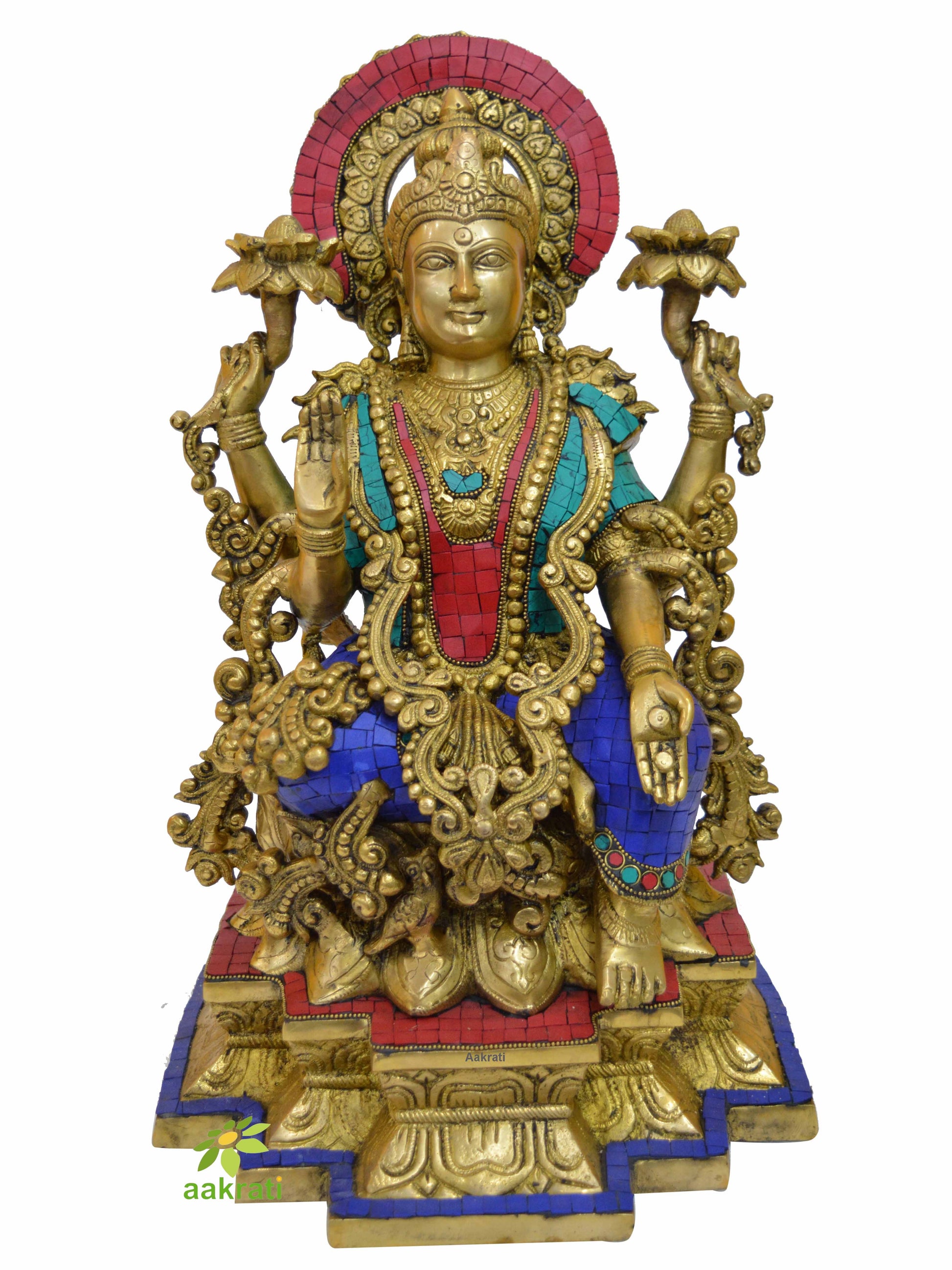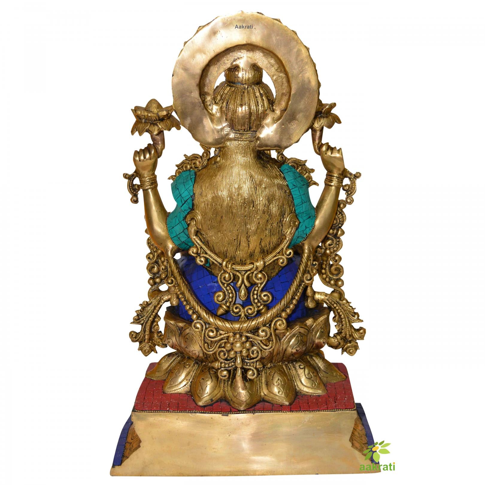 Lakshmi Statue 18 INCH Goddess Lakshmi Idol on Louts, Sitting Lakshmi sculpture, Hindu Goddess Figurines, Home & Temple Decor, Handmade gifts