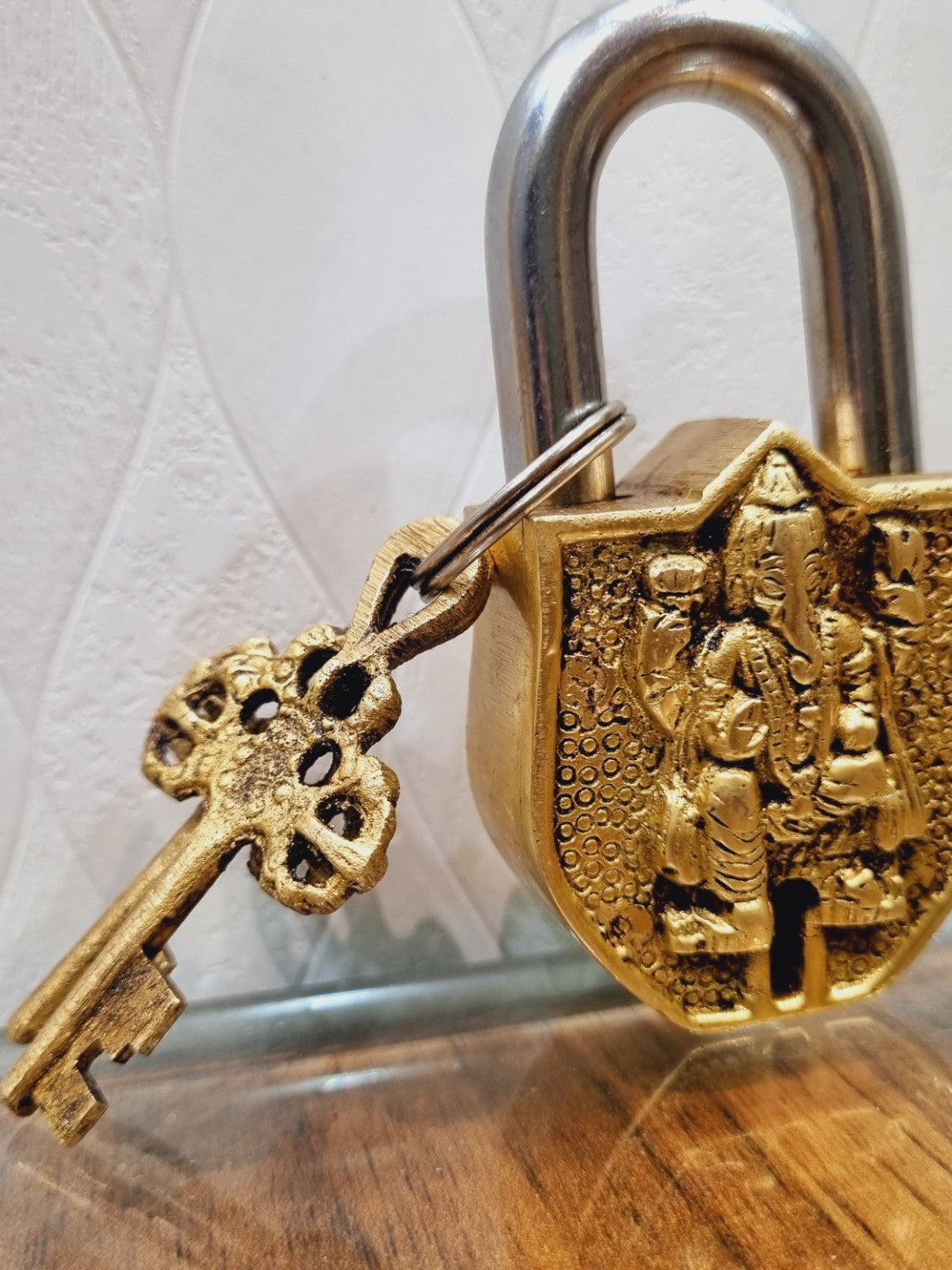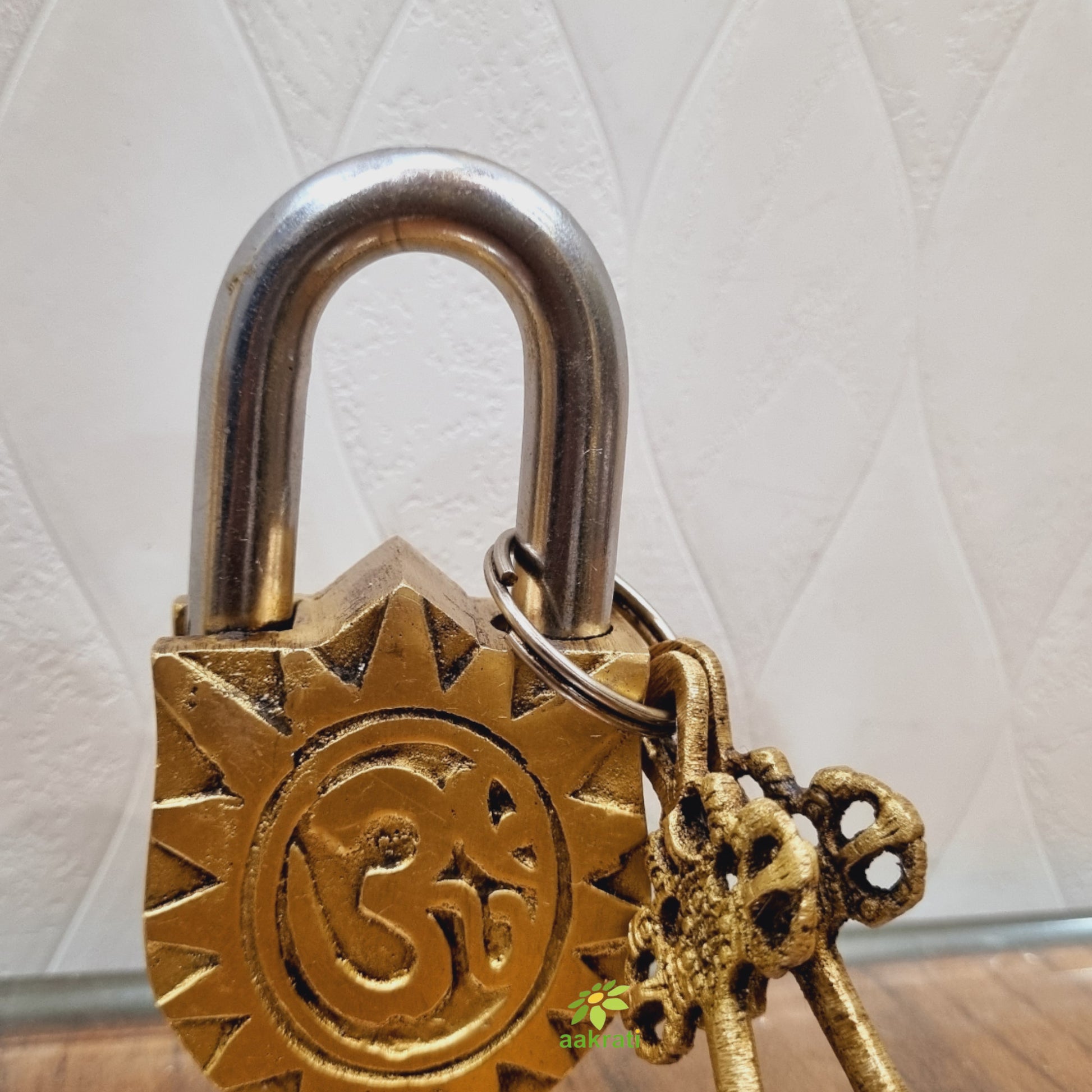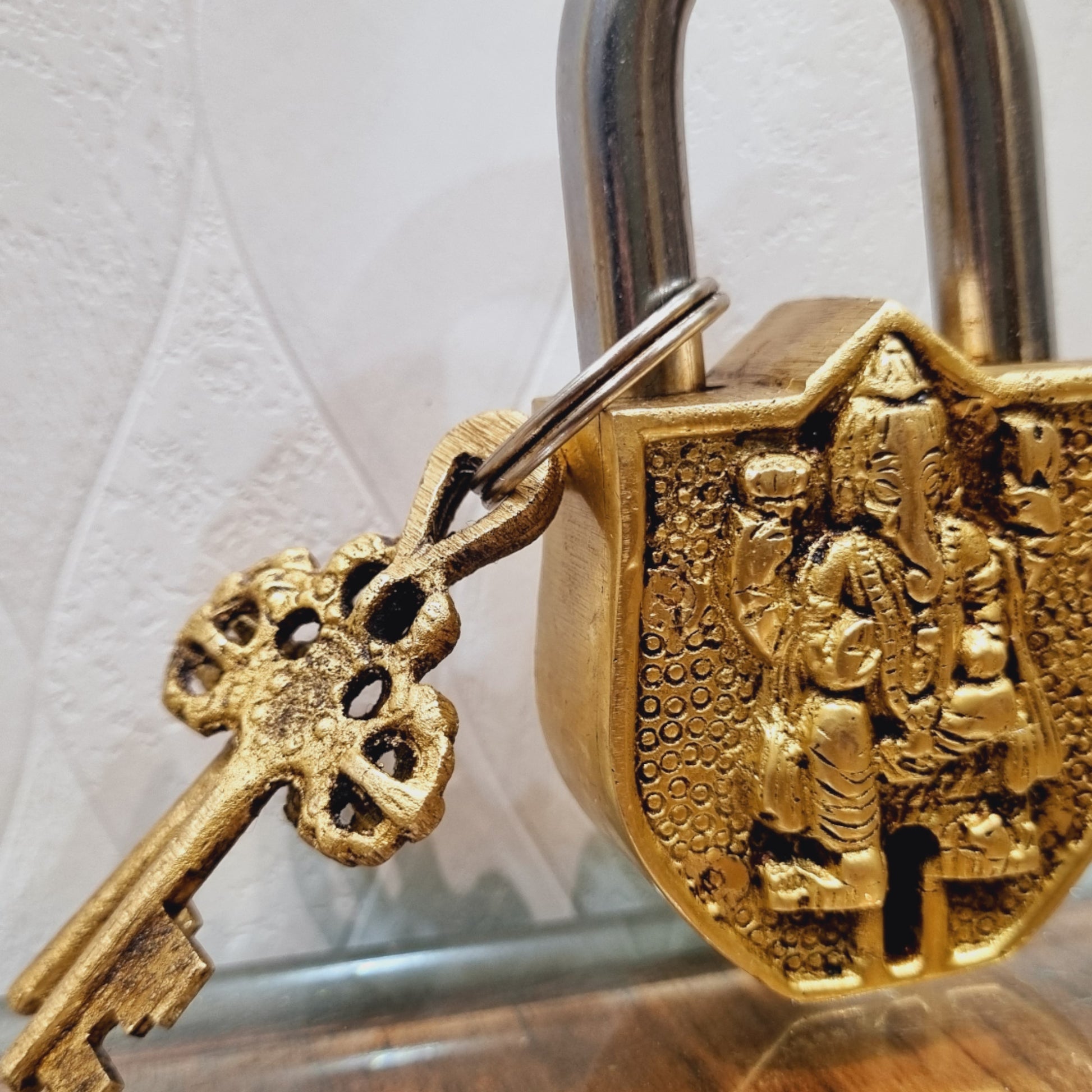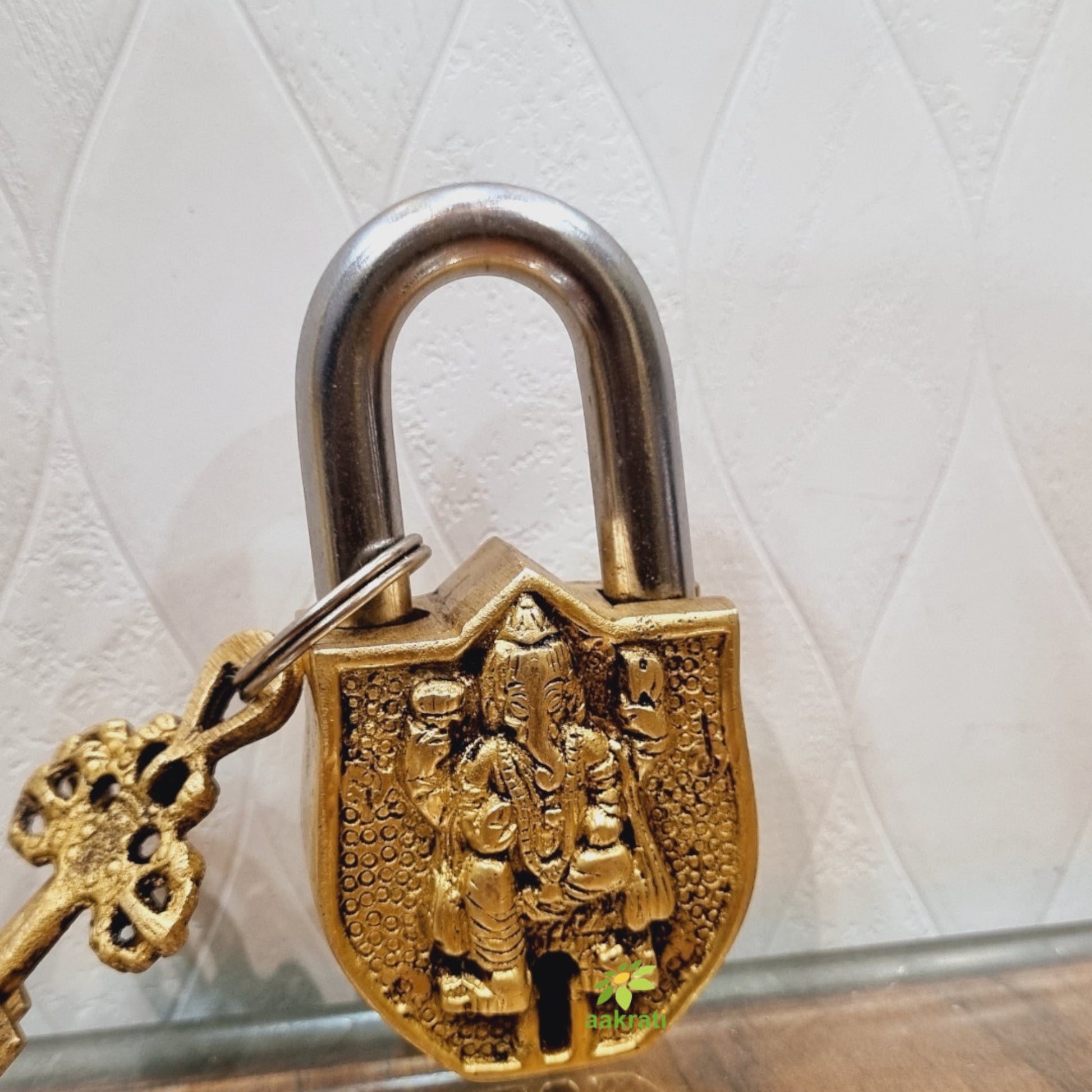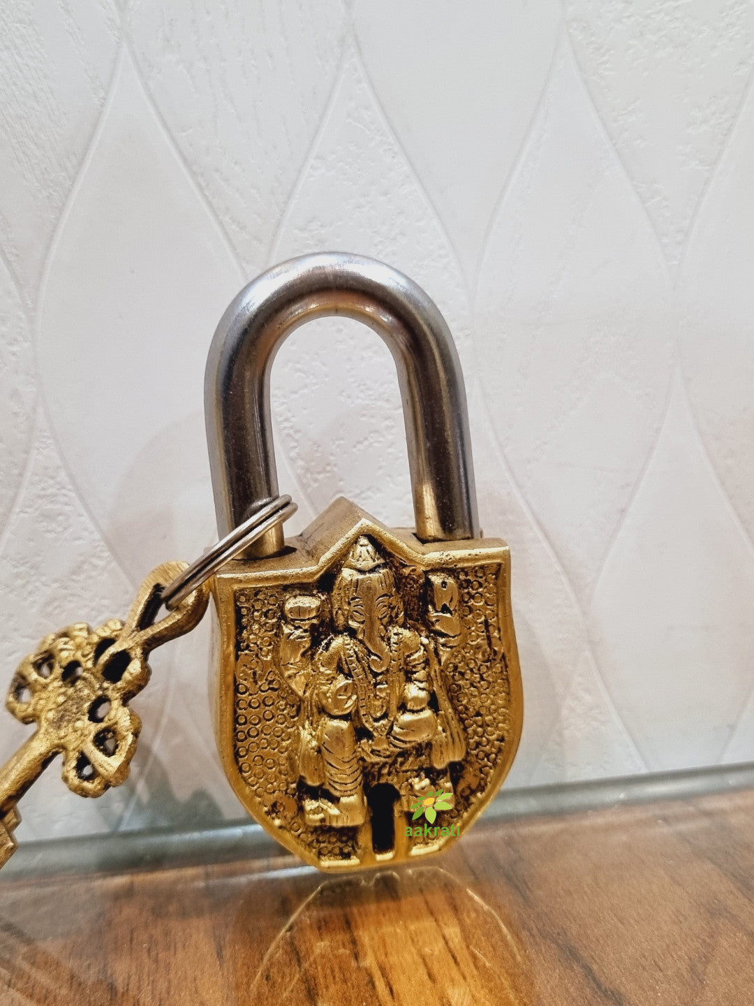 Brass Ganesha Engraved Padlock | Divine Protection for Your Home | Brass Padlock For Home Safety ( Yellow, 3.5 inch)