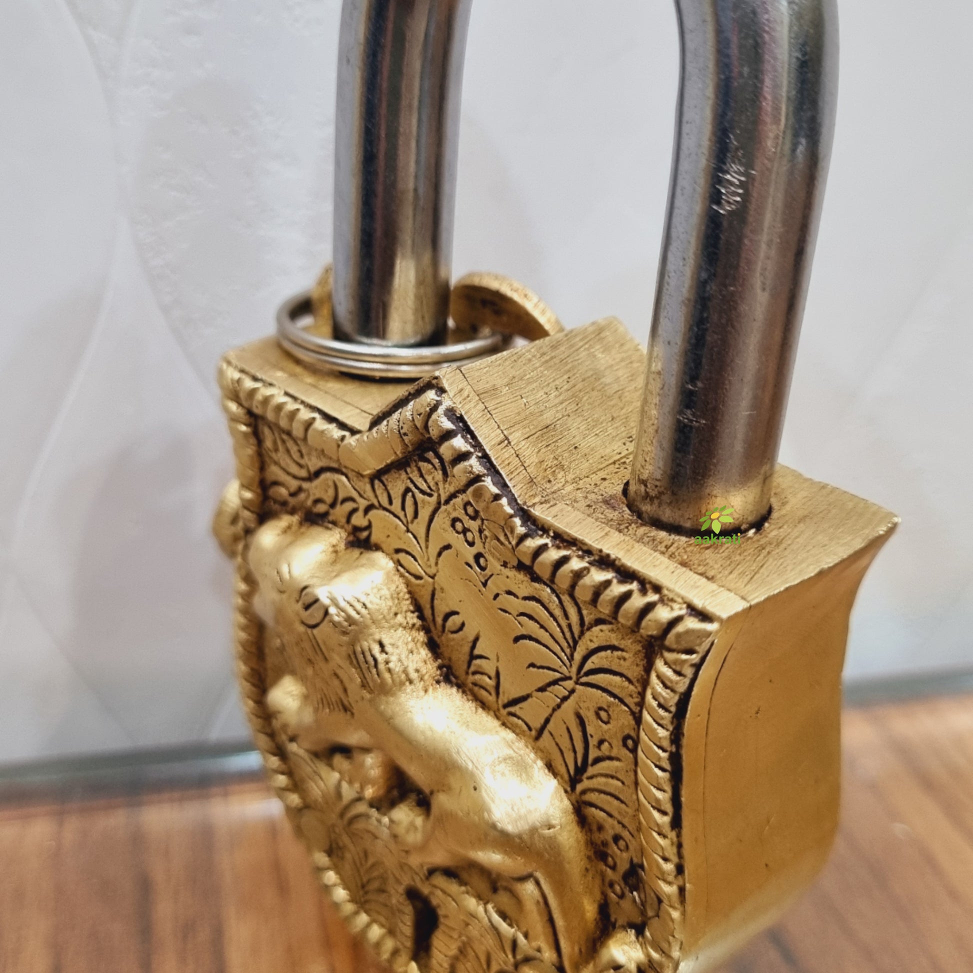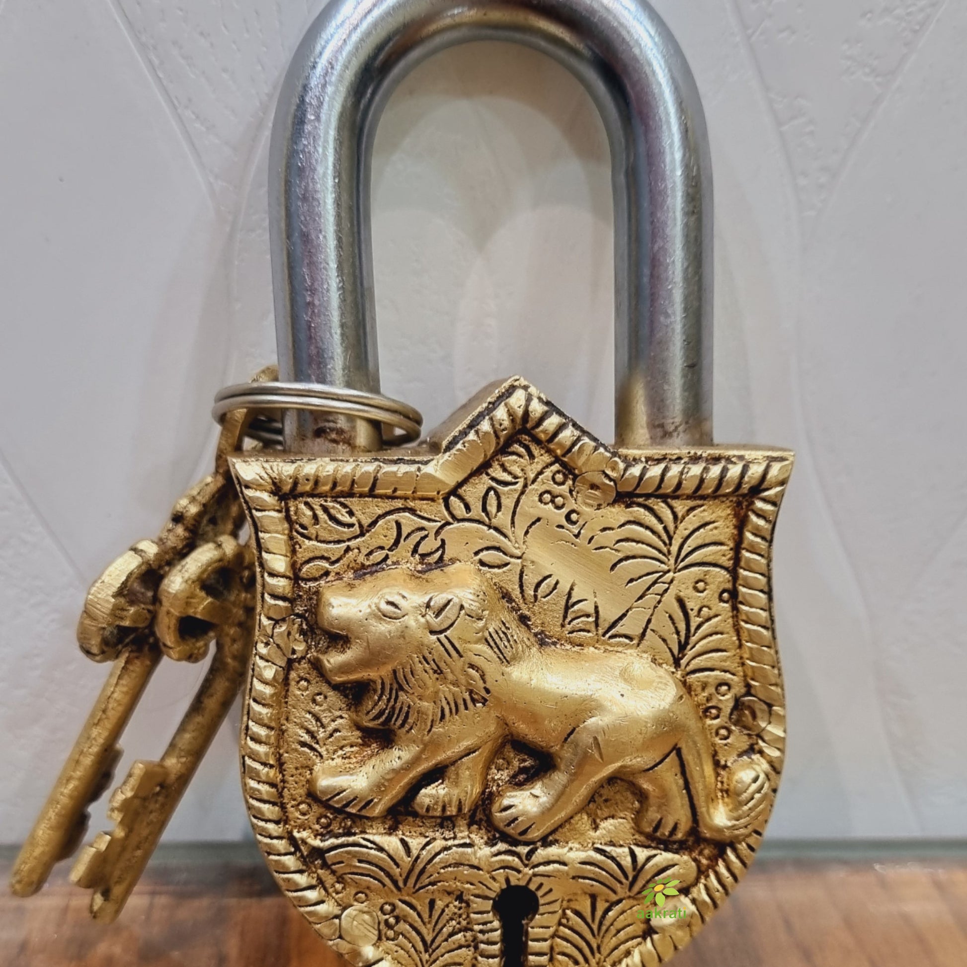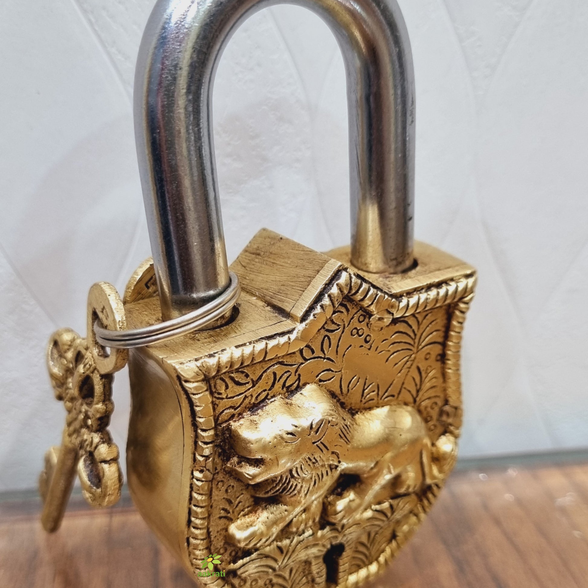 Brass Lion Engraved Padlock | Unique Lock for Your Home or Office | Exquisite Brass Traditional Padlock ( Yellow, 4.5 inch)